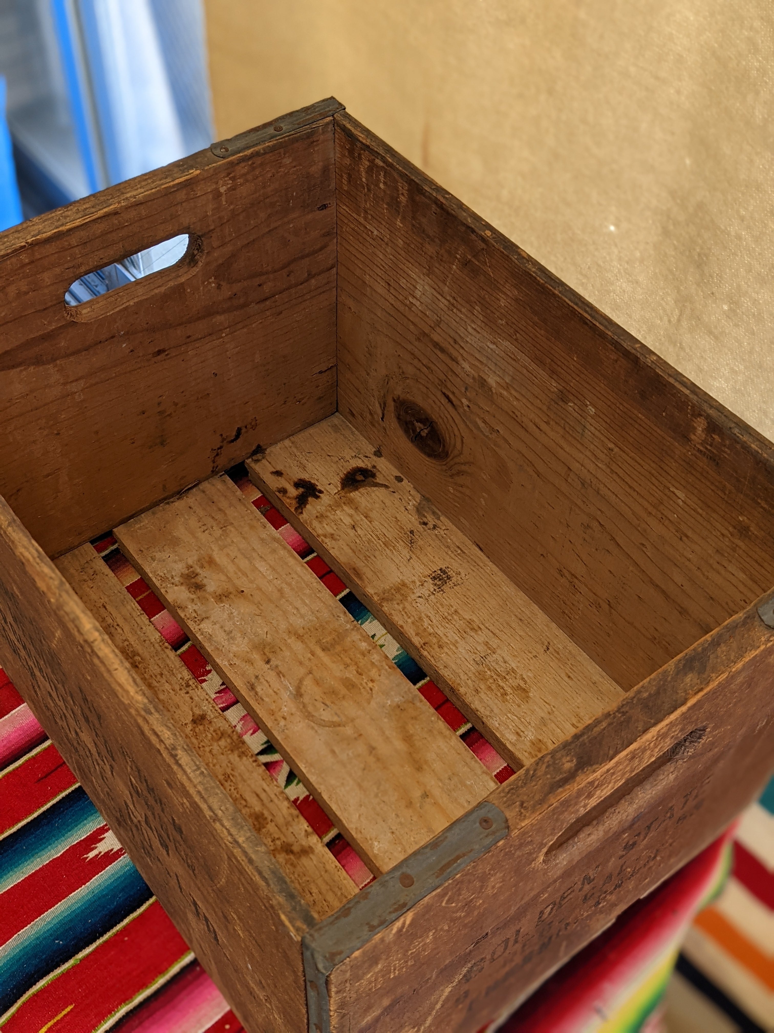 アメリカにて買い付けたビンテージGoldenState Coのウッドボックスです。