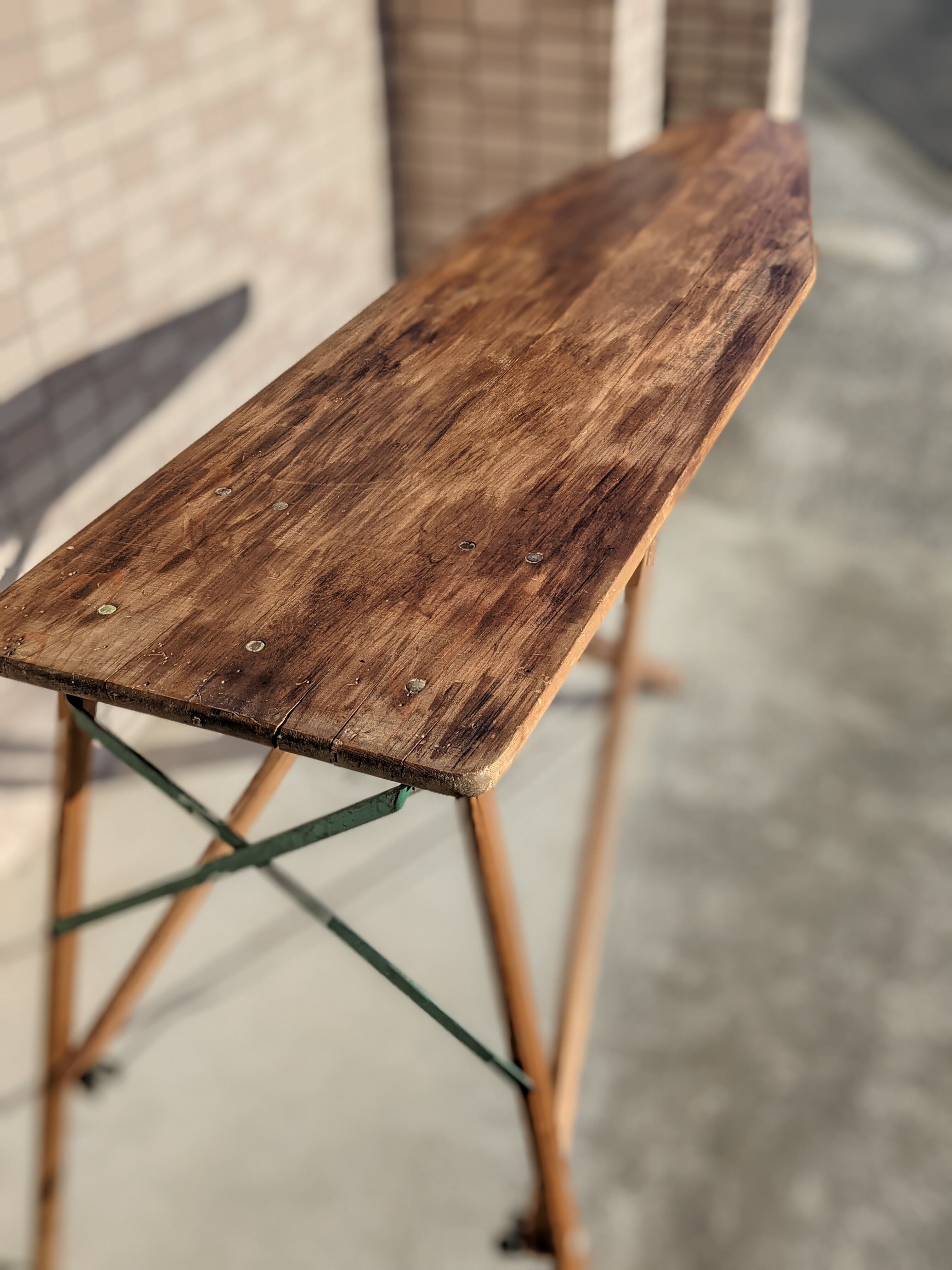 古い木製の折り畳みアイロン台で、見た目の雰囲気も抜群で、