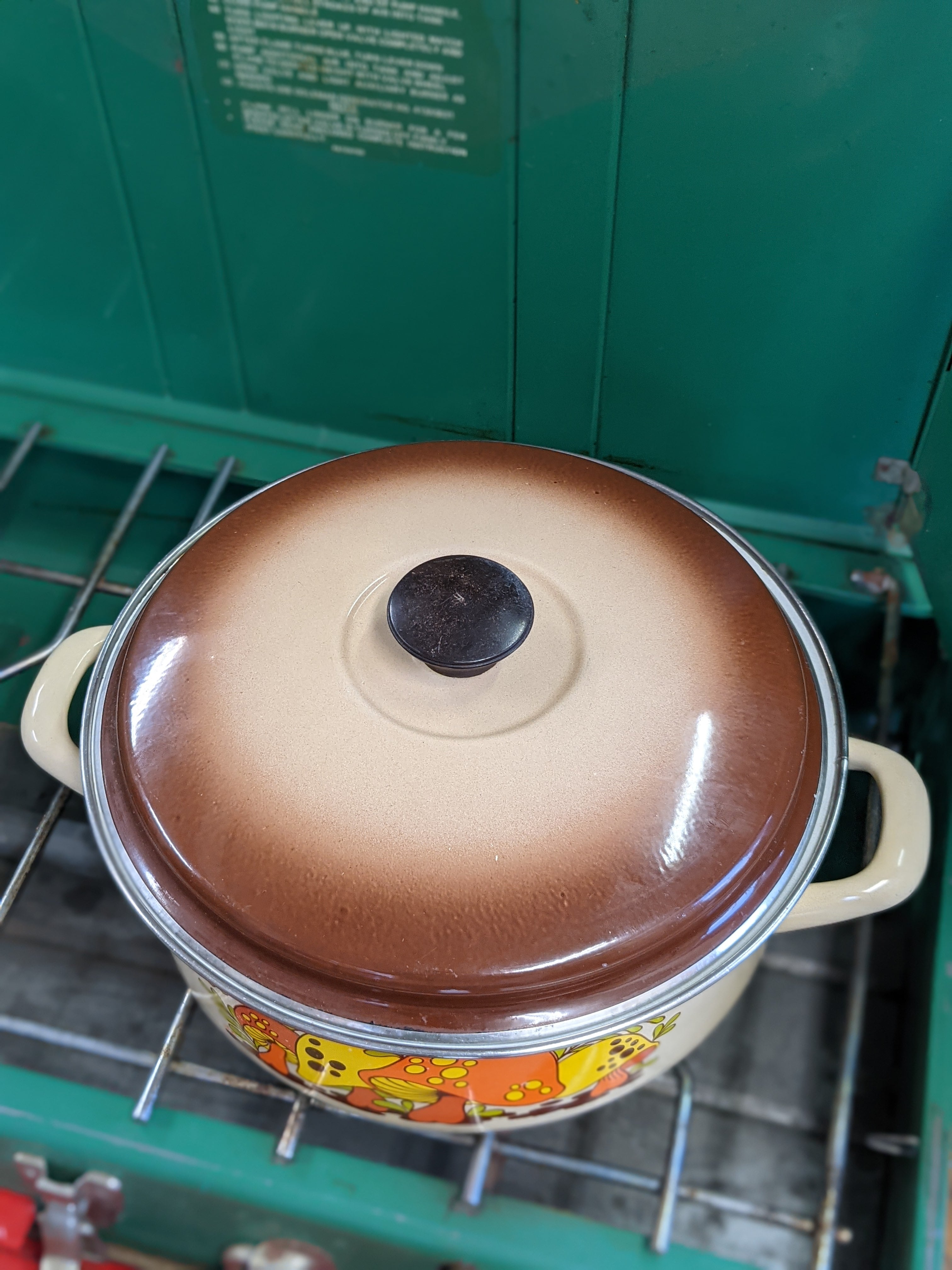 Vintage Enamel Pot Mushroom Pattern 70's ビンテージ ホーロー鍋 ポット 両手鍋 ホーロー キャンプ 調理器具 キノコプリント マッシュルーム柄