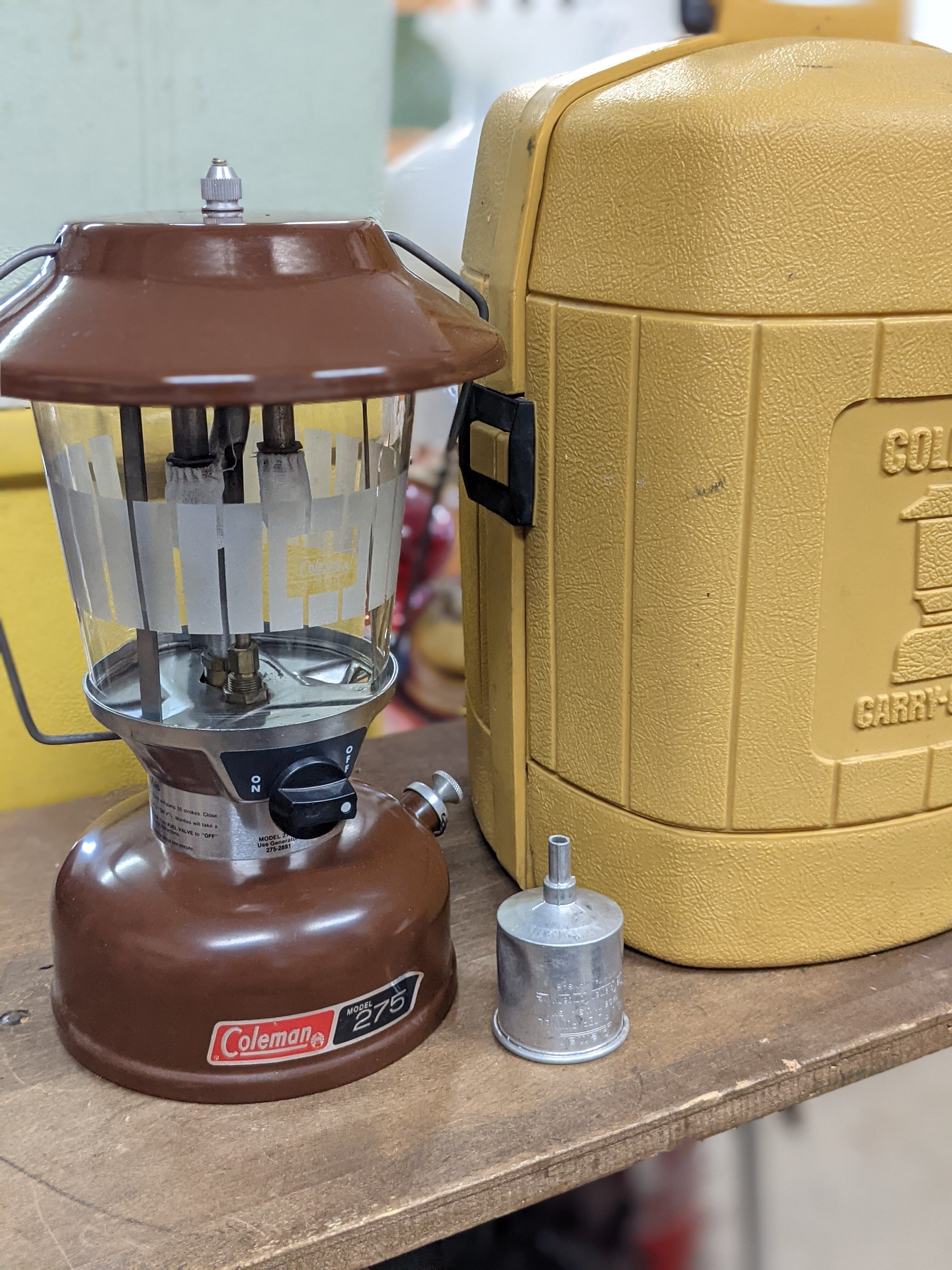 Vintage Coleman 275A ビンテージ コールマン 275A ランタン シェルケース&ファンネル付き 1981年10月製造 キャンプギア ツーマントル ブラウン クラムシェルケース