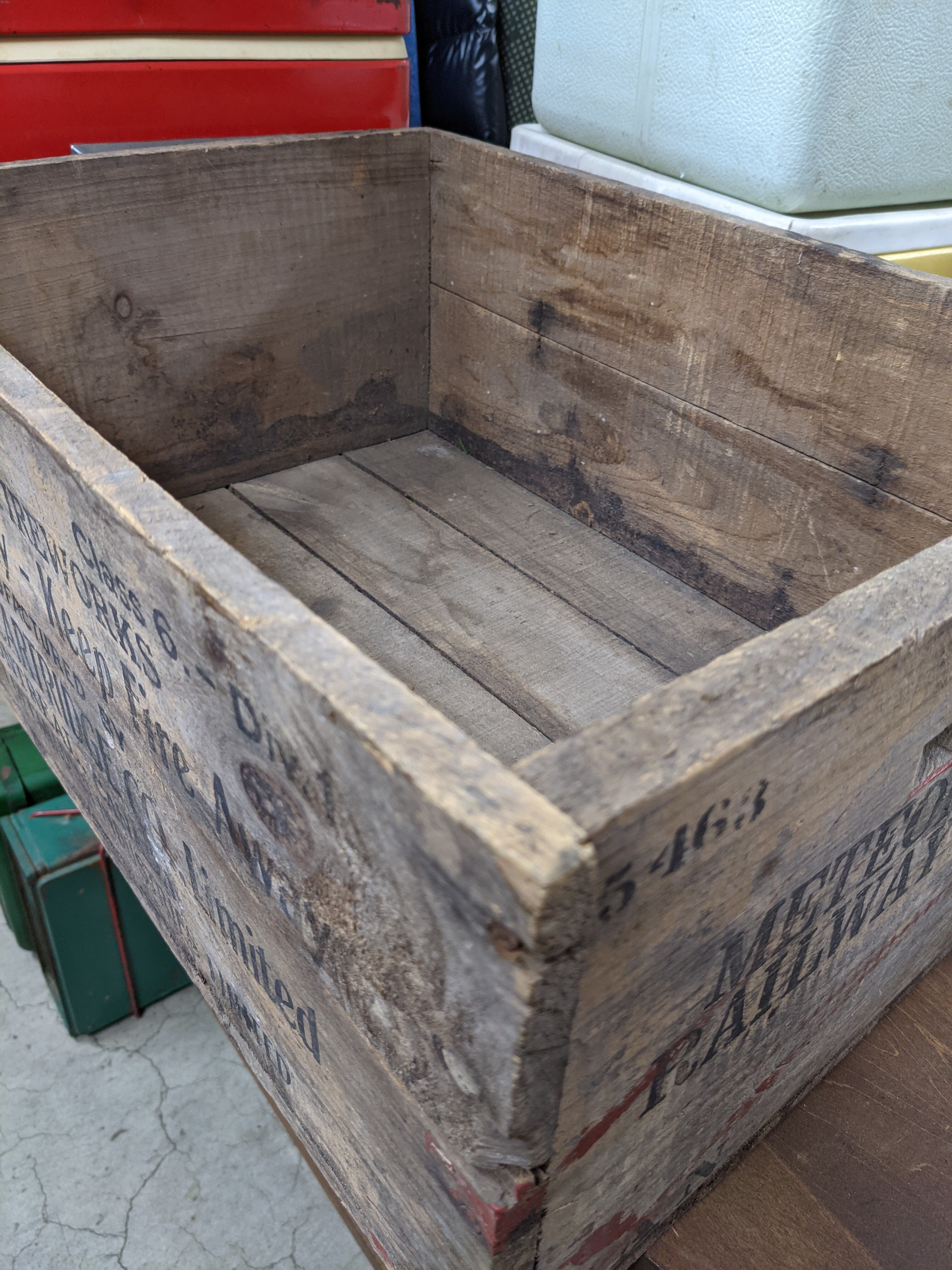 よくあるビンテージ木箱より、ややサイズ感に特徴のある変わり種です。