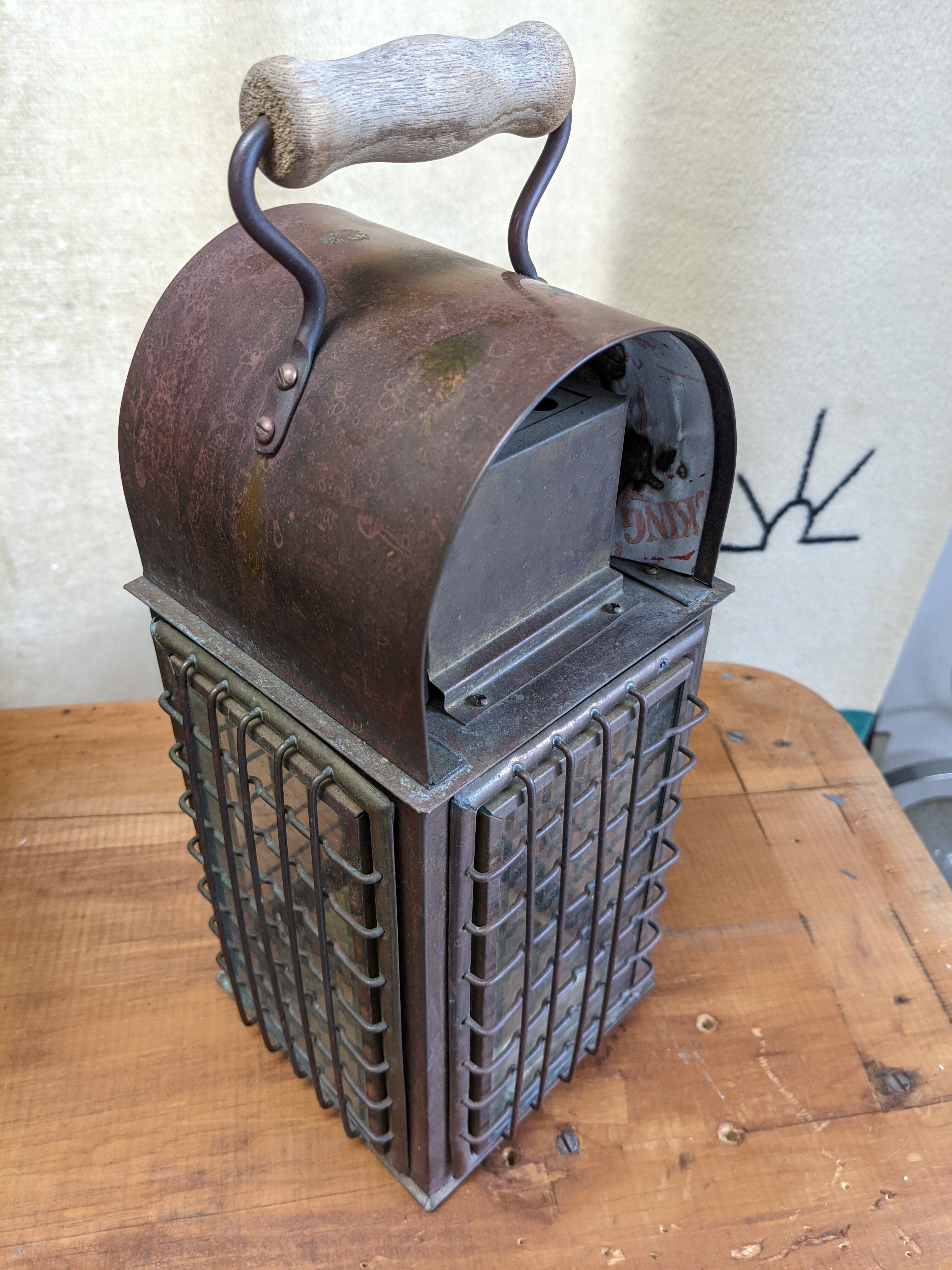Vintage Nautical Ship Brass WEDGE Oil Lantern Lamp ビンテージ ウエッジ 航海 箱型 オイルランタン オイルランプ キャンプギア