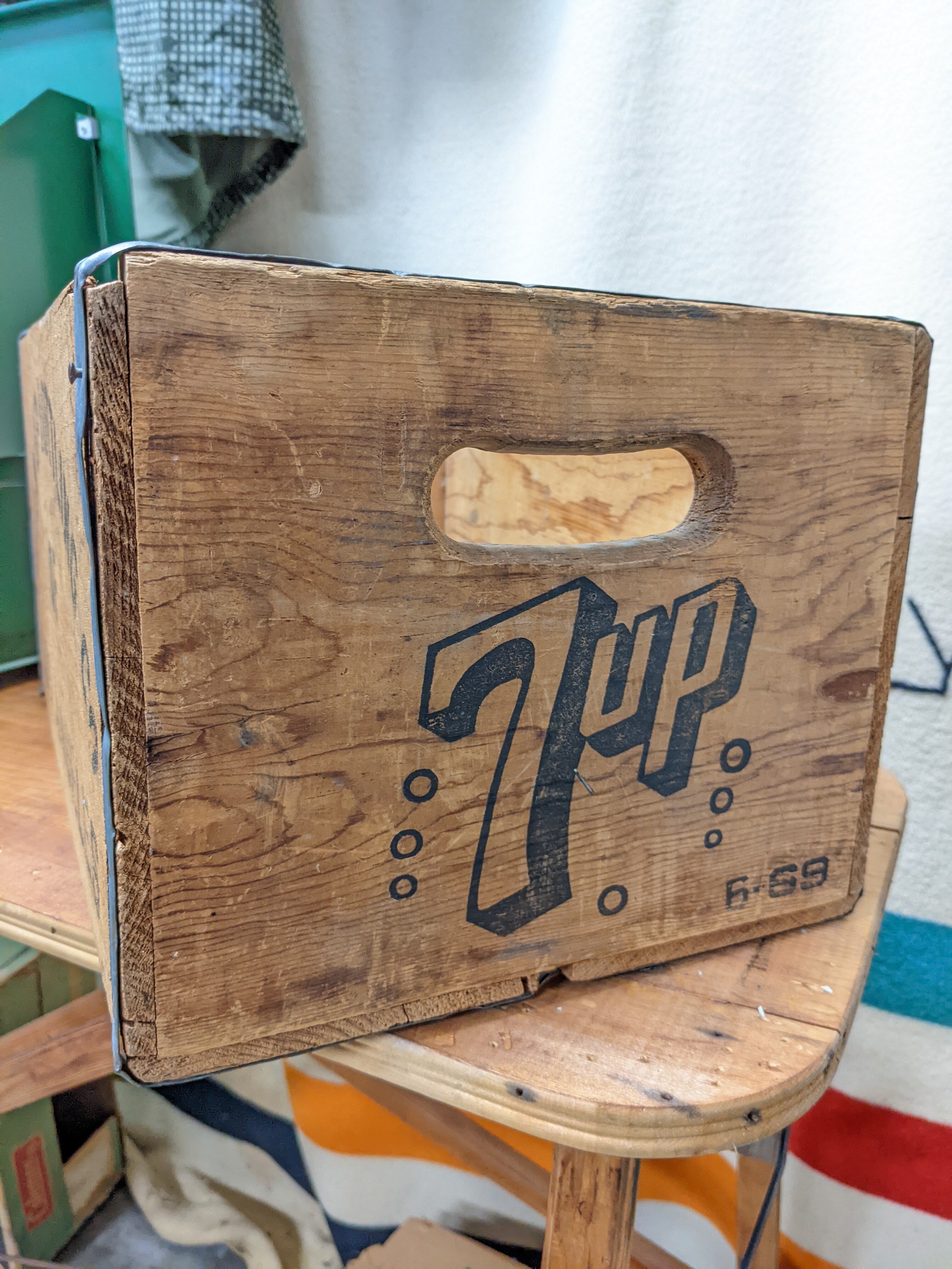 Vintage Seven Up 7up Crate Wood Box ビンテージ ウッドボックス 木製 木箱 収納ボックス ギアボックス キャンプギア クレート アンティーク ヴィンテージボックス
