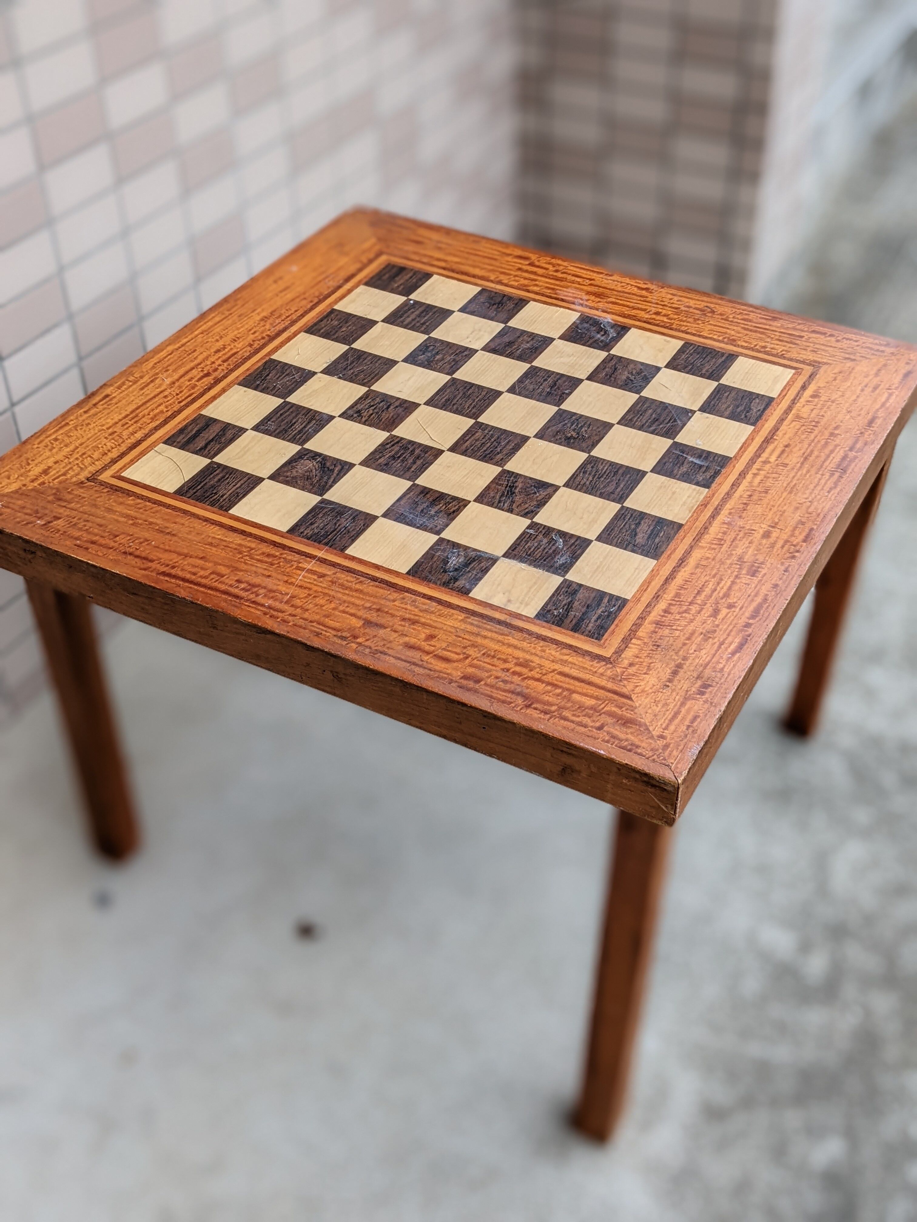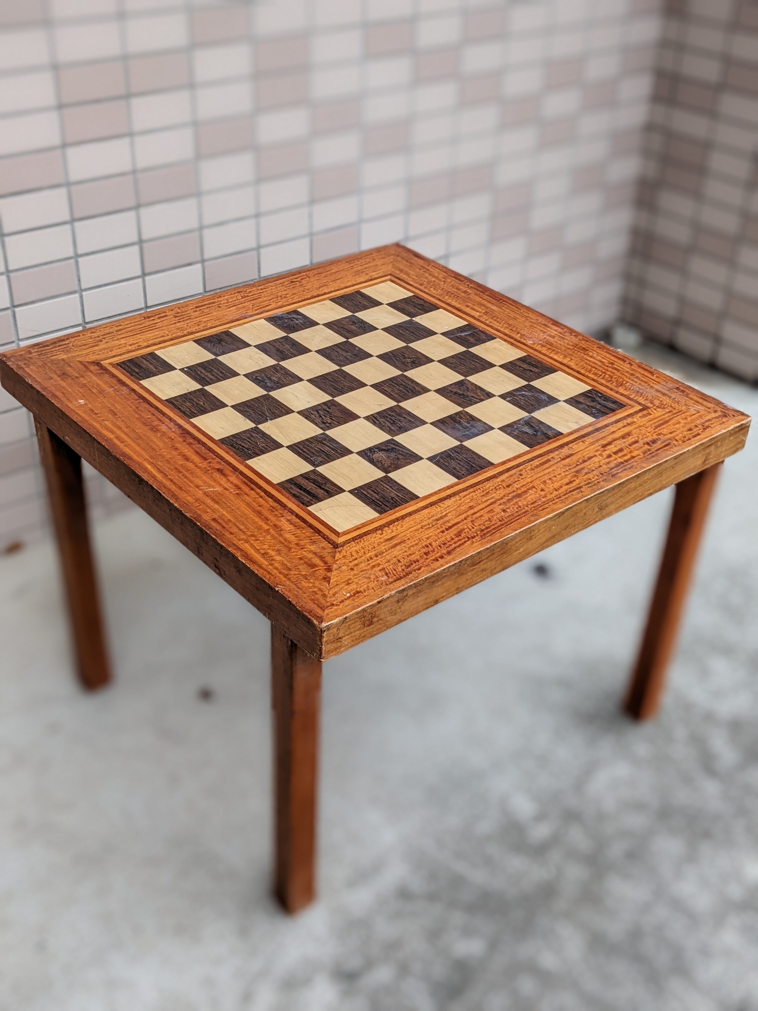 このタイプでは珍しいスクエアなミニウッドテーブルで、