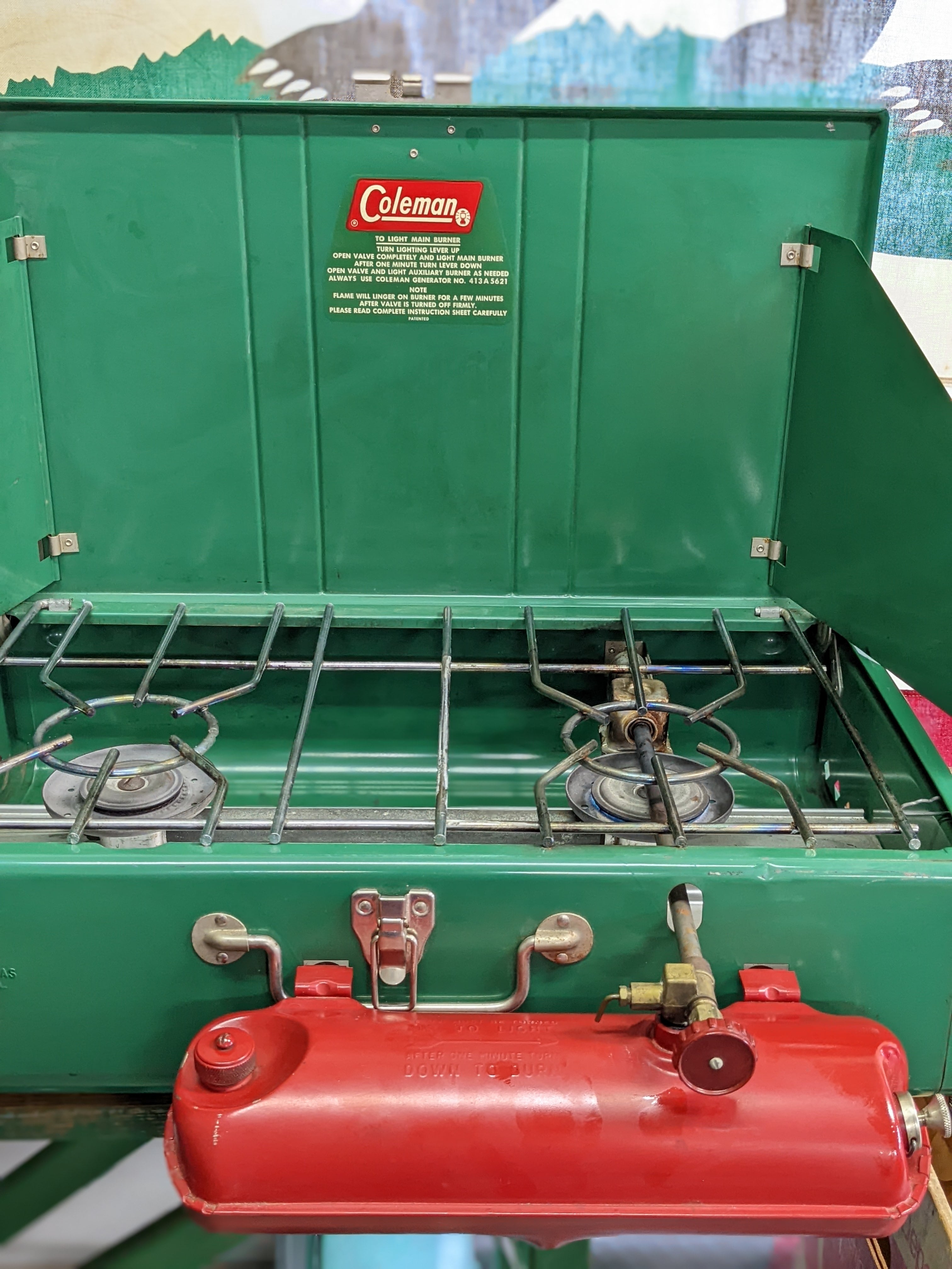 1968 Vintage Coleman 413G 2barner Stove ヴィンテージ コールマン 413G ツーバーナー ストーブ 丸ゴトク キャンプバーナー 調理 キッチン 美品