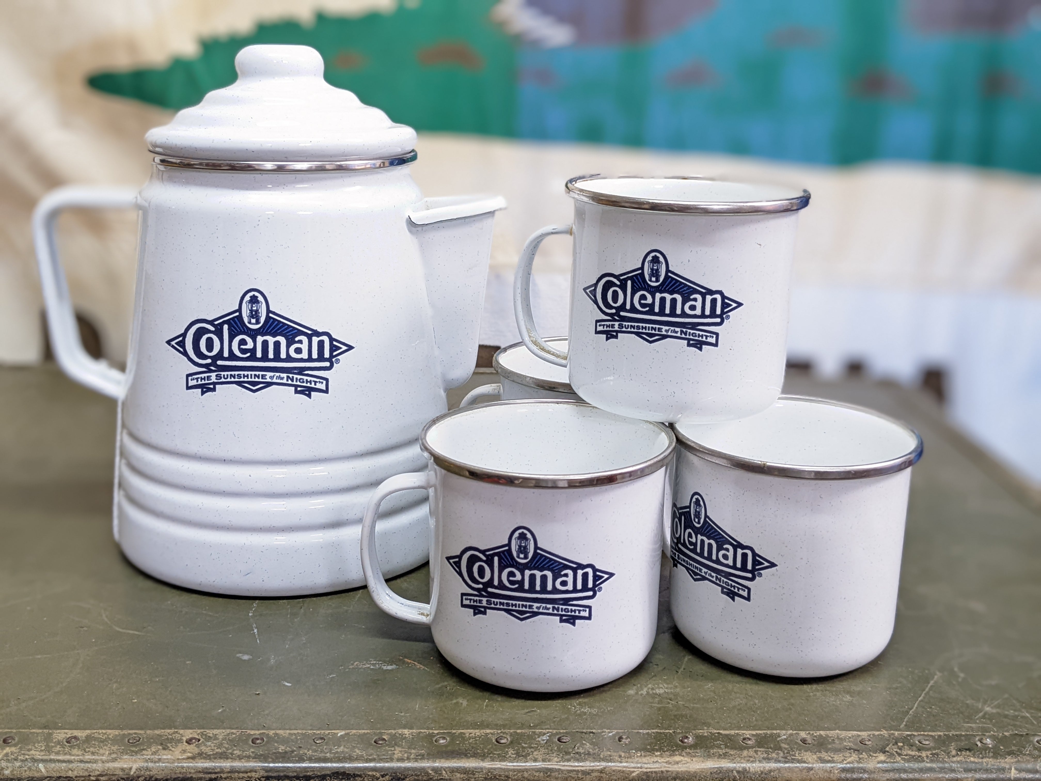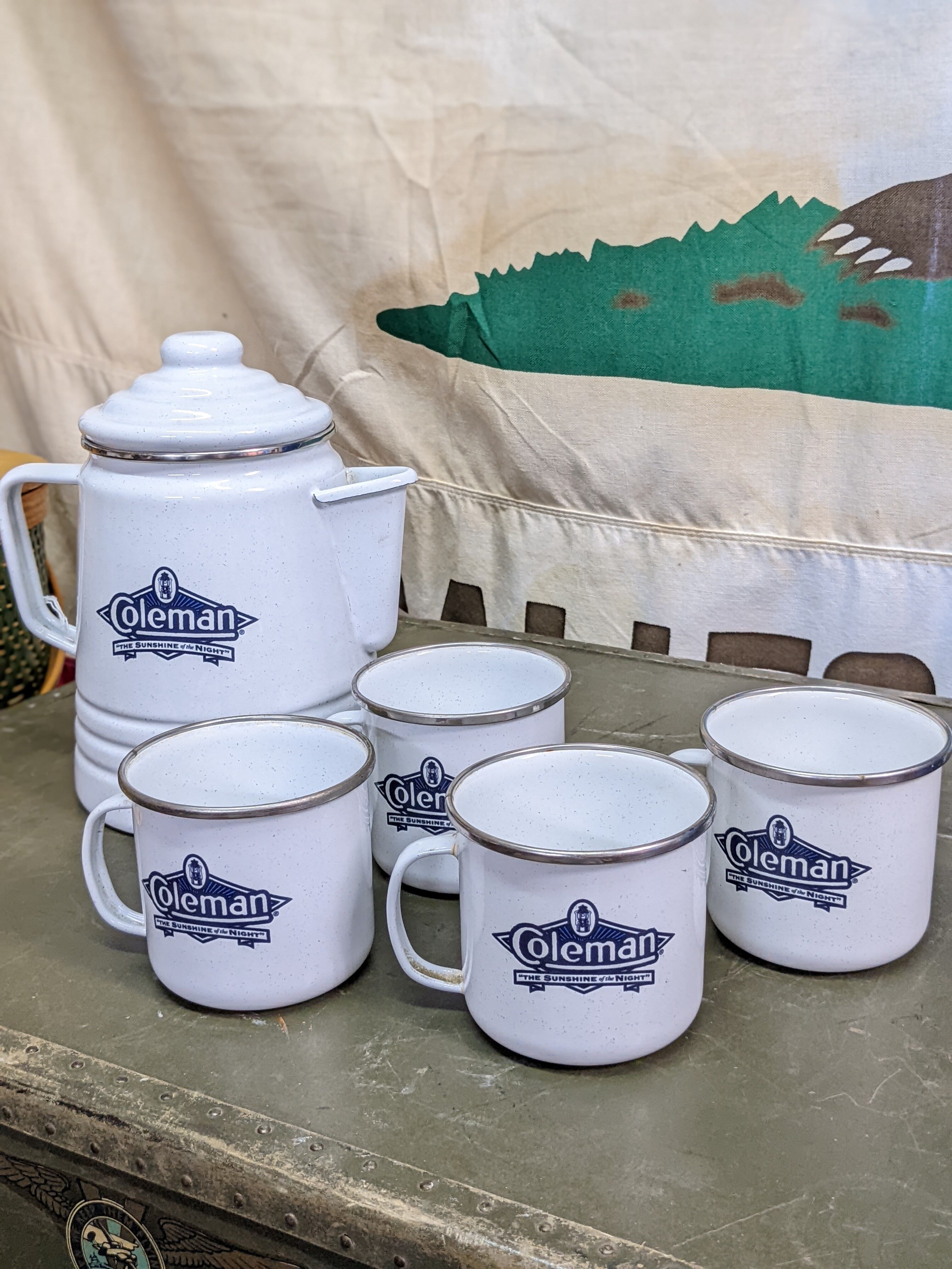 Vintage Coleman LemitedEdition Enamel Coffee Percolator&Mag ビンテージ コールマン リミテッドエディション パーコレーター 4マグカップ 琺瑯 ケトル サンシャインロゴ