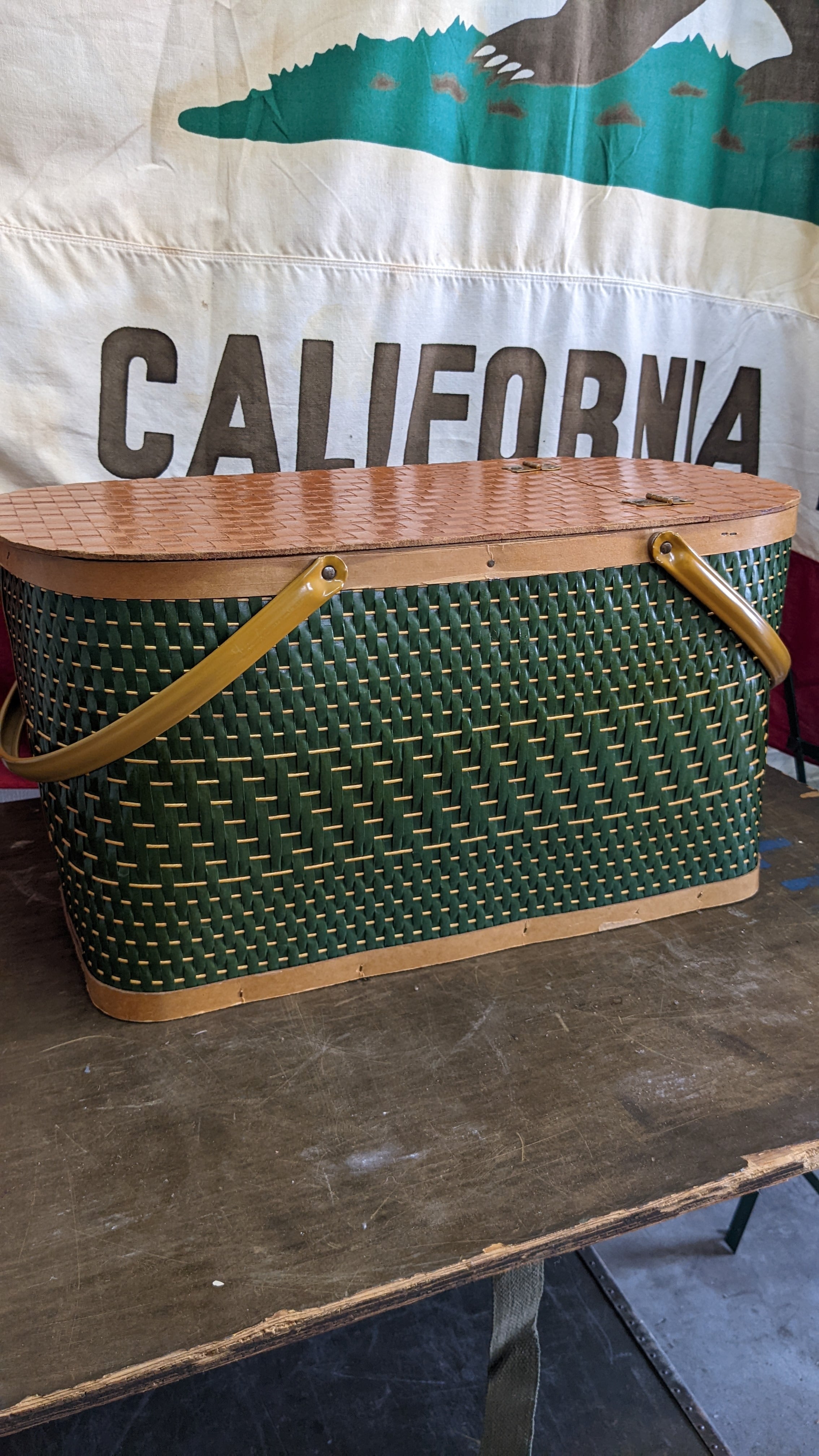 Vintage Hawkeye Picnic Basket GreenPatern OldCampingStyle ビンテージ ホークアイ ピクニックバスケット 緑 キャンプギア バスケット USA グリーン おまけつき!