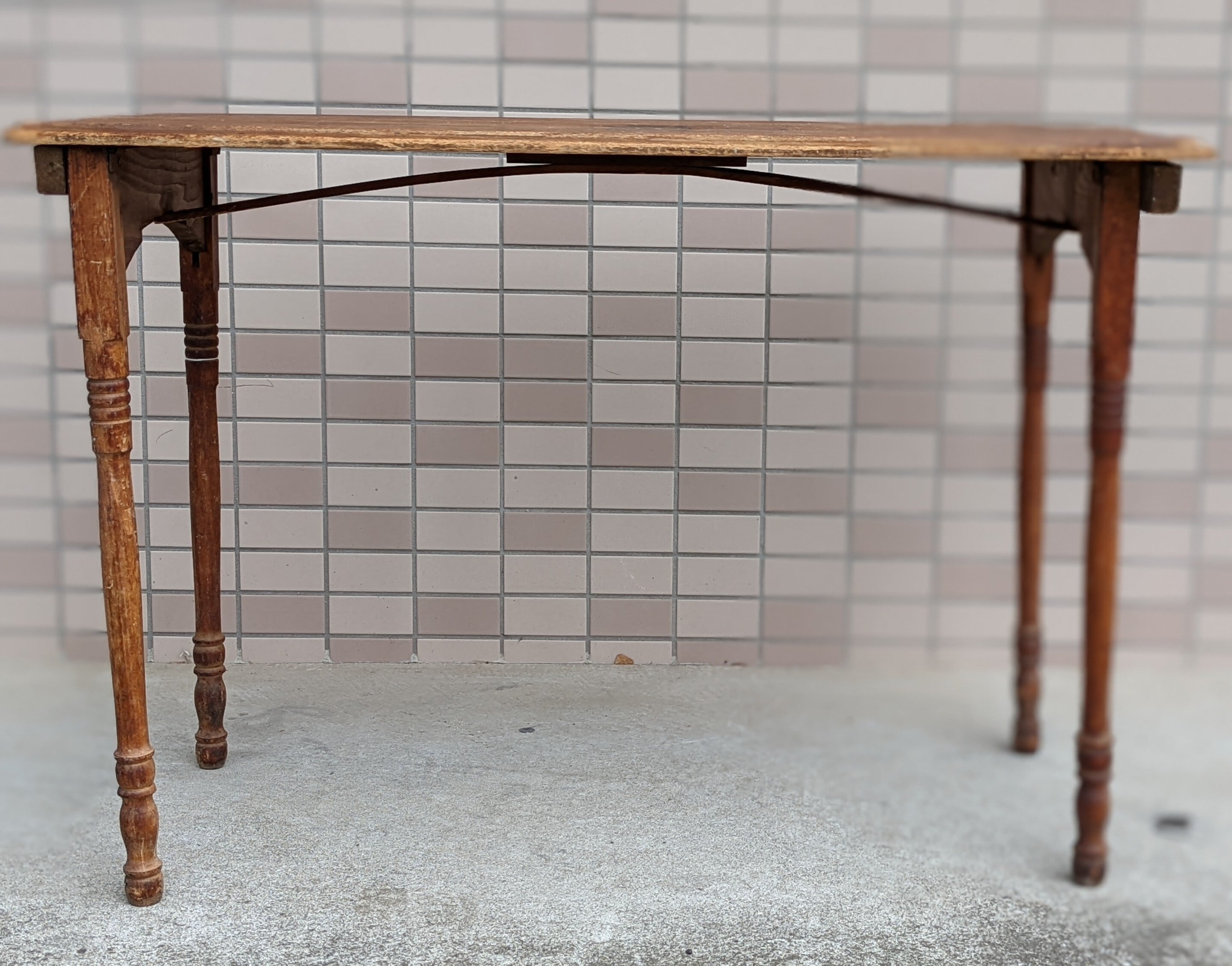 古い木製の折り畳みテーブルで、見た目の雰囲気も抜群で、