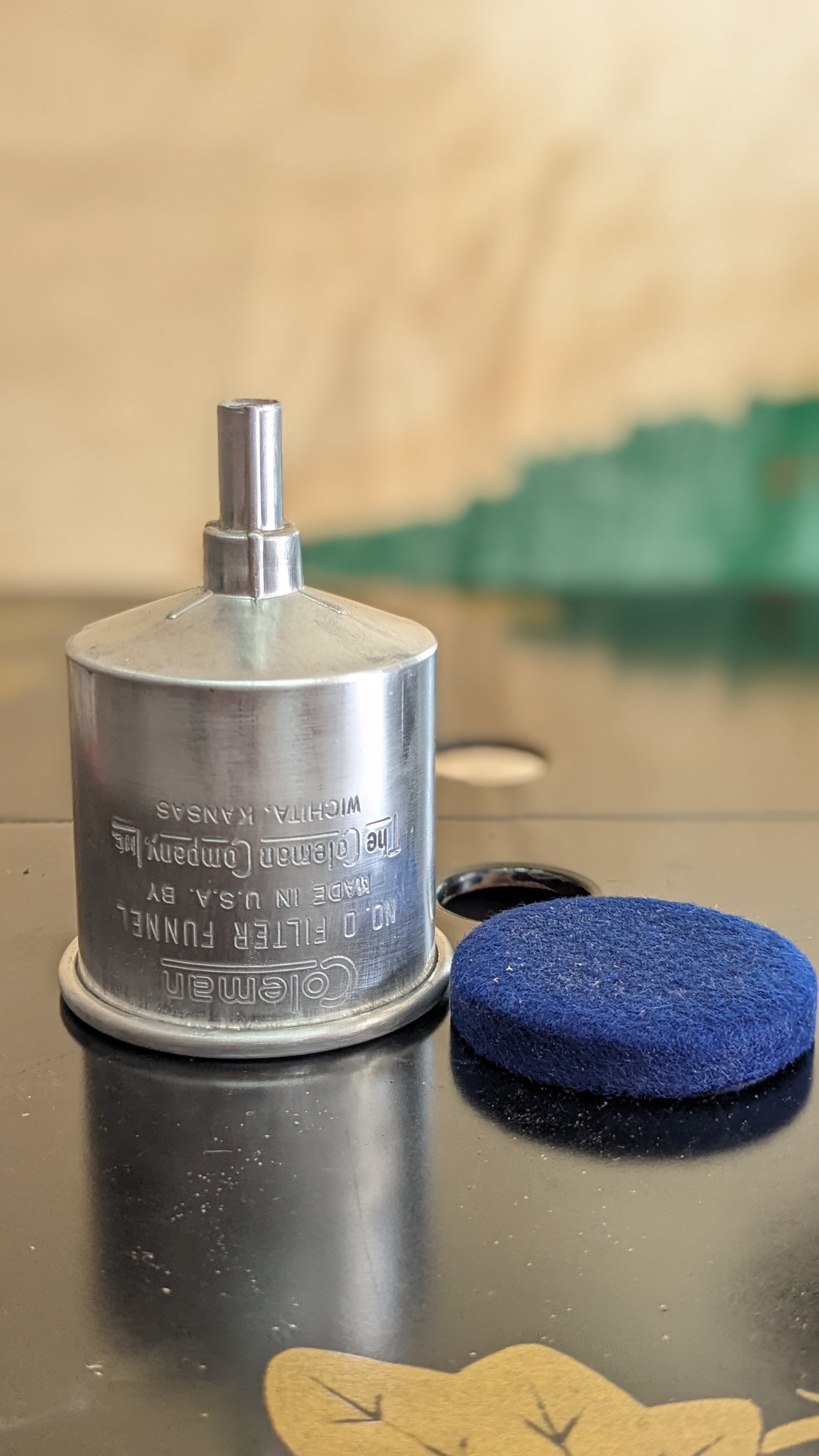 アメリカにて買い付けたビンテージコールマンのアルミ製ファンネルです。