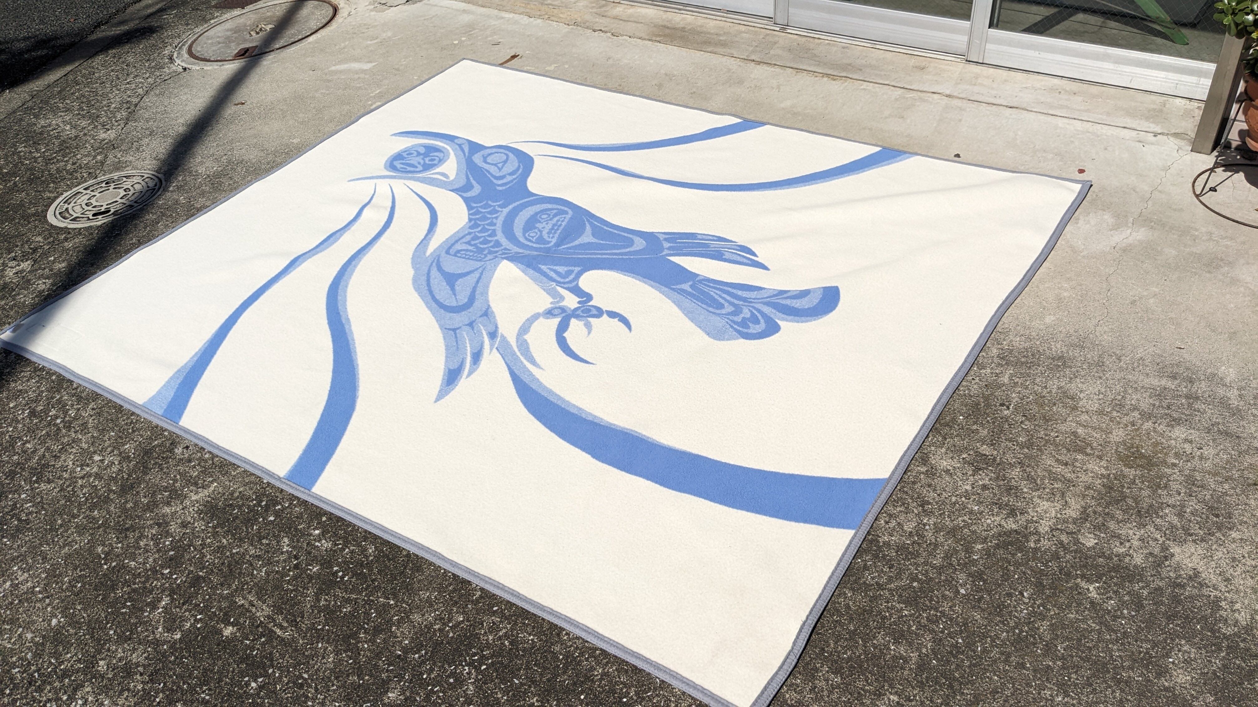 月を咥えた白いワタリガラスの飛行が大きく表記された、ペンドルトンらしい一枚。