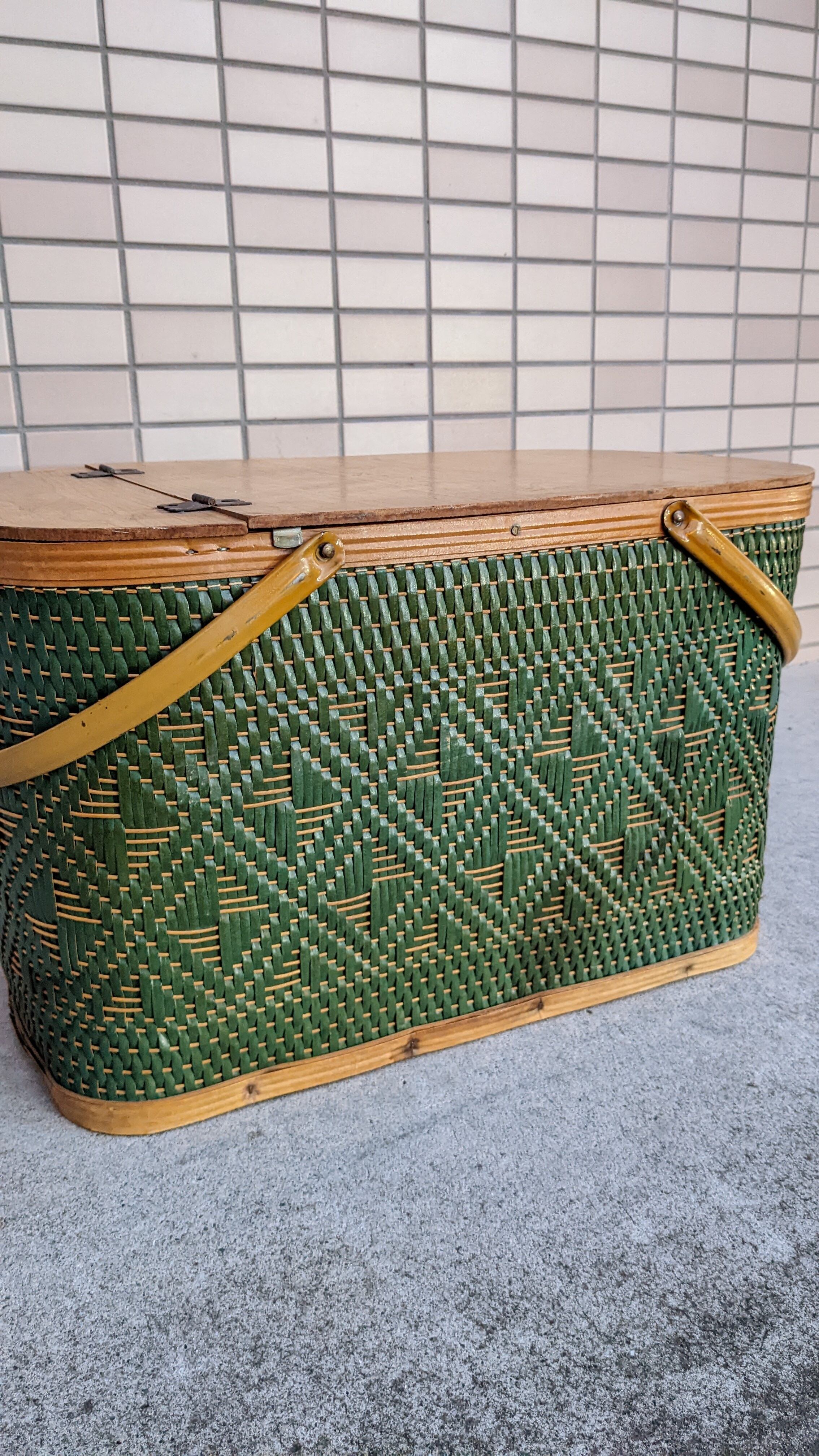 AS-IS Vintage Hawkeye Picnic Basket GreenDiamond OldCampingStyle ビンテージ ホークアイ ピクニックバスケット 緑 キャンプギア バスケット USA グリーンダイヤ