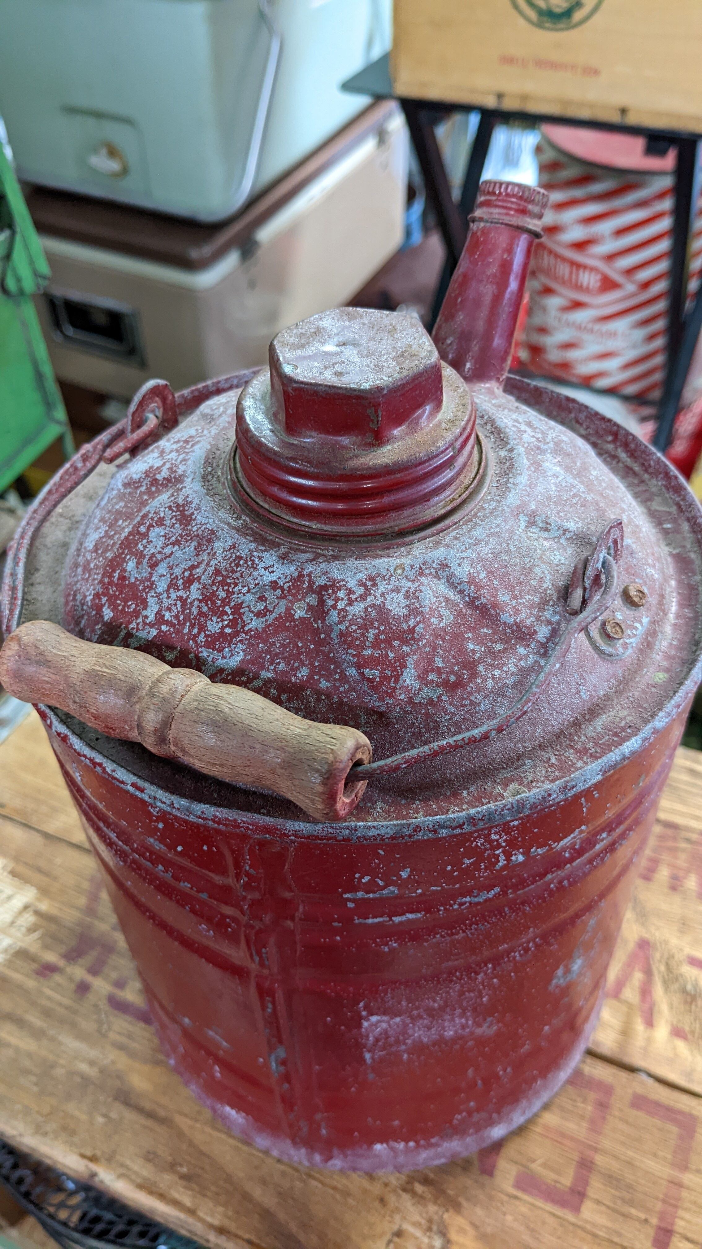 Vintage Gasolin Can Tank Red 1gallon Oil Can ヴィンテージ ガソリン缶 オイル缶 携行缶 1ガロン 細口 アンティーク キャンプギア ホワイトガソリン入れ 灯油缶
