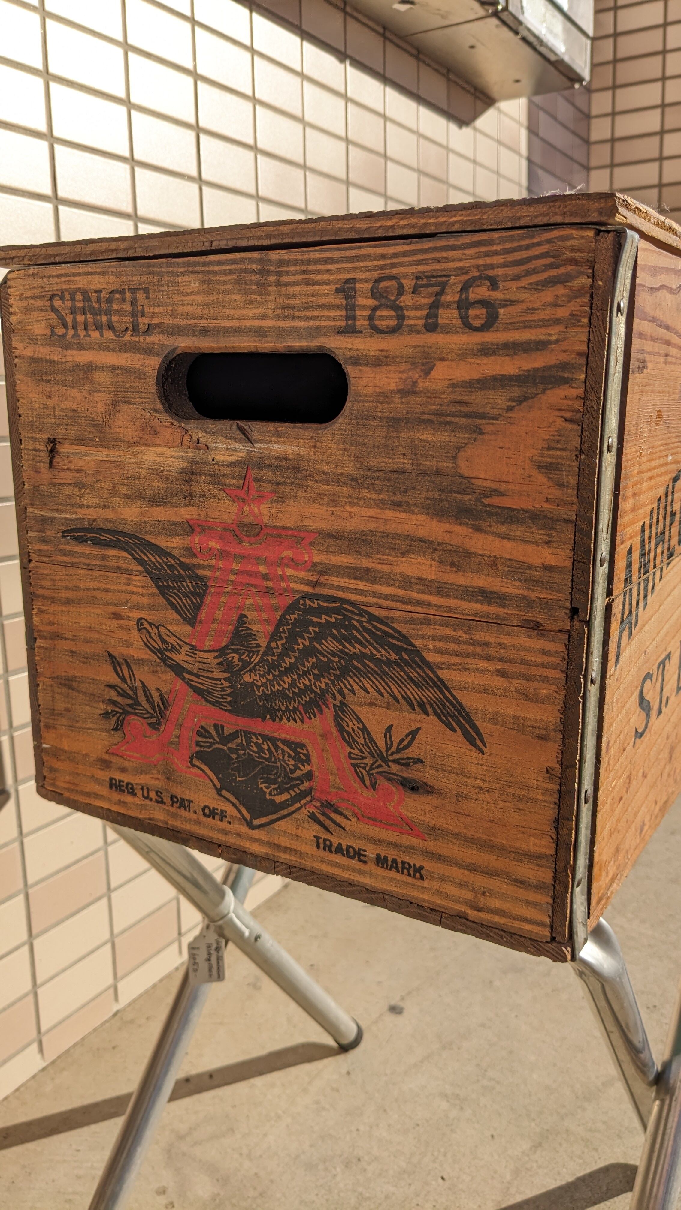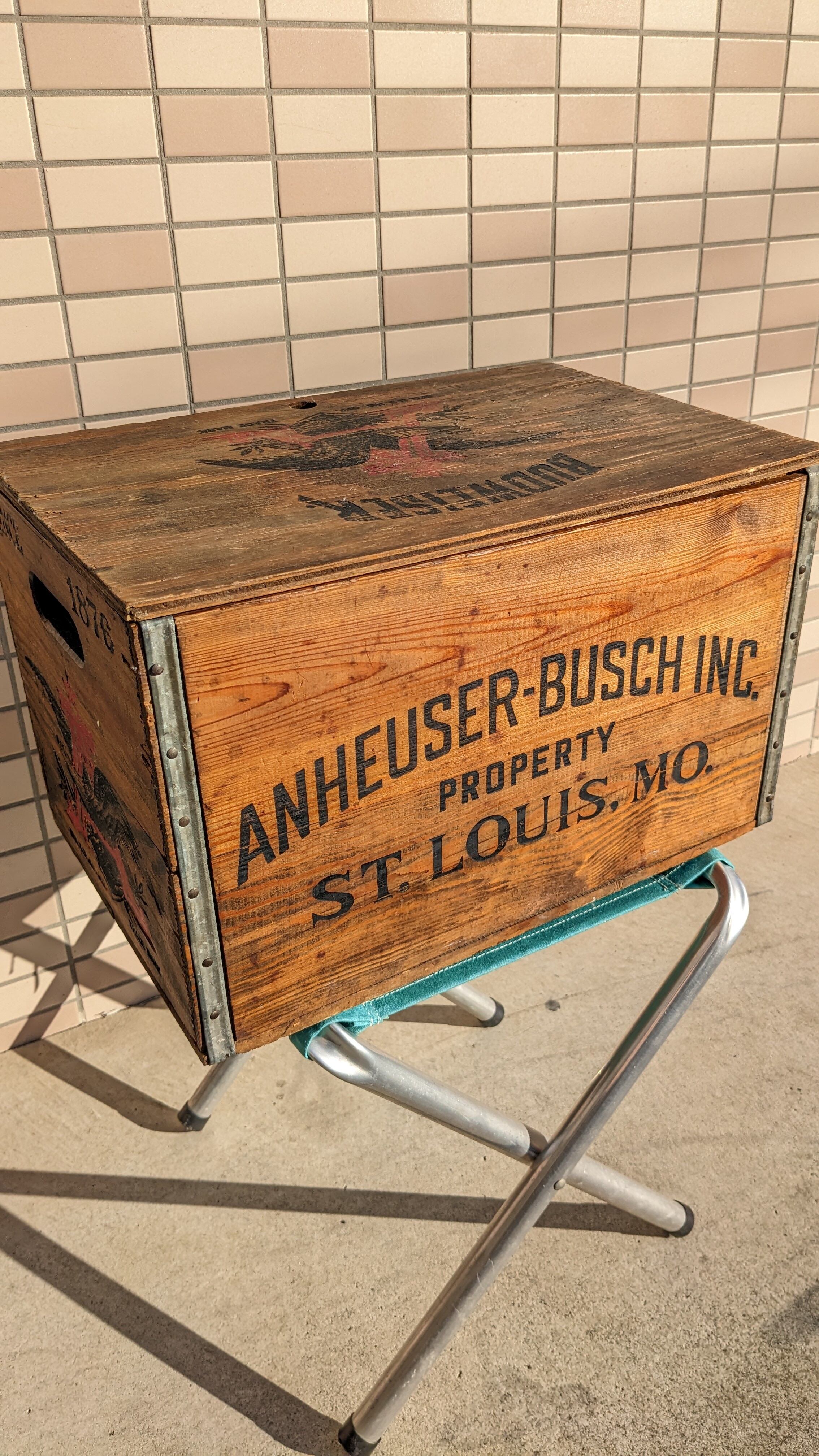 Vintage Budwiser Crate Wood Box ビンテージ バドワイザー ウッドボックス 木製 木箱 収納ボックス ギアボックス キャンプギア クレート アンティーク ヴィンテージボックス 天板付き
