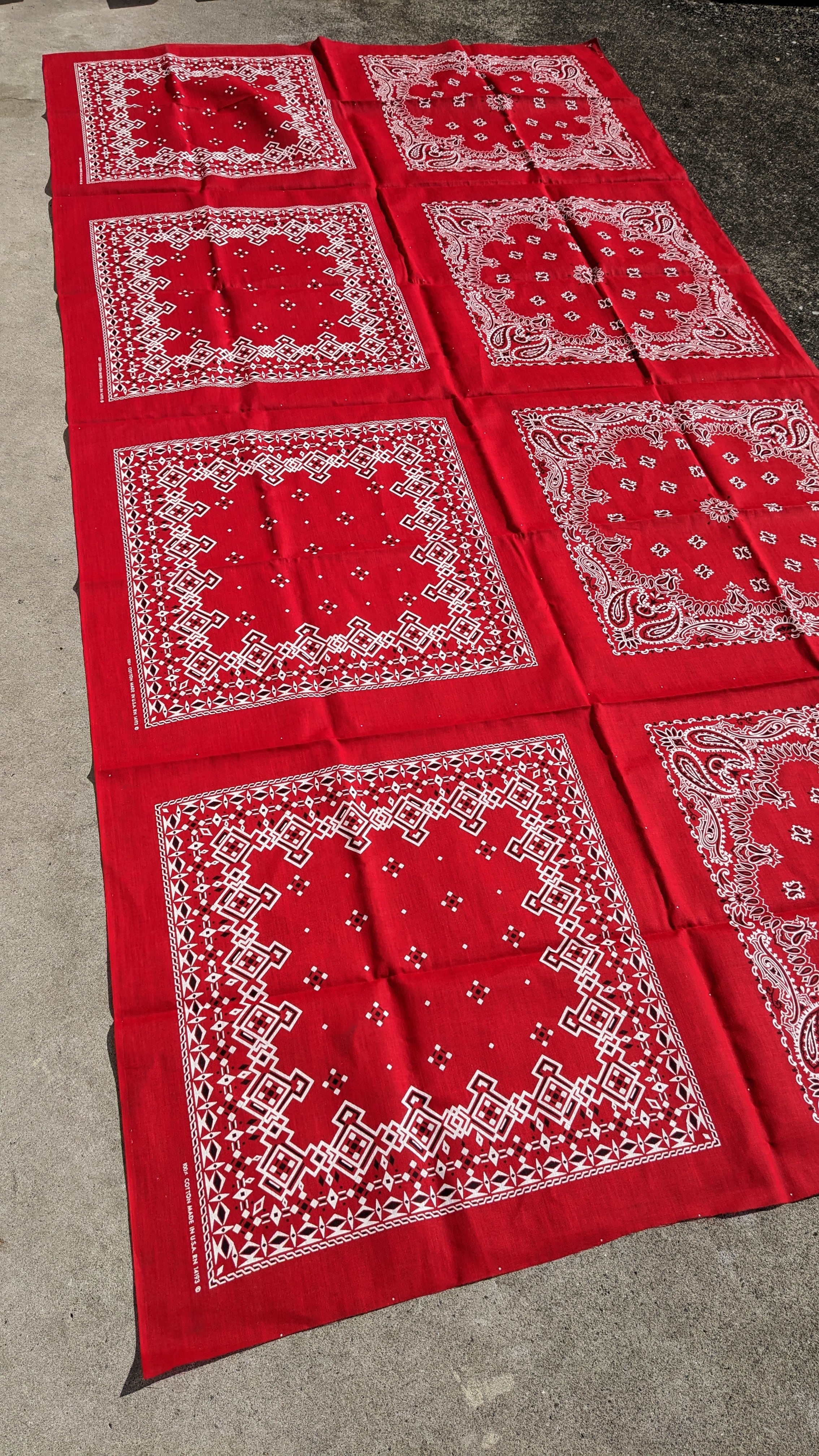 Vintage Deadstock Bandana Large Format Red ビンテージ 未裁断 バンダナ 8枚 大判 テーブルクロス キャンプギア ストール ヴィンテージバンダナ USA製