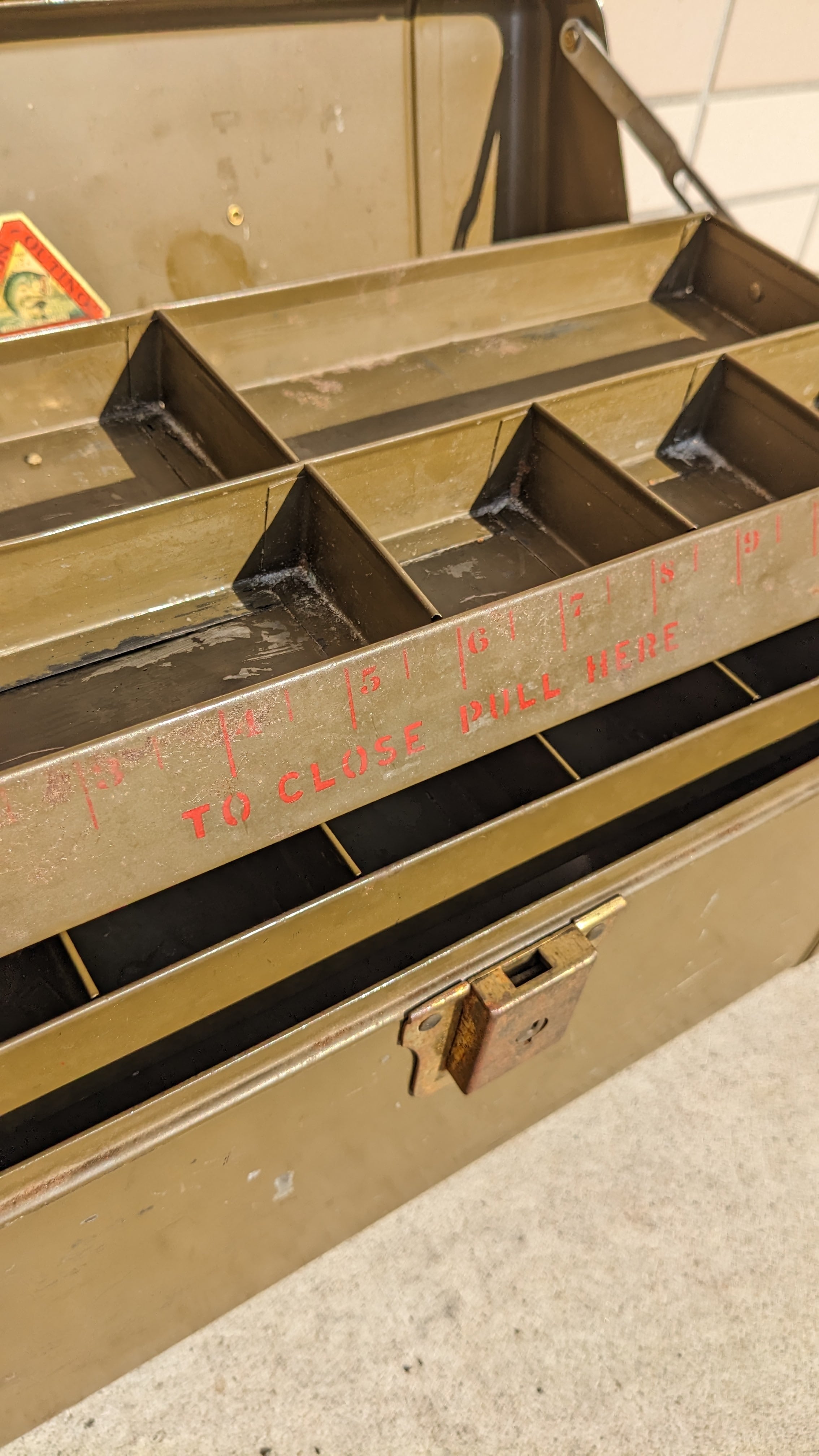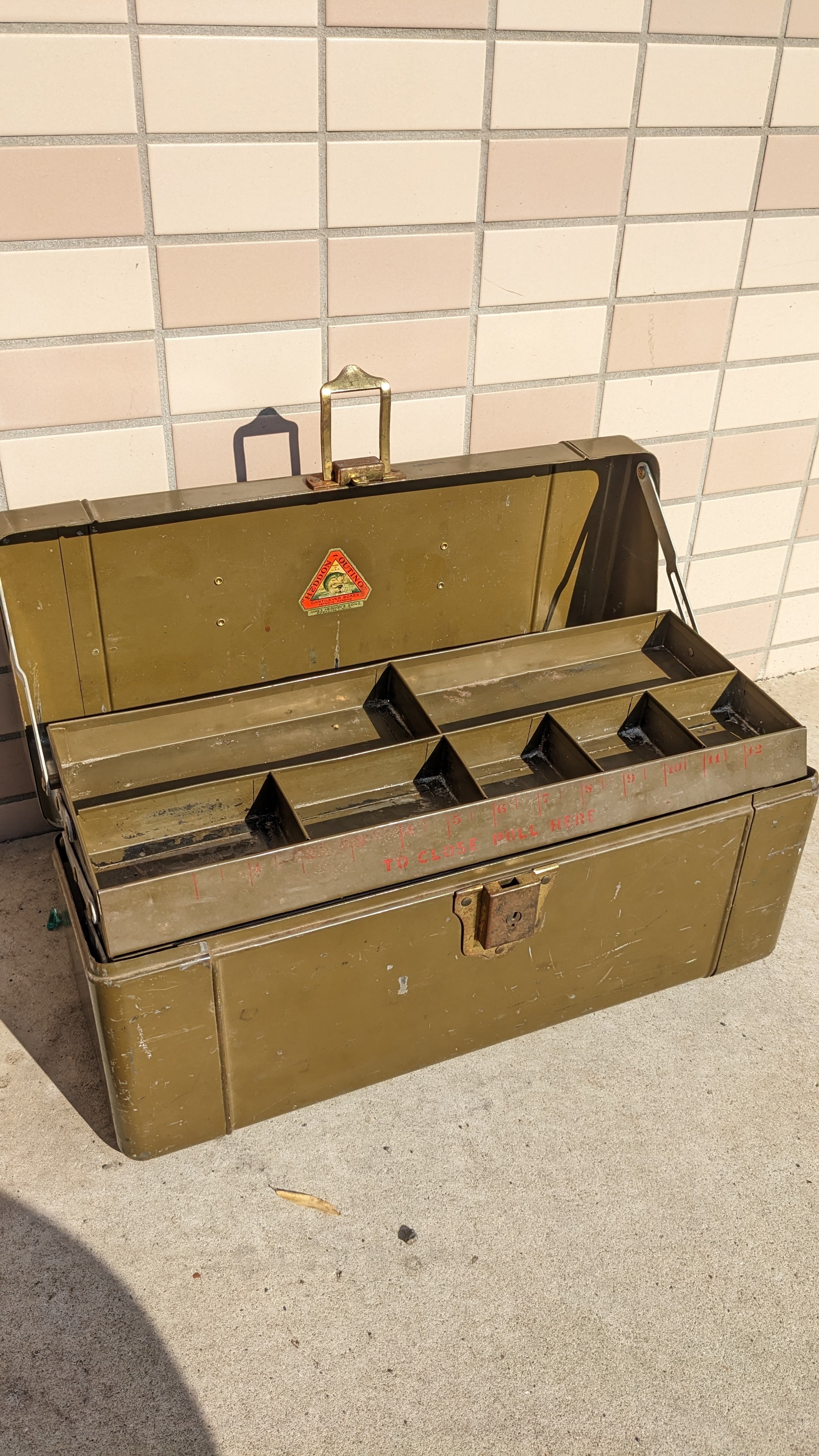 RARE!! Vintage HEDDON OUTING CANTILEVER BOXES MetalCase ビンテージ へドン タックルボックス ツールボックス 道具入れ ギアボックス キャンプギア USA ヴィンテージキャンプ