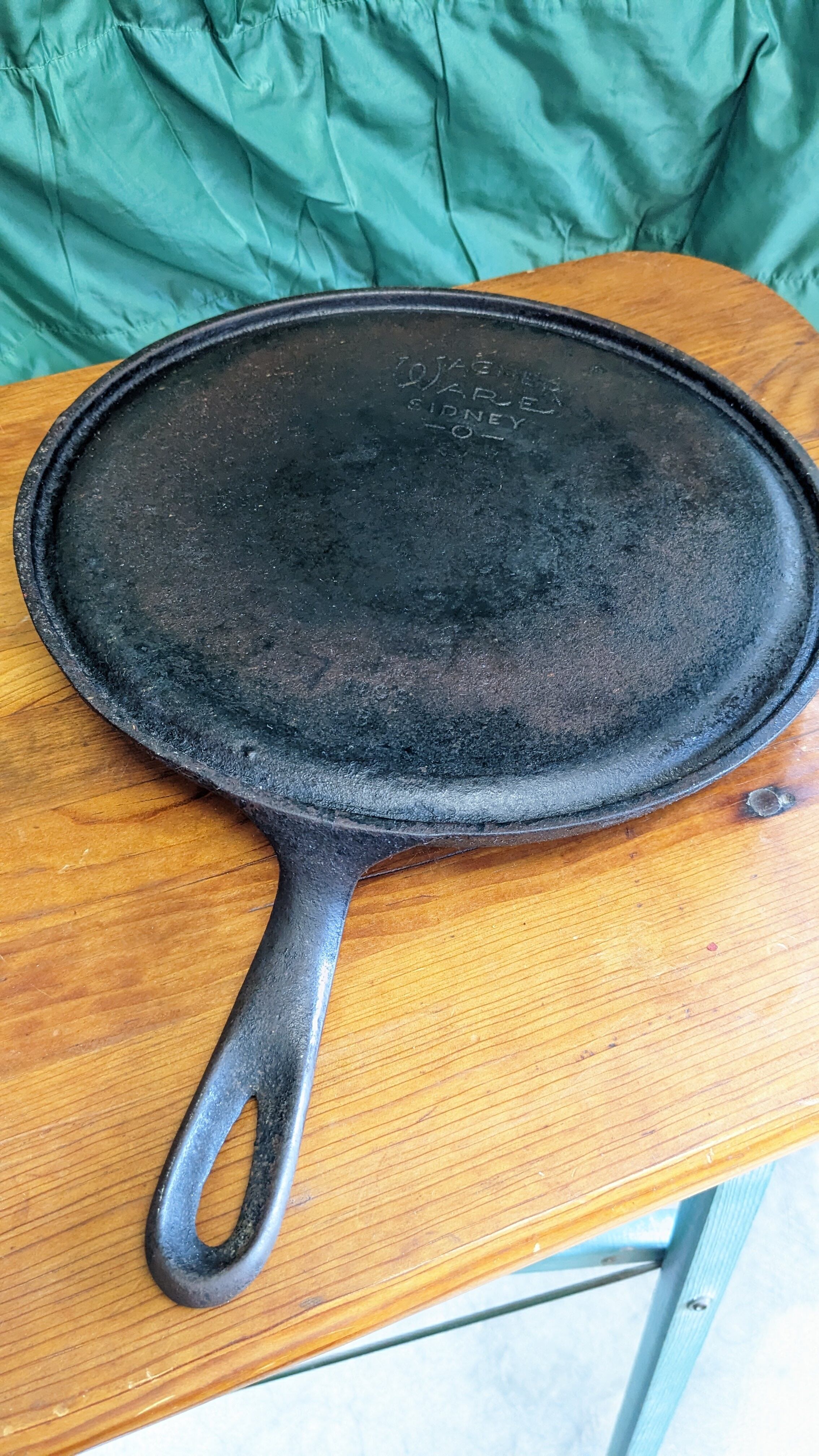 Vintage Wagner Iron Skilet USA Sidney Flat Plate ビンテージ ワグナー スキレット 鋳物 フライパン 鉄製 アンティーク キャンプ 調理器具 ヴィンテージスキレット たき火 キャンプギア USA