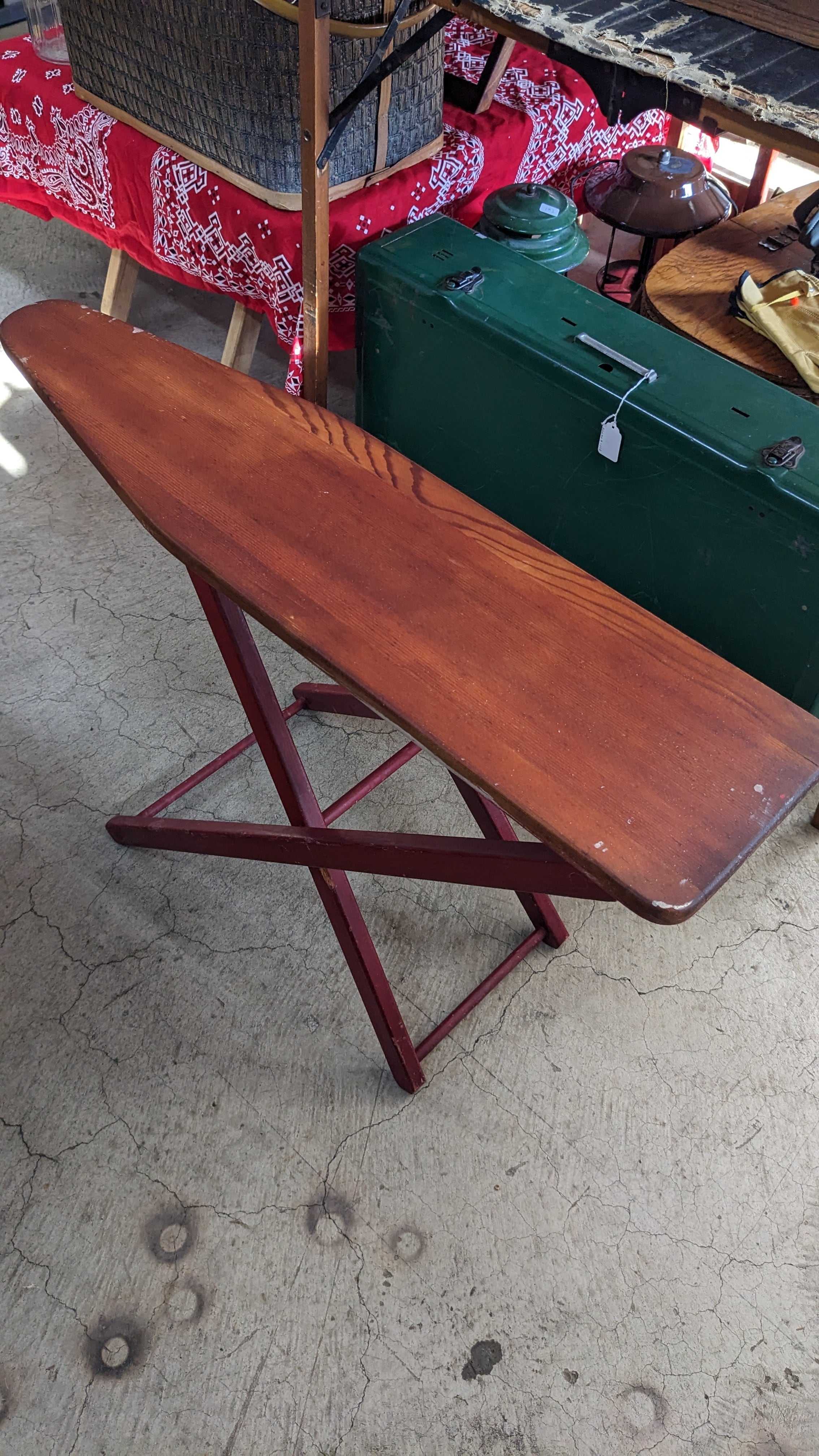 古い木製の折り畳みアイロン台で、見た目の雰囲気も抜群で、