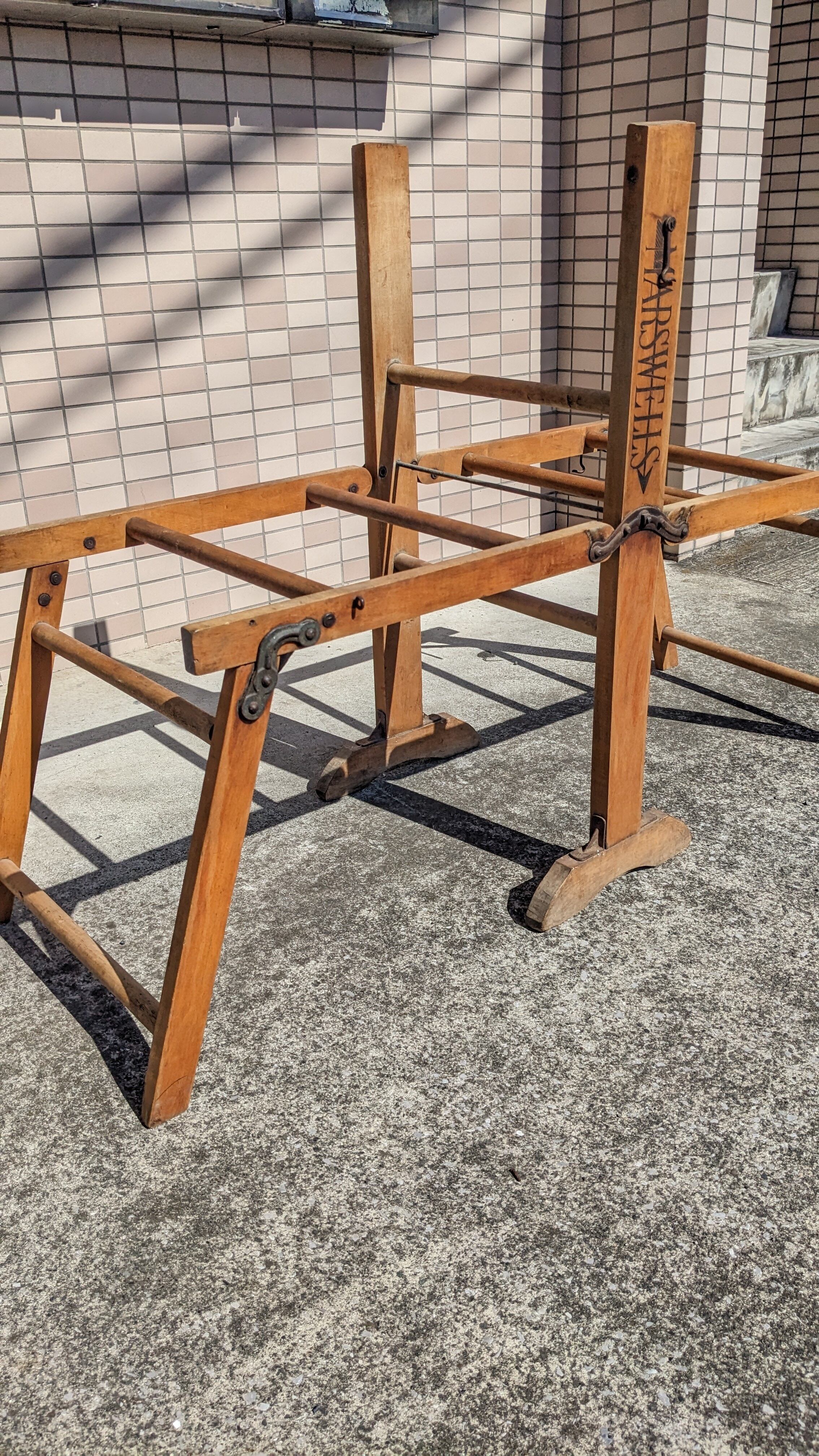 Vintage MARSWELLS Double Wash Tub Stand Wood FoldingStand Antique Camping USA ビンテージ 木製 スタンド アンティーク タブスタンド アメリカ製 折り畳み ビンテージキャンプギア 木製 キャンプ