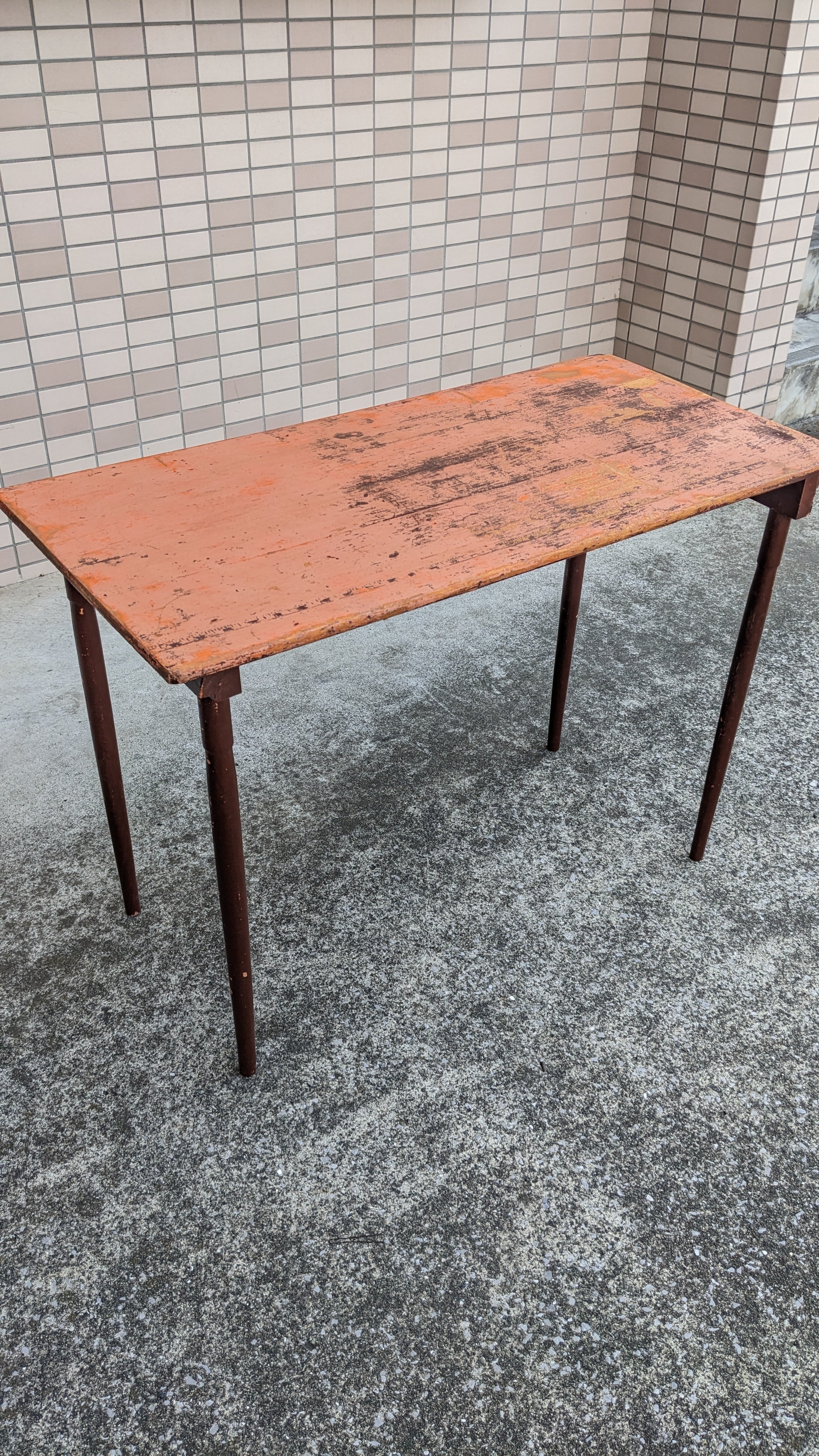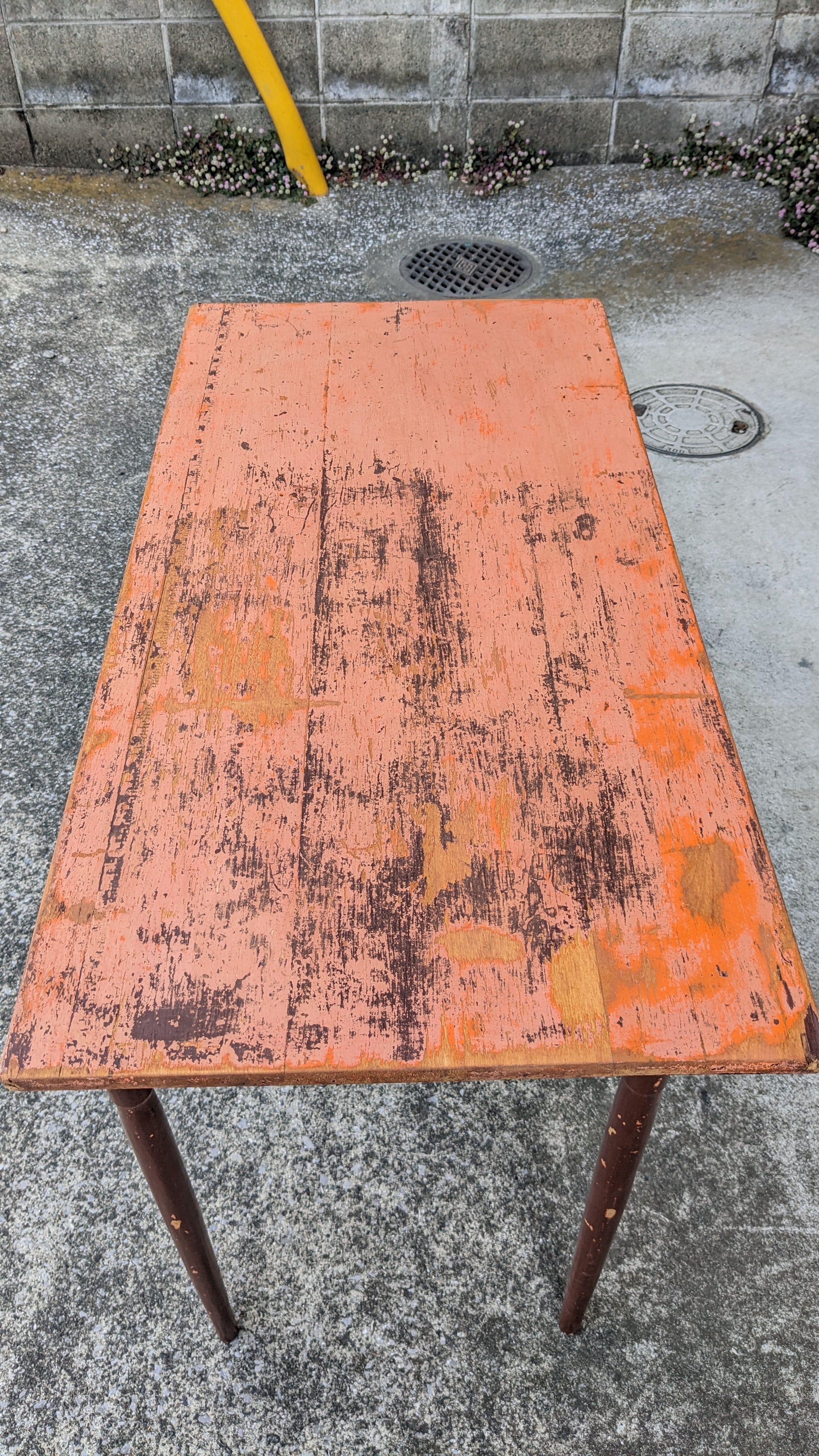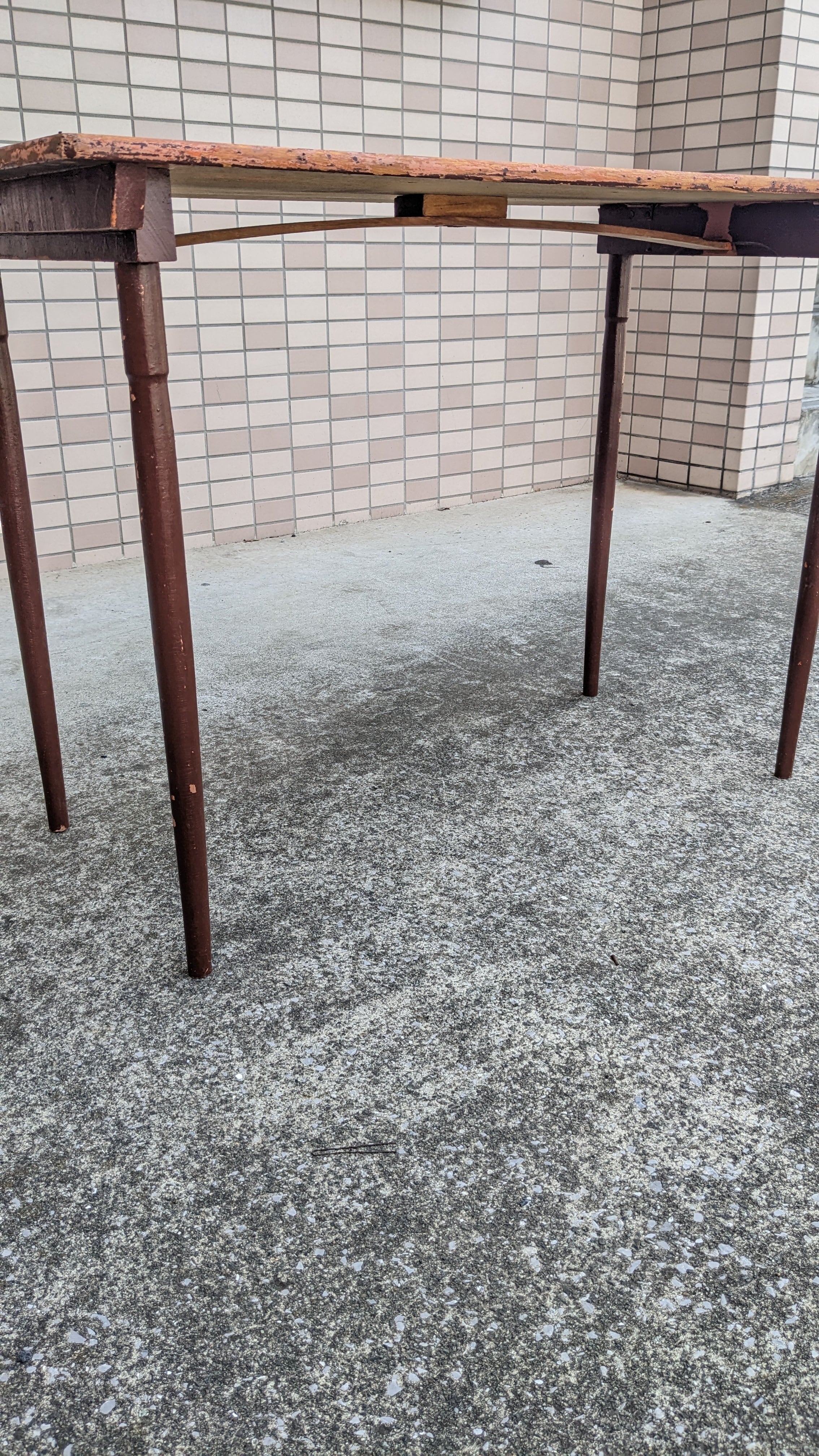 古い木製の折り畳みテーブルで、見た目の雰囲気も抜群で、