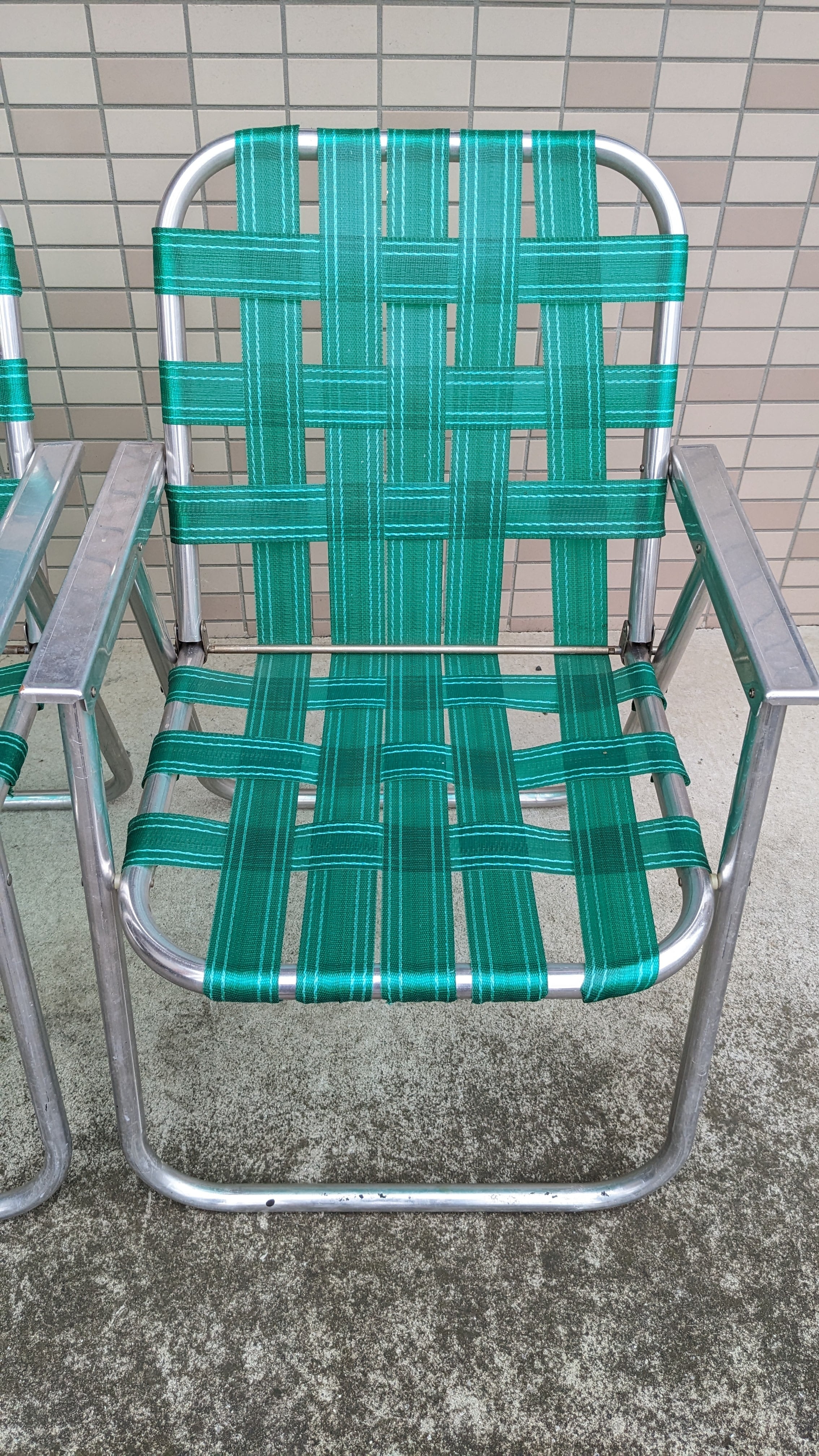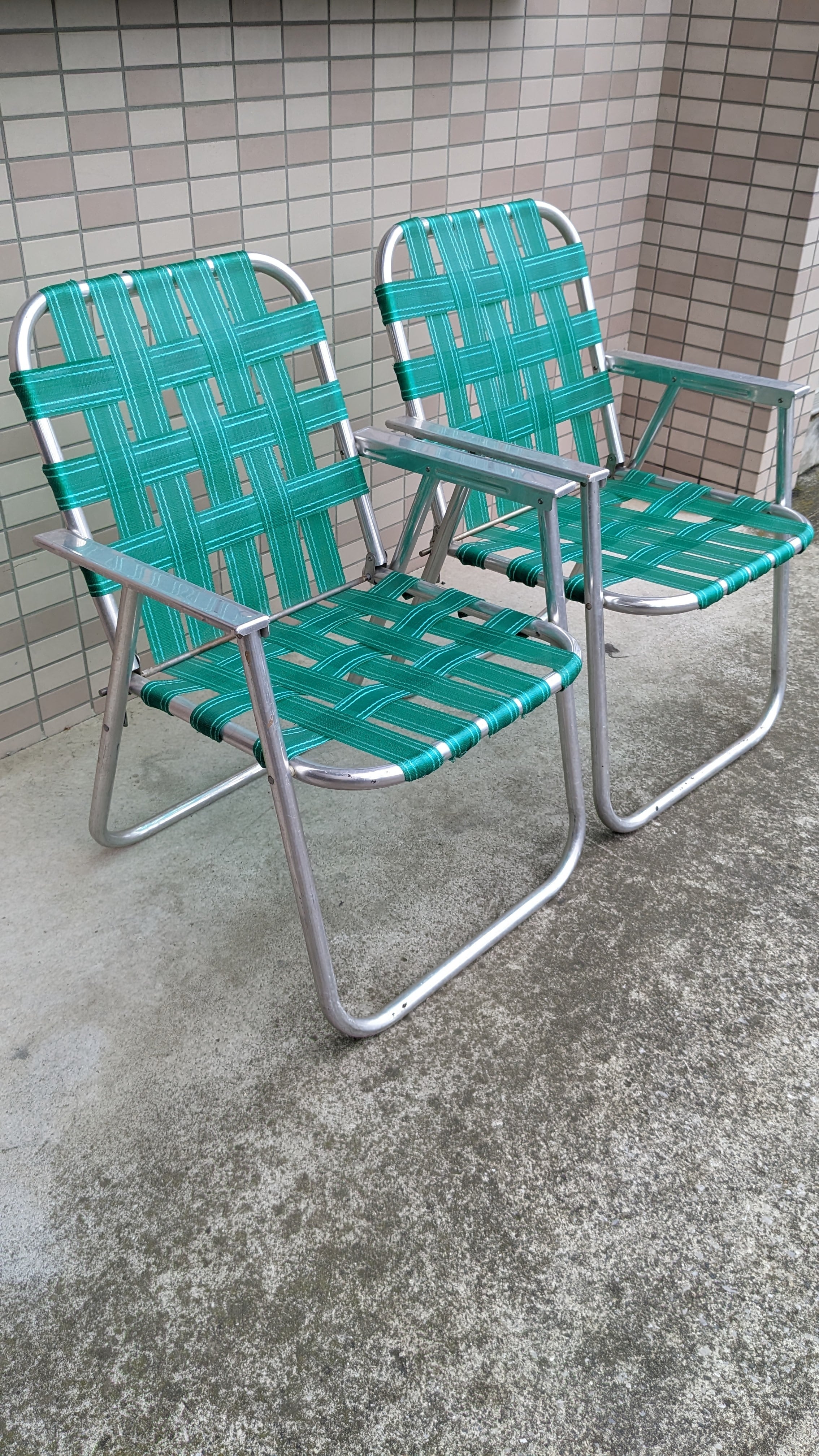 Vintage LAWN CHAIR Aluminium Folding Camping Chair Set Green ビンテージ ローンチェア フォールディングチェア キャンプチェア アンティーク アメリカ製 折り畳み椅子 ビンテージキャンプギア