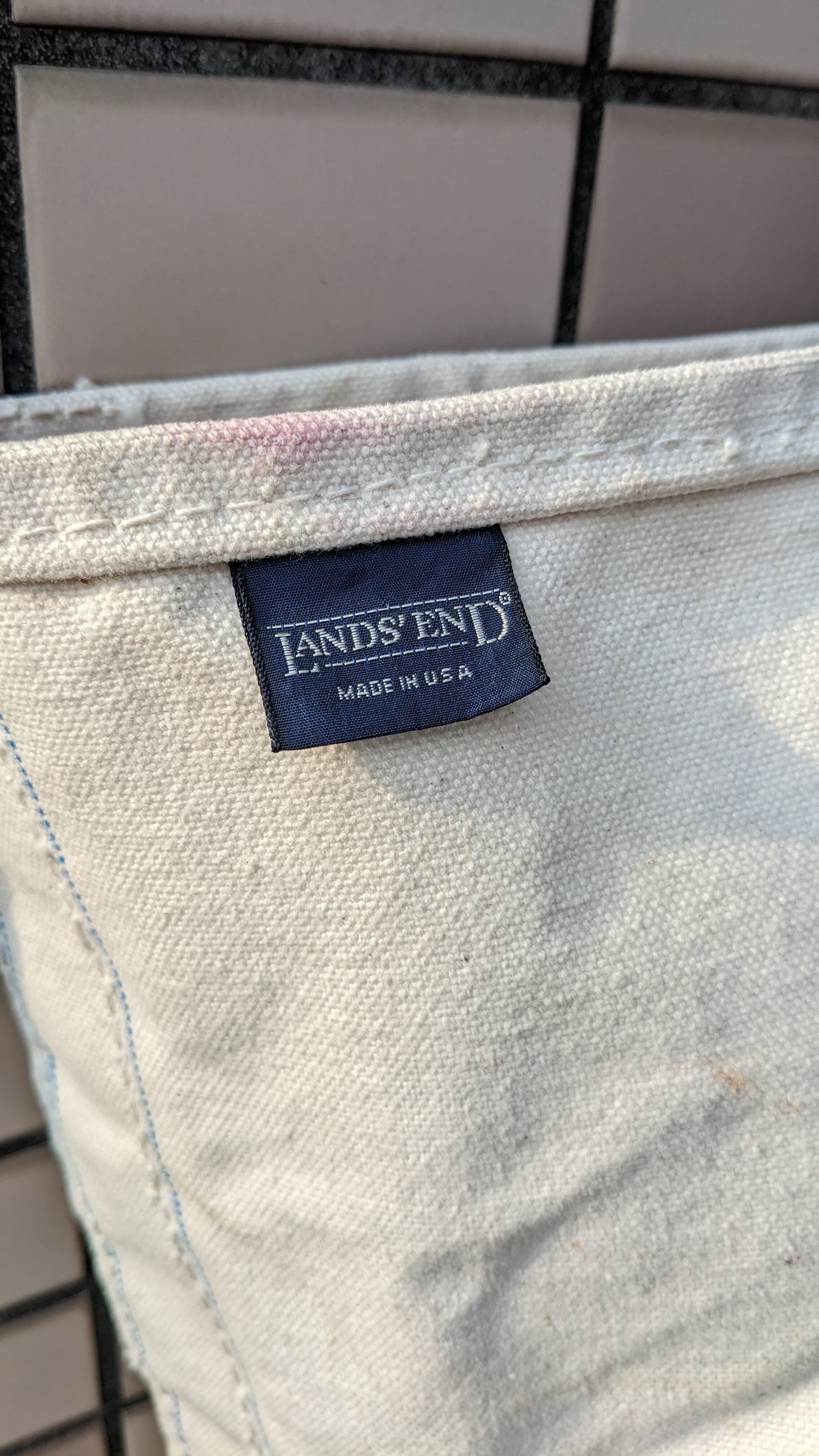 70's Vintage LANDS'END CANVAS Tote Bag USA BuleLine ランズエンド キャンバストートバッグ アメリカ 耳付き トリプルステッチ 70年代
