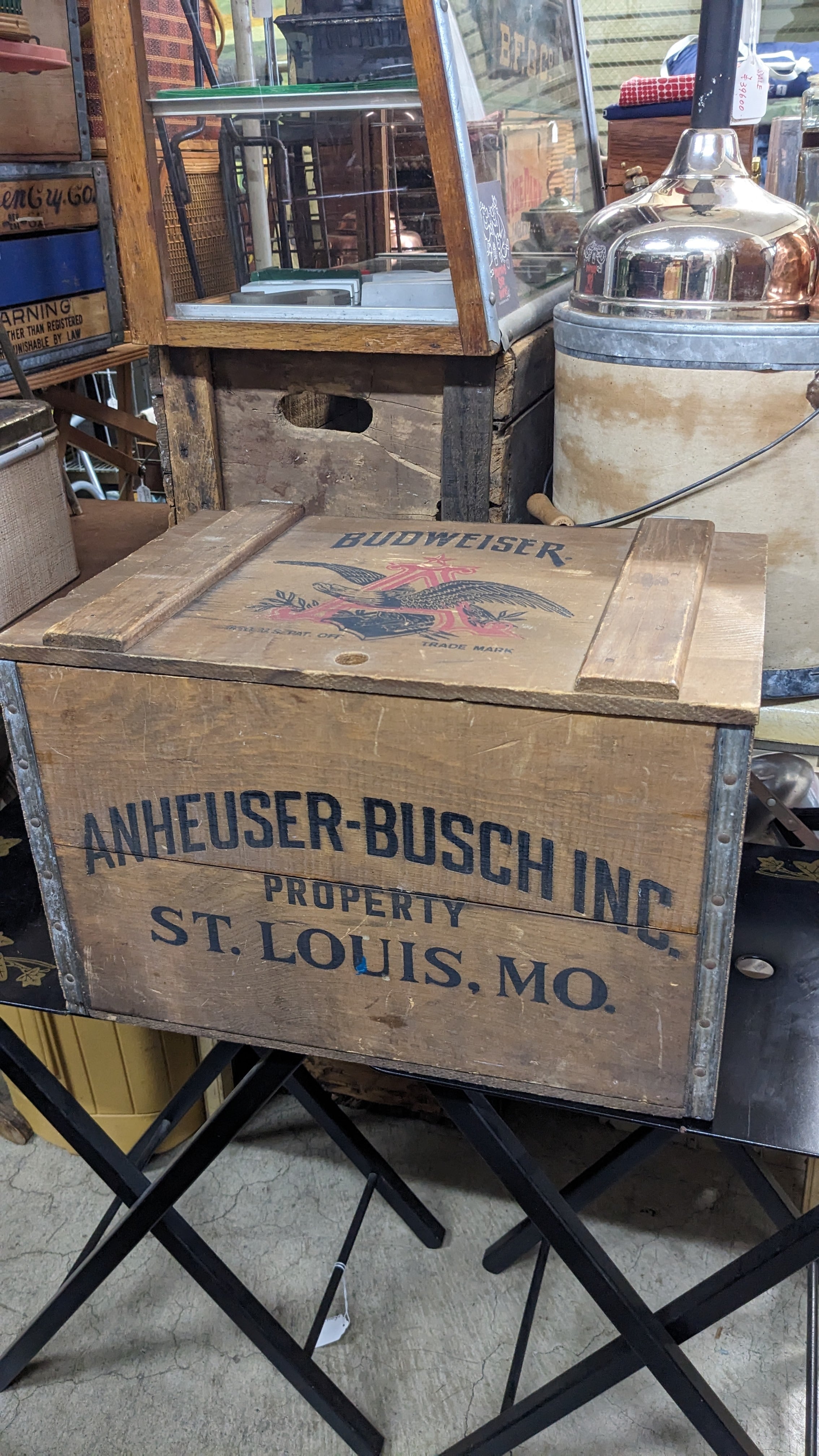 Vintage Budwiser Crate Wood Box ANHEUSER BUSCH INC ビンテージ バドワイザー ウッドボックス 木製 木箱 収納ボックス ギアボックス キャンプギア クレート アンティーク ヴィンテージボックス 天板付き