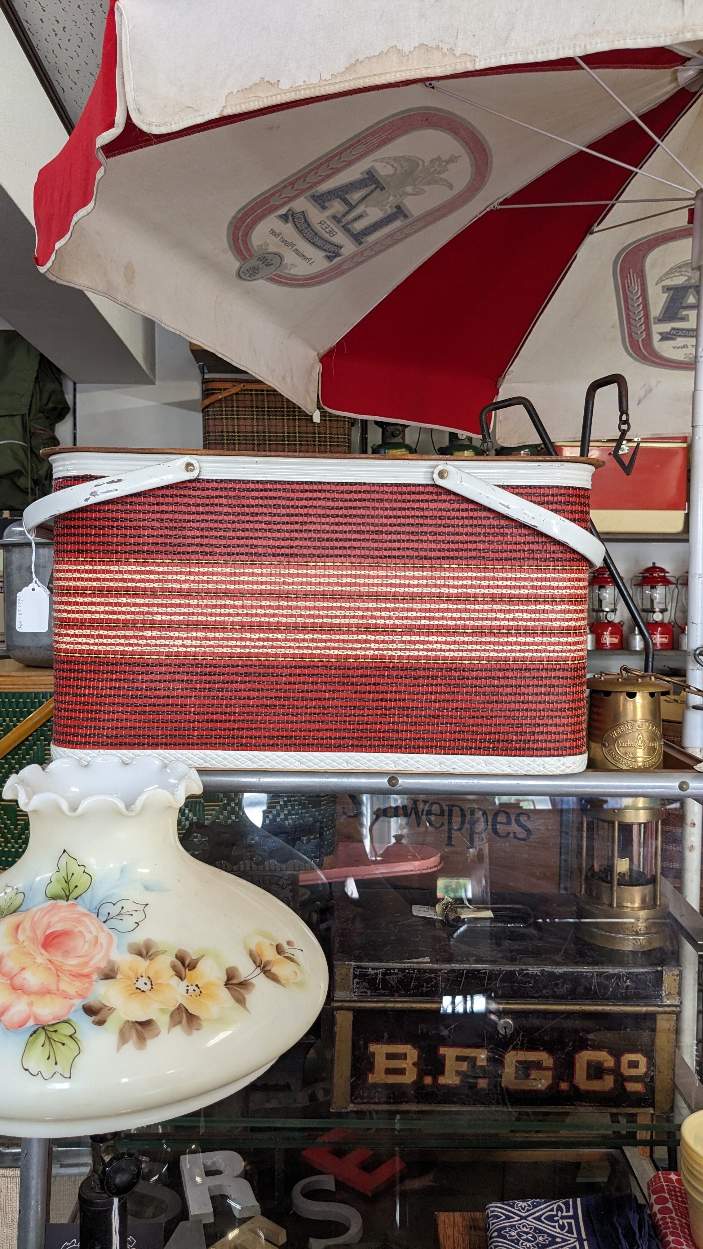 Vintage REDMON Picnic Basket REDBorder OldCampingStyle ビンテージ ピクニックバスケット キャンプギア バスケット USA ボーダー柄