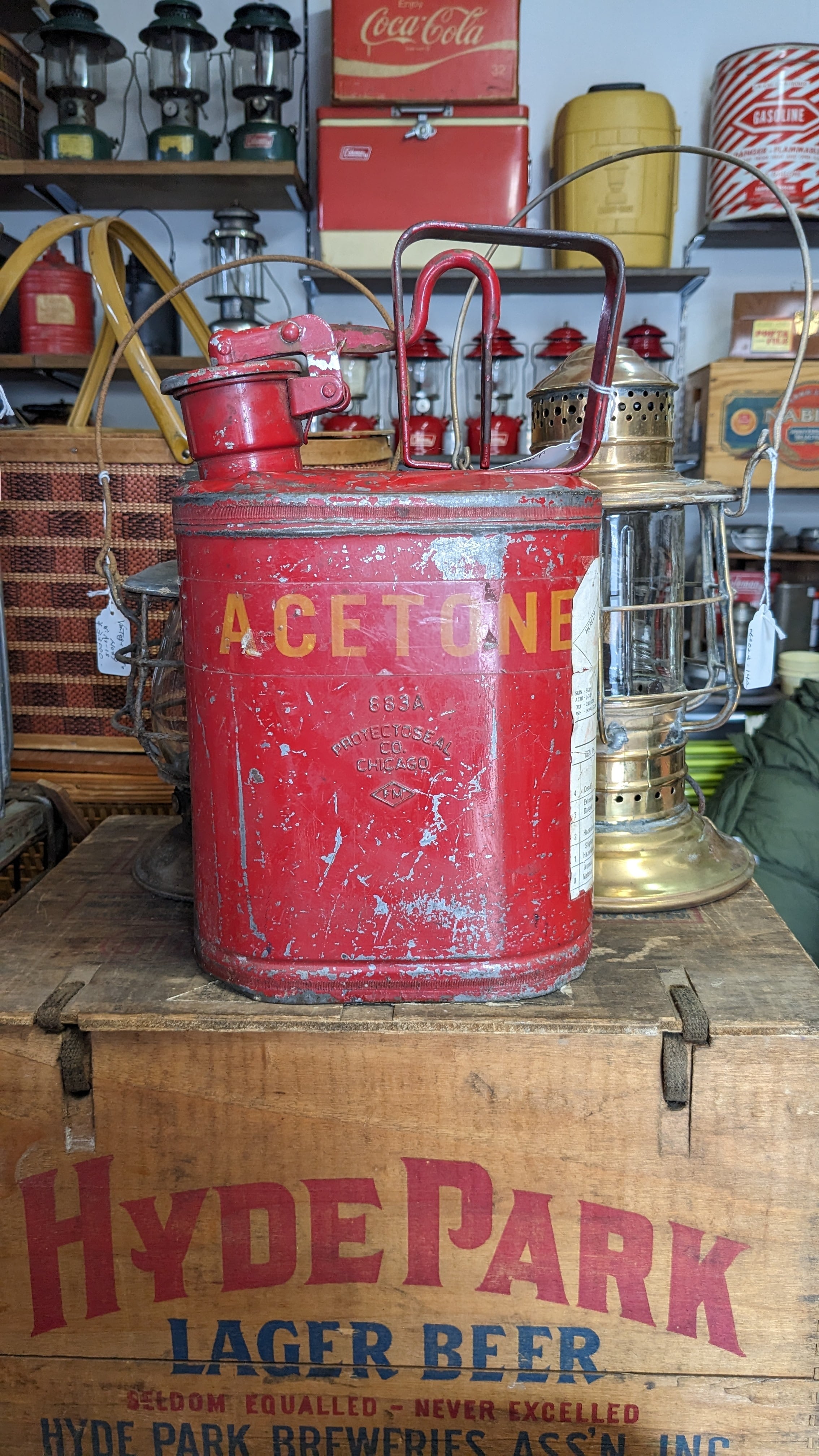 Vintage PROTECTOSEAL Co CHICAGO 883A Safety Can Gasolin Can Tank 1gallon Oil Can ヴィンテージ セーフティー缶 ガソリン缶 オイル缶 携行缶 1ガロン アンティーク キャンプギア ホワイトガソリン入れ 灯油缶