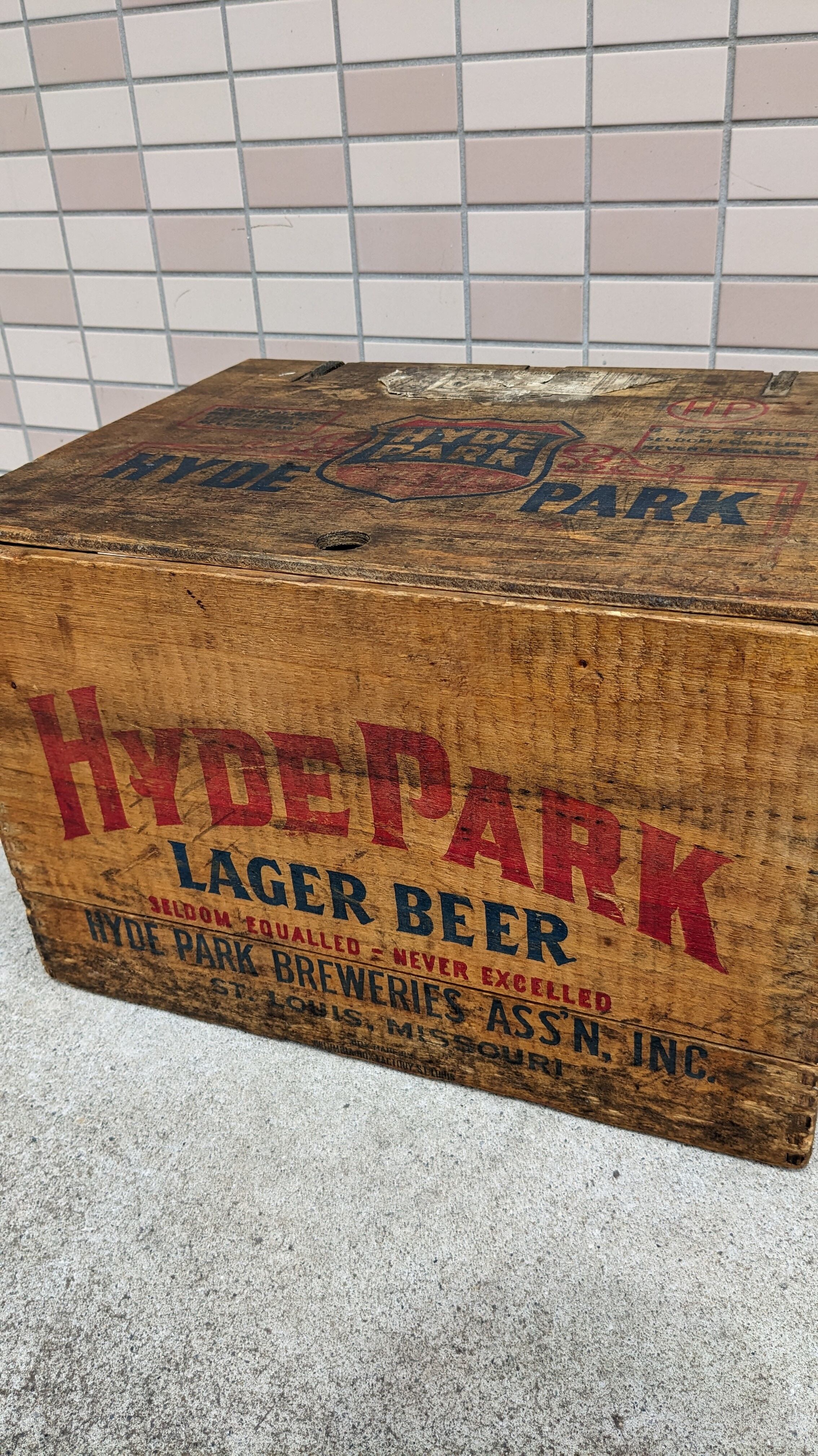 1942 Vintage HYDE PARK LAGER BEER Crate Wood Box ビンテージ ウッドボックス 木製 木箱 収納ボックス ギアボックス キャンプギア クレート アンティーク ヴィンテージボックス 天板付き USA
