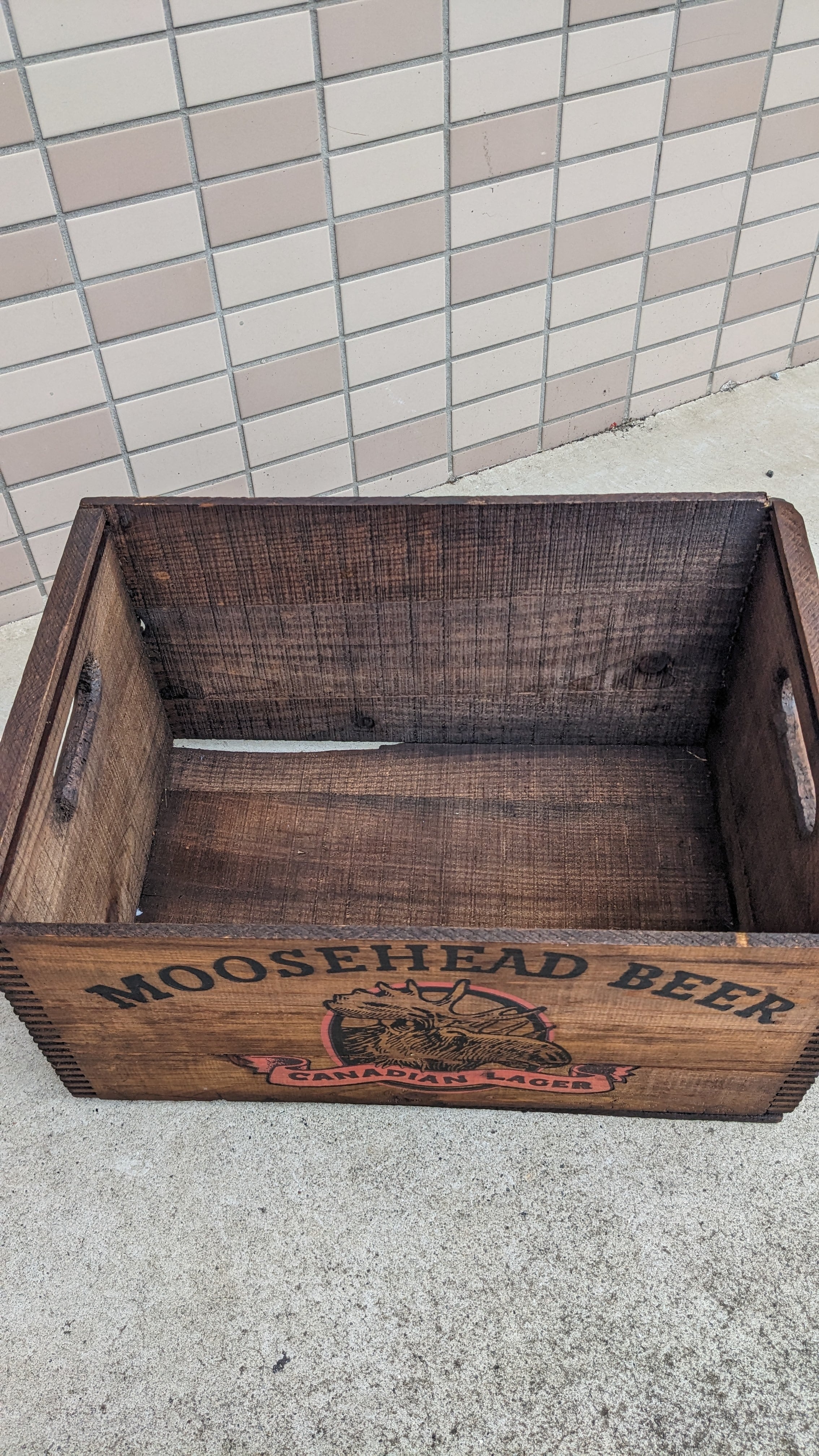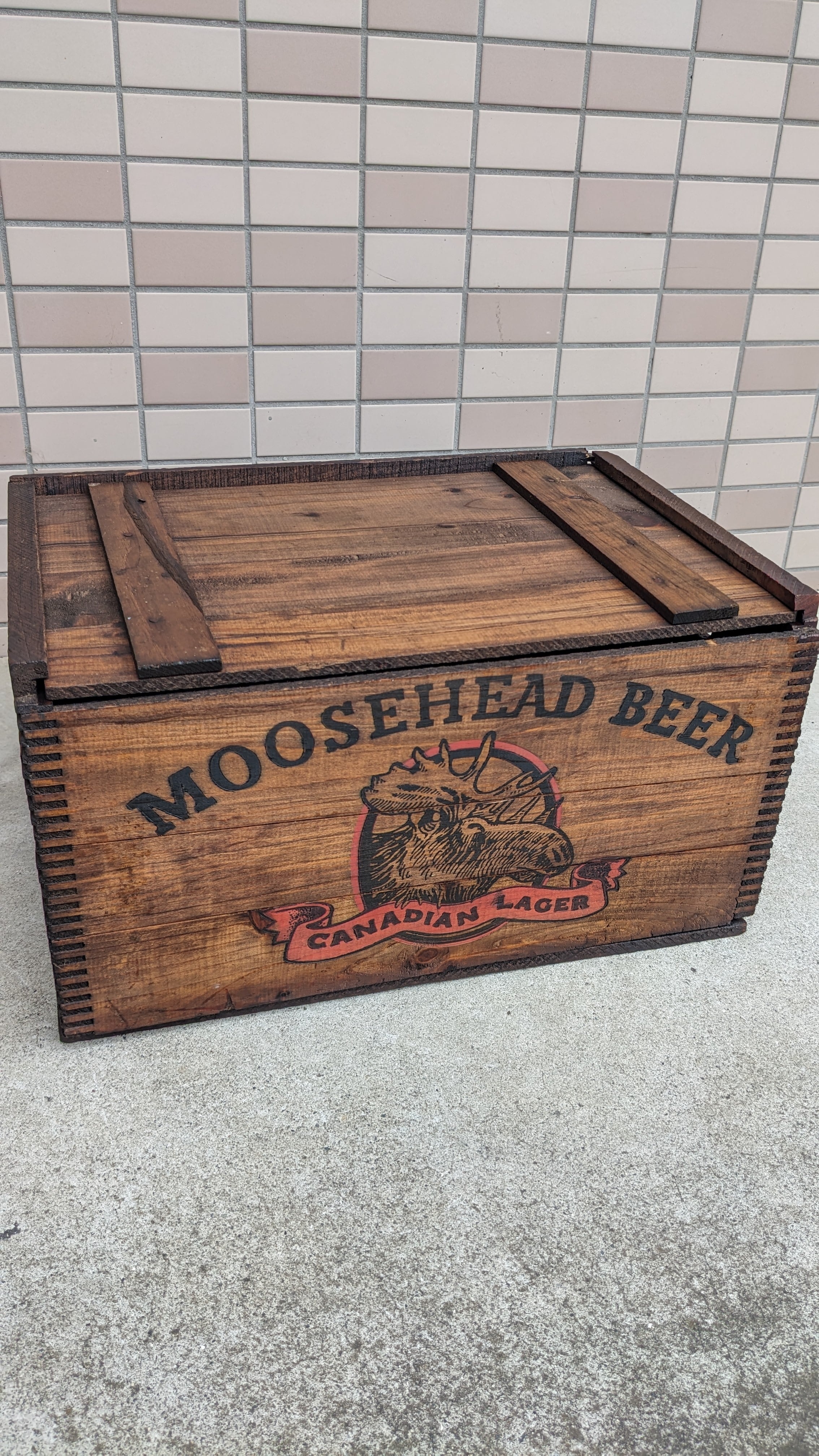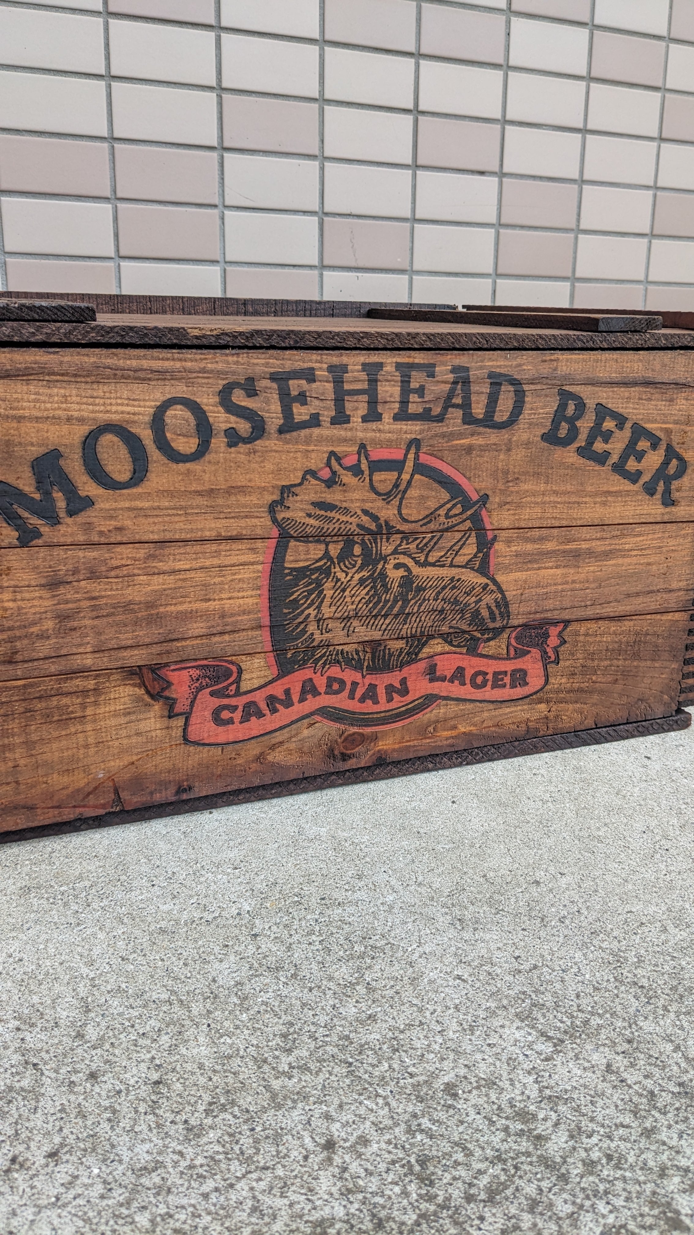 Vintage MOOSEHEAD BEER Crate Wood Box ビンテージ ウッドボックス 木製 木箱 収納ボックス ギアボックス キャンプギア クレート アンティーク ヴィンテージボックス