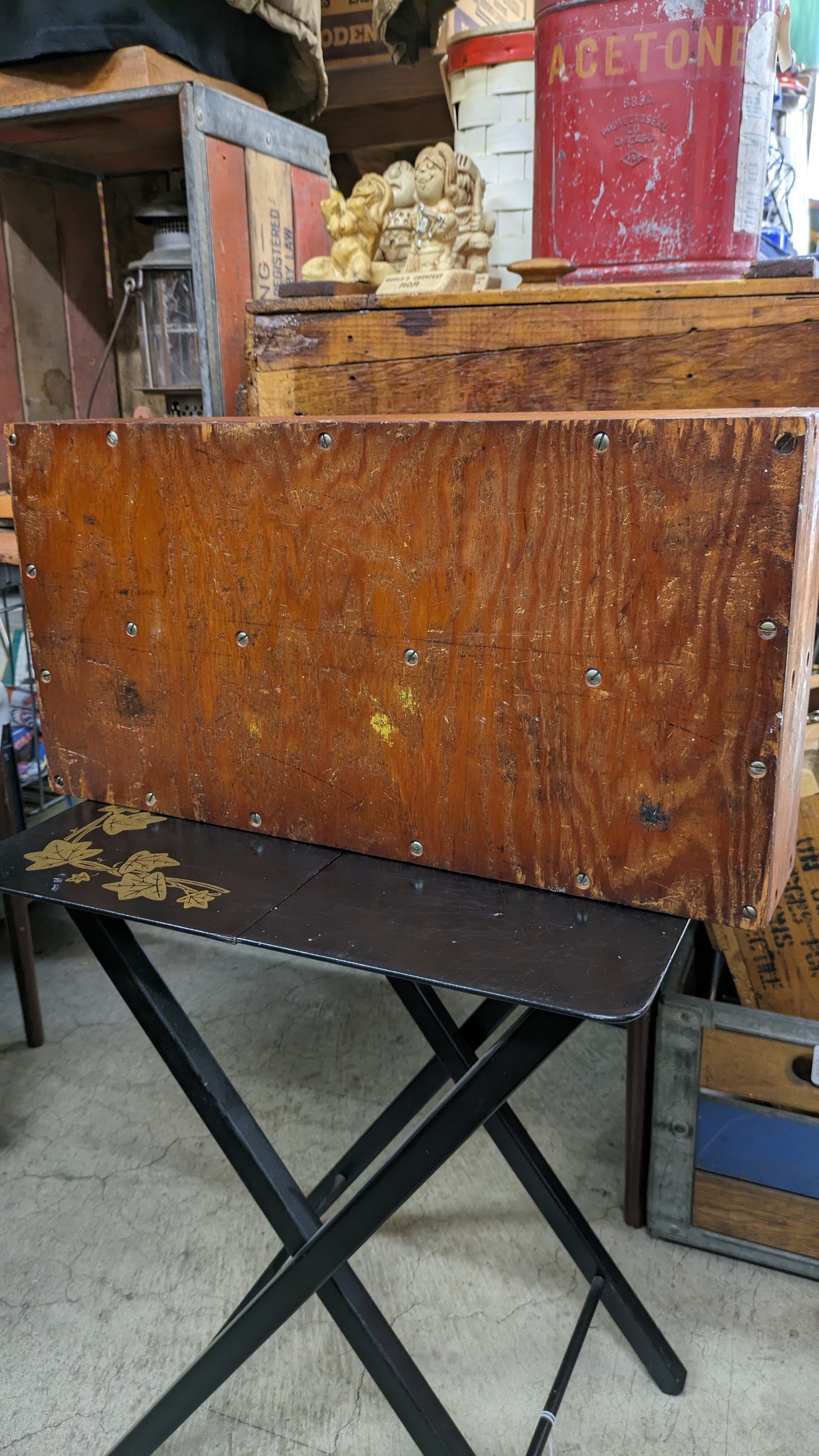 アメリカにて買い付けた雰囲気満点なアンティークウッドトレーです。