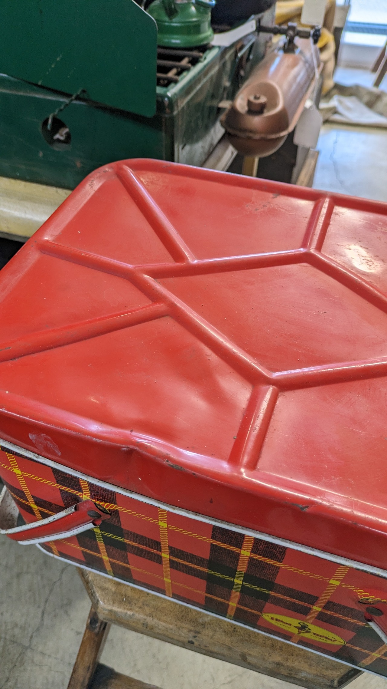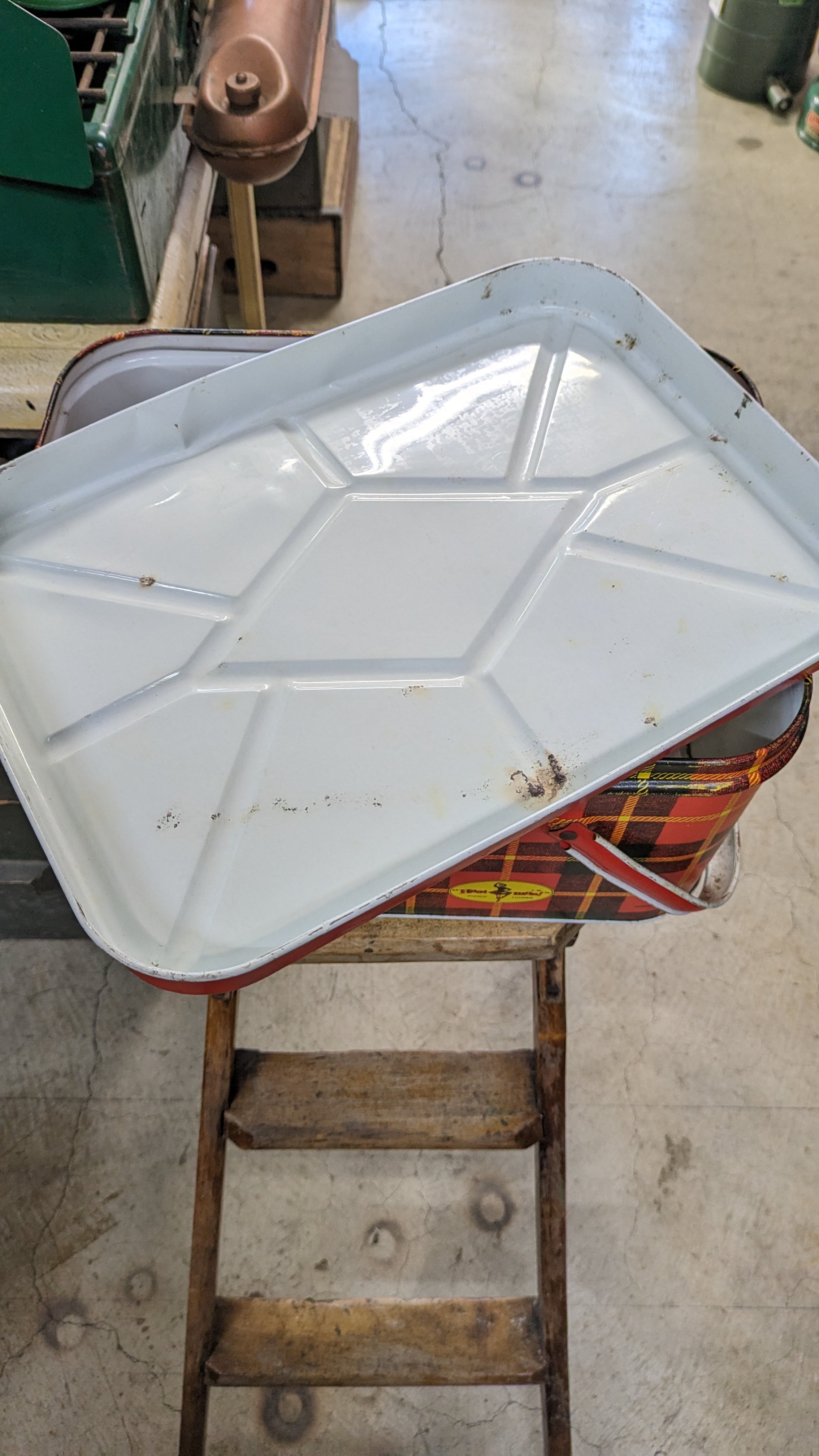 Vintage Burlington Chicago Tin Picnic Basket CAN ビンテージ バーリントン 缶バスケット ピクニックバスケット キャンプギア バスケット USA ヴィンテージキャンプ