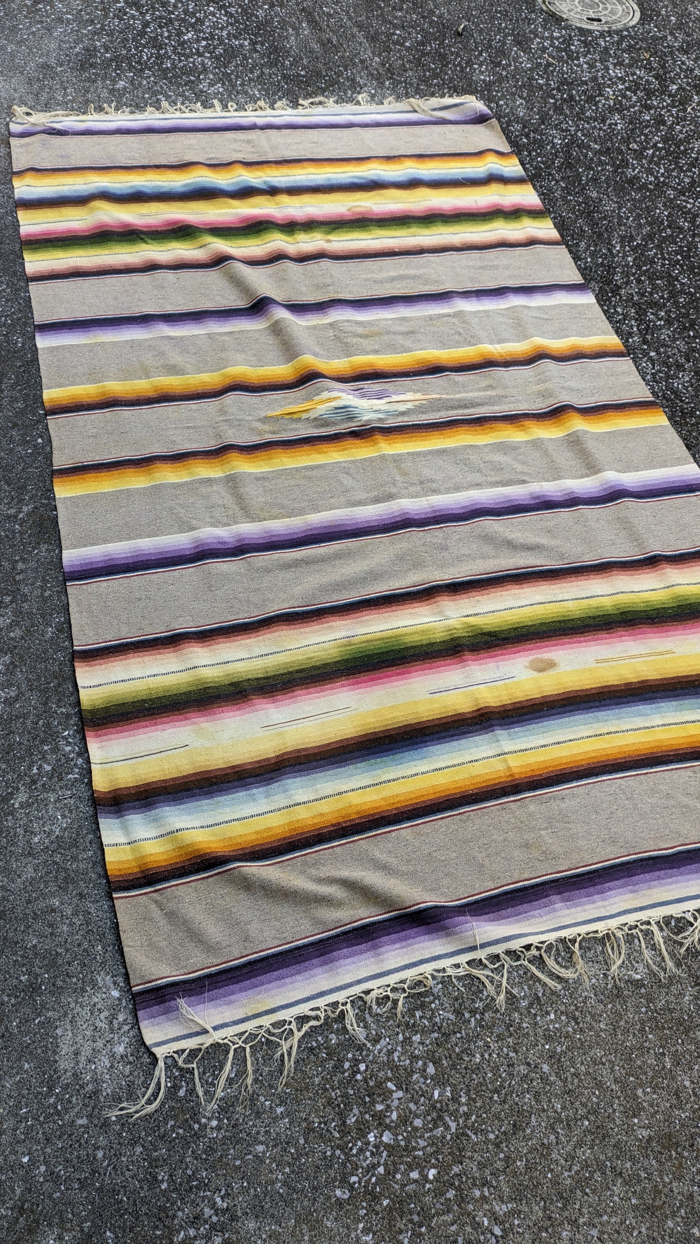 Vintage Mexican Sarape cotton Rug Native Blanket ビンテージ メキシカンサラぺ ネイティブラグ キャンプ ラグ 214x126cm