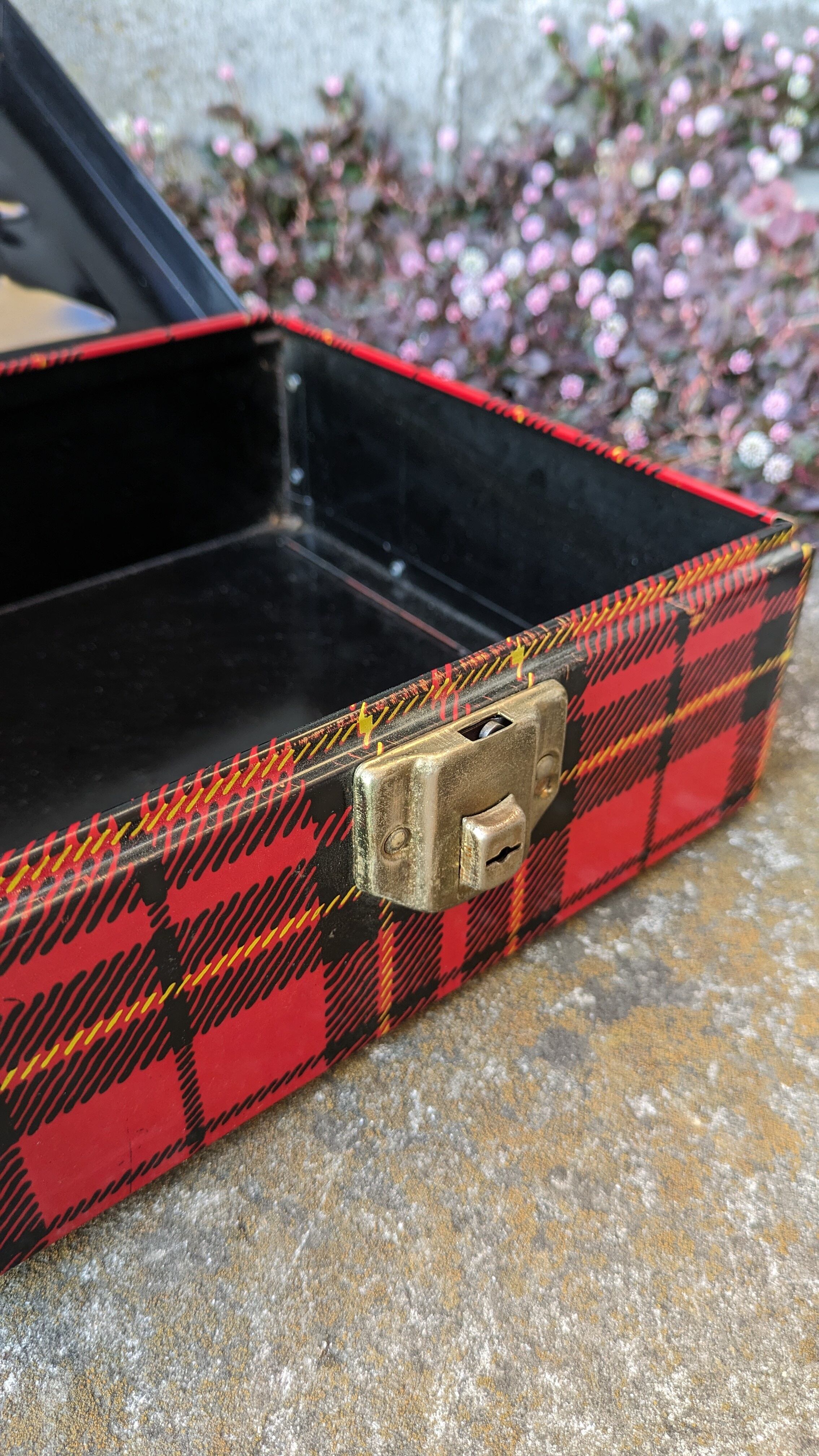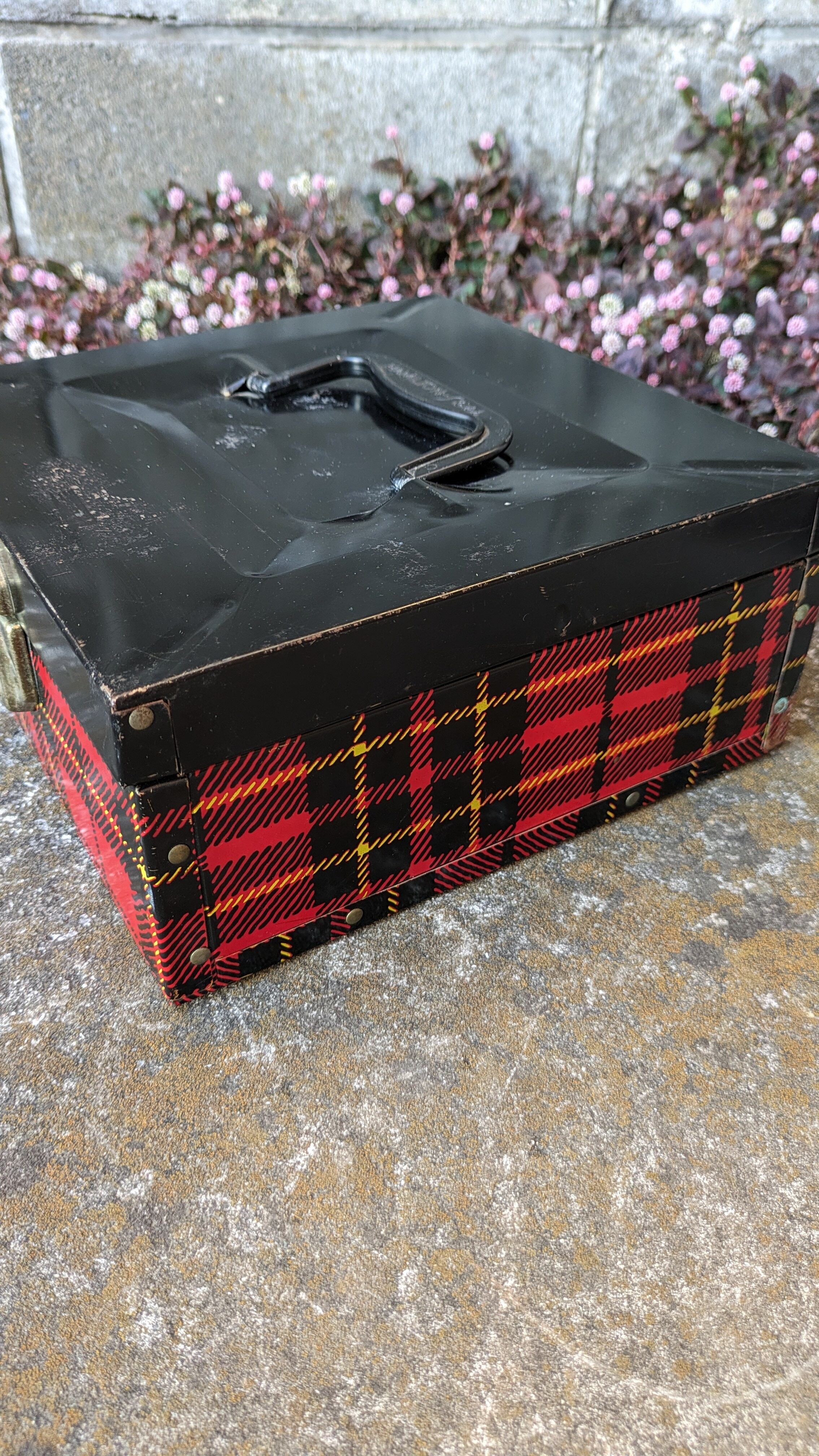 アメリカにて買い付けたビンテージHamiltonのチェック柄が素敵な缶ケースです。