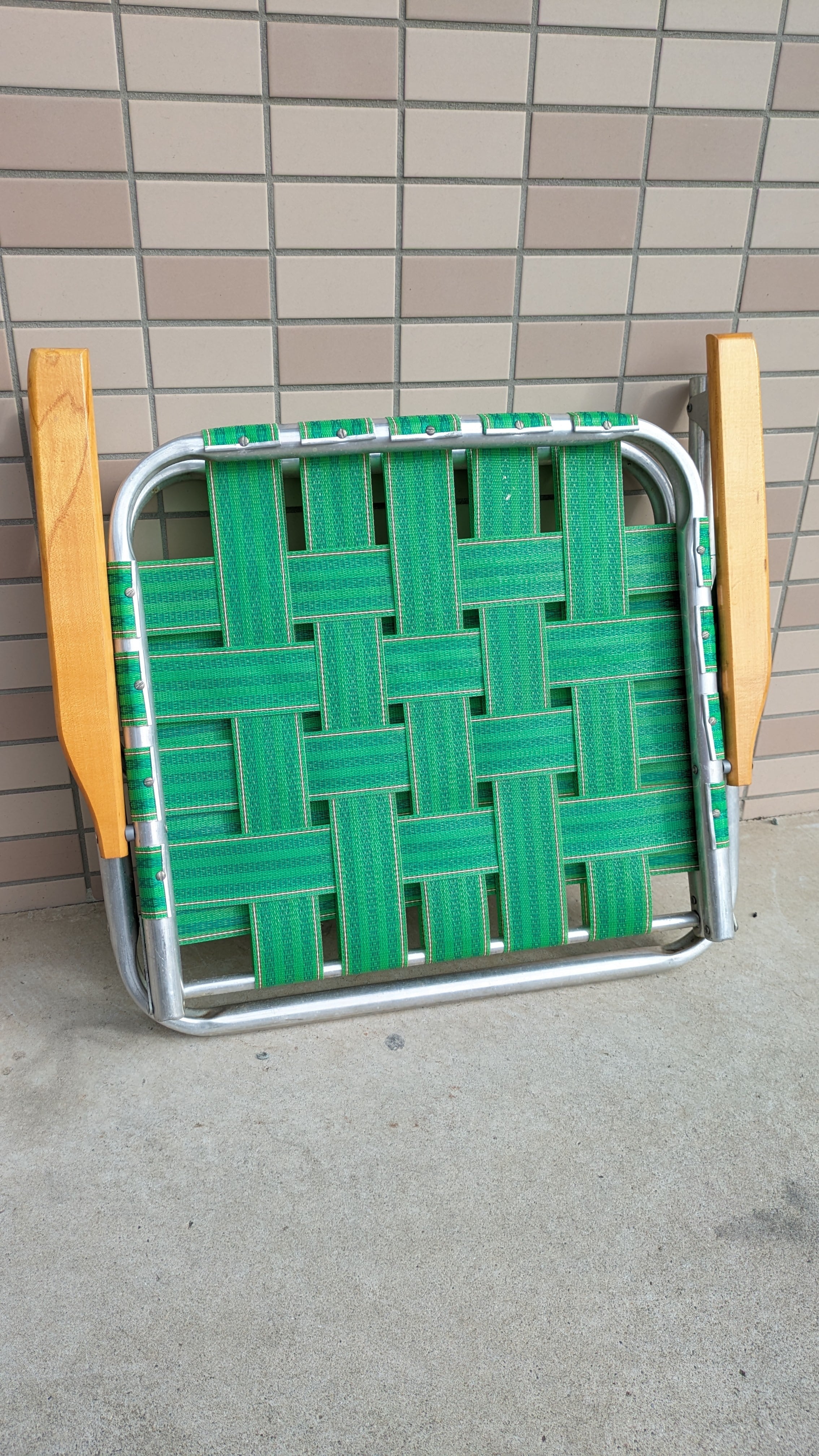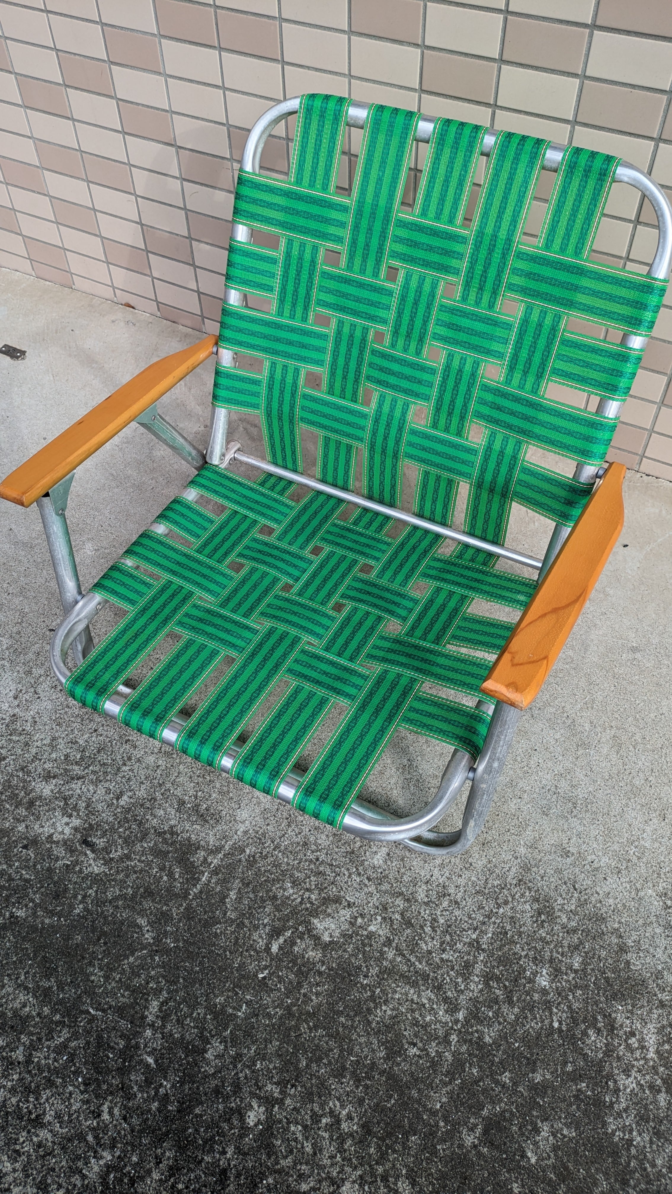 Vintage LAWN CHAIR Aluminium Folding Camping Chair Low Green ビンテージ ローンチェア フォールディングチェア キャンプチェア アンティーク アメリカ製 折り畳み椅子 ビンテージキャンプギア