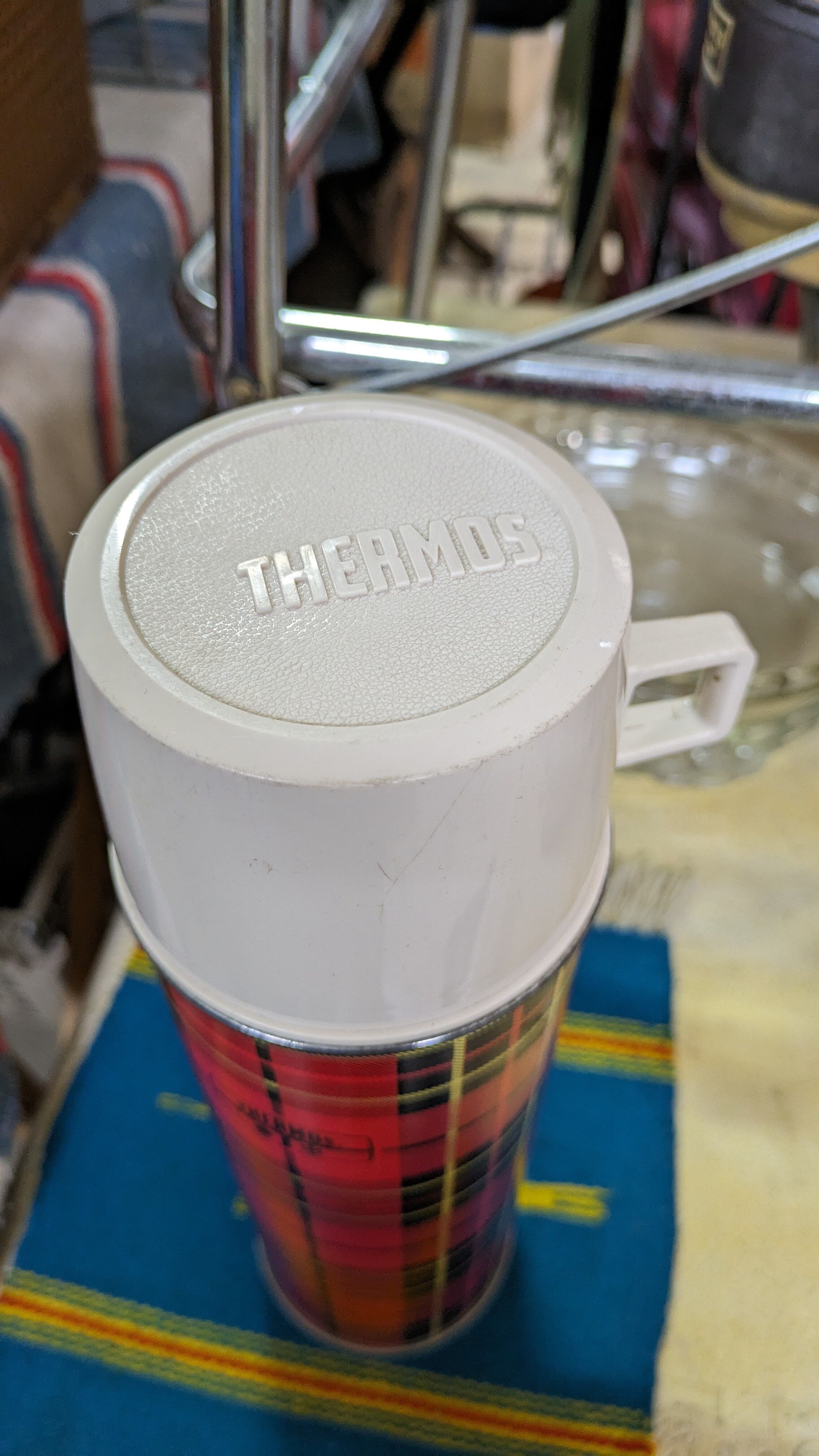 アメリカにて買い付けたチェックの柄が素敵なビンテージThermosの魔法瓶です。