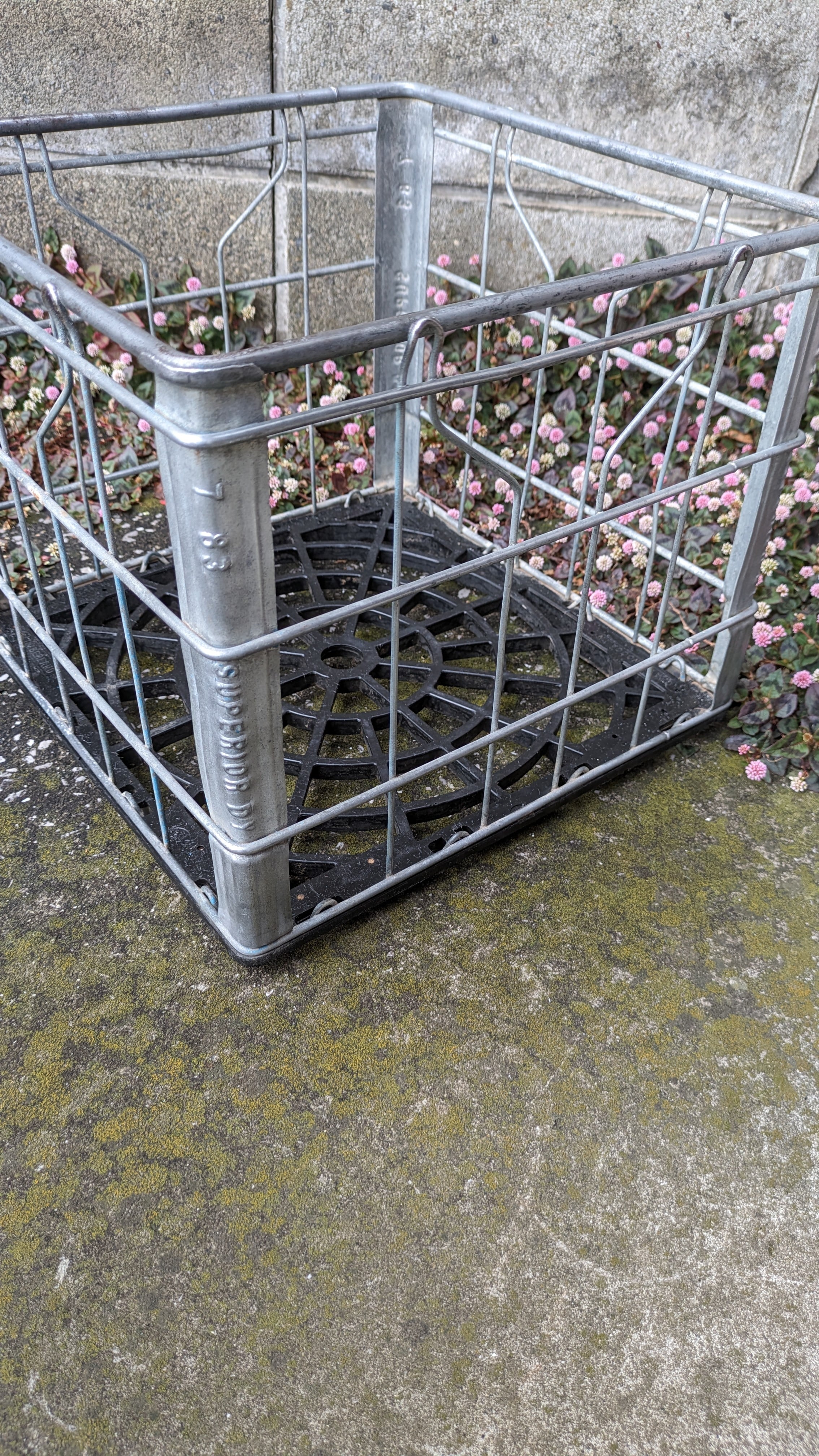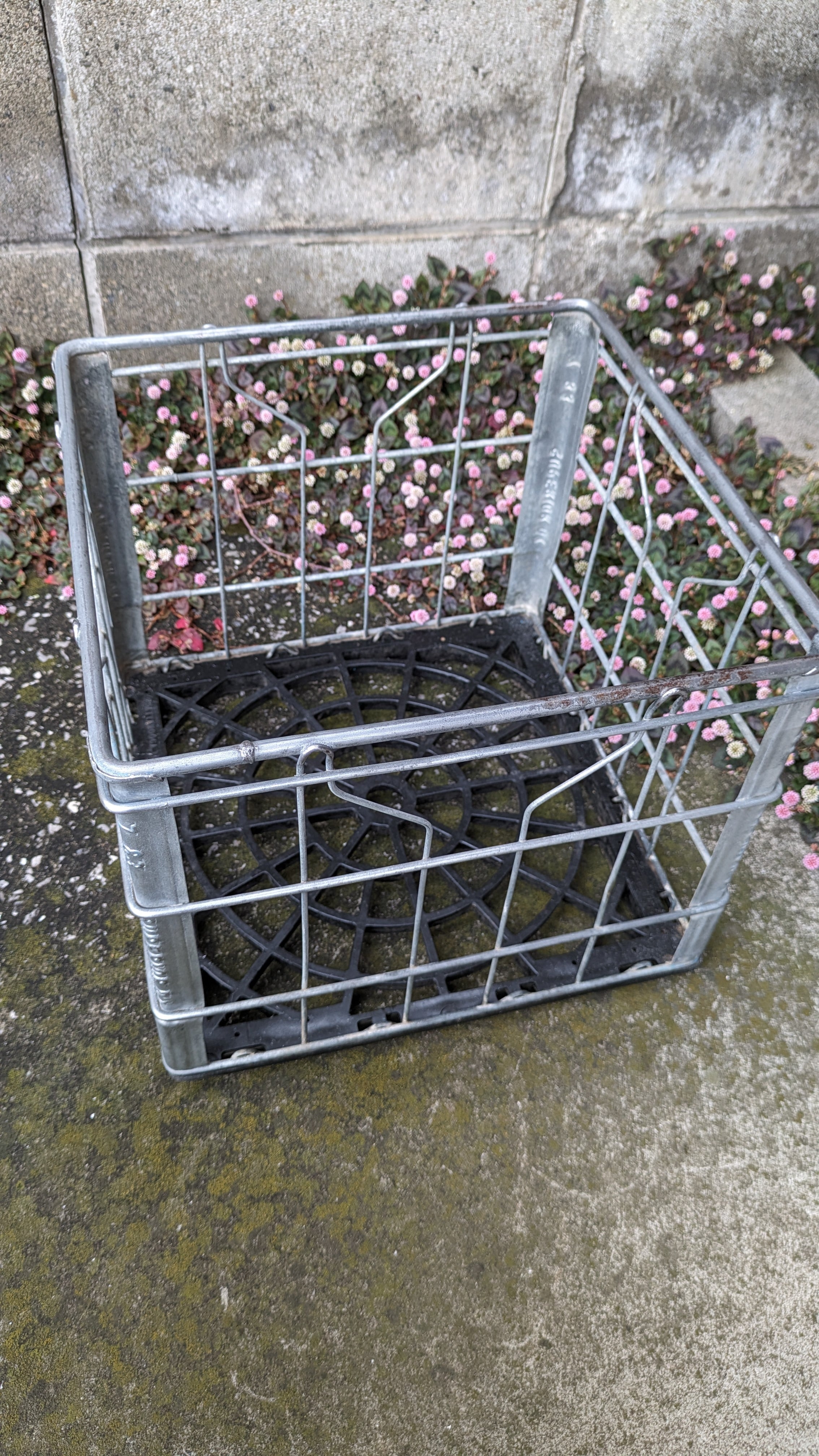アメリカにて買い付けた人気の高いビンテージミルクワイヤークレートです。