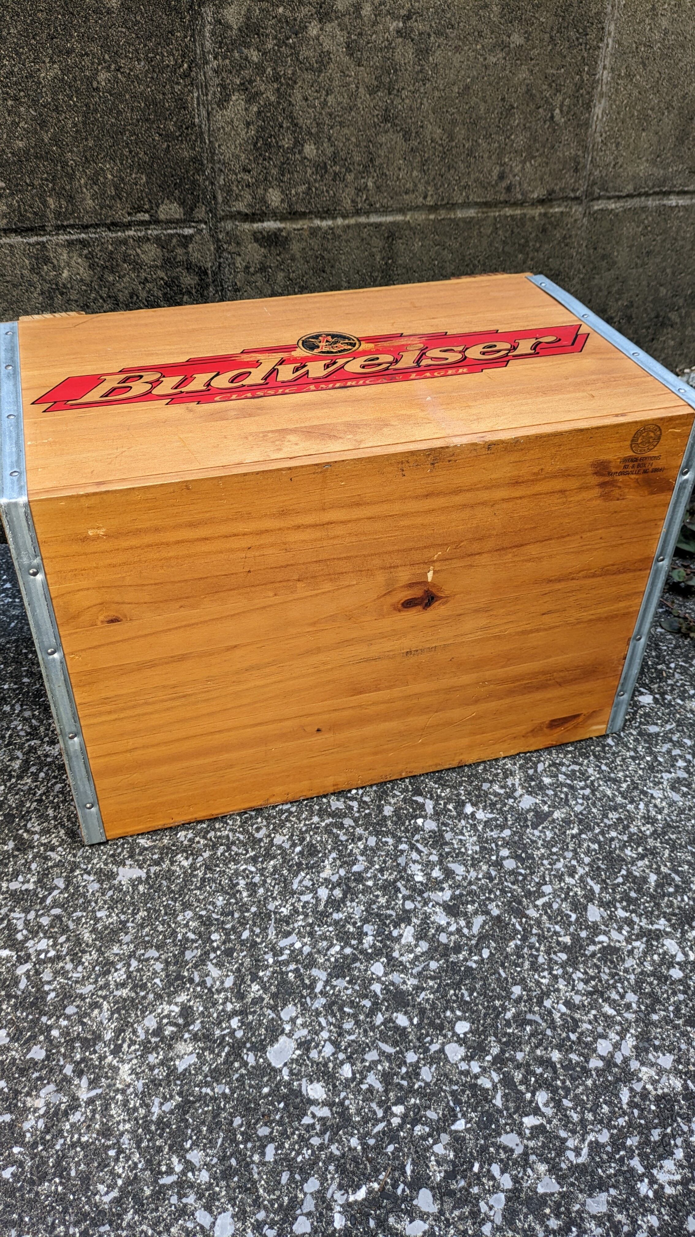 Vintage Budwiser Crate WoodBox VintageEdittions ビンテージ バドワイザー ウッドボックス 木製 木箱 収納ボックス ギアボックス キャンプギア クレート アンティーク ヴィンテージボックス 天板付き USA