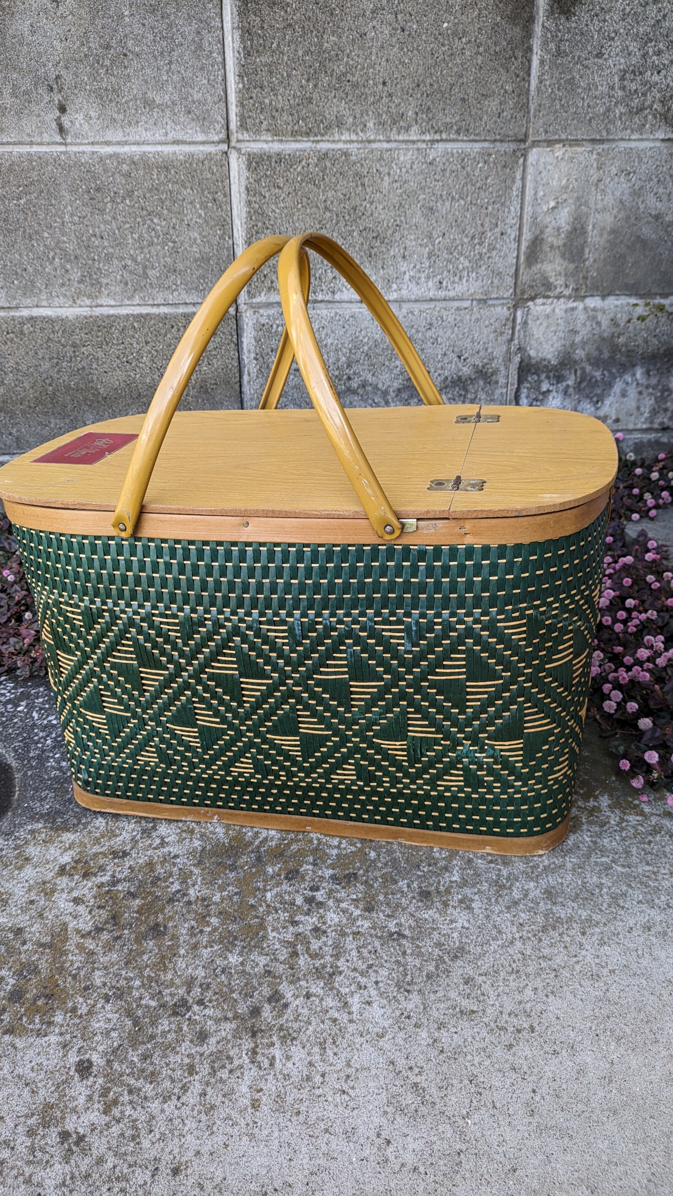 Vintage Hawkeye Burlington PicnicBasket GreenDiamond OldCampingStyle ビンテージ ホークアイ ピクニックバスケット 緑 キャンプギア バスケット USA グリーンダイアモンド バスケット ヴィンテージ