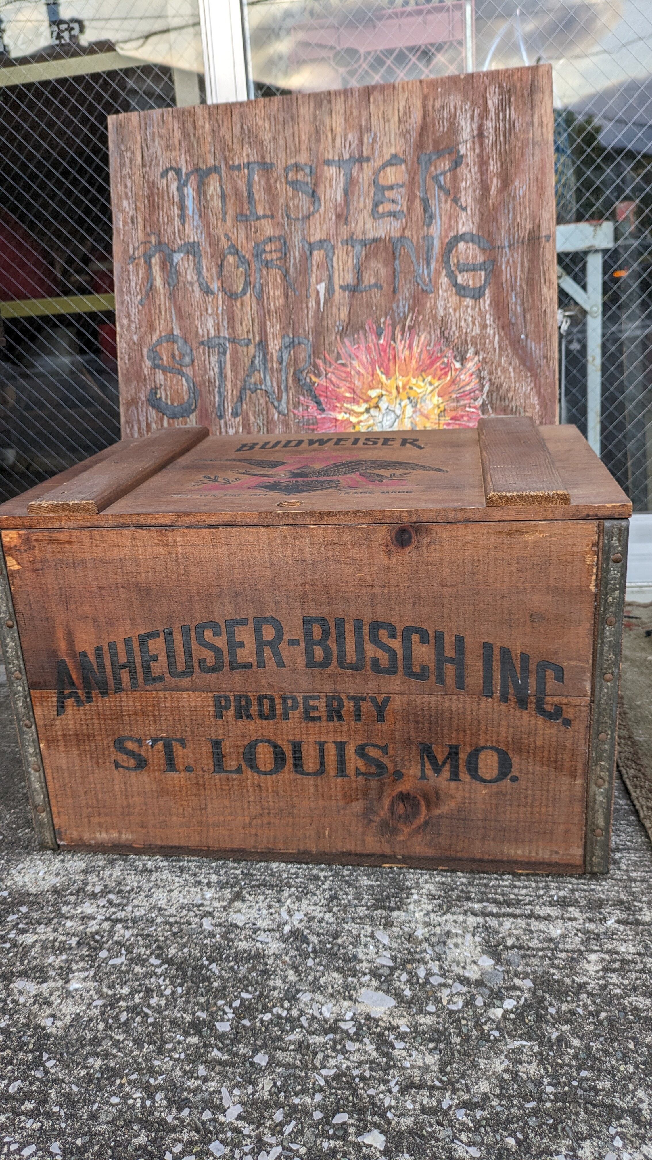 Vintage Budwiser Crate Wood Box ANHEUSER BUSCH INC ビンテージ バドワイザー ウッドボックス 木製 木箱 収納ボックス ギアボックス キャンプギア クレート アンティーク ヴィンテージボックス 天板付き USA