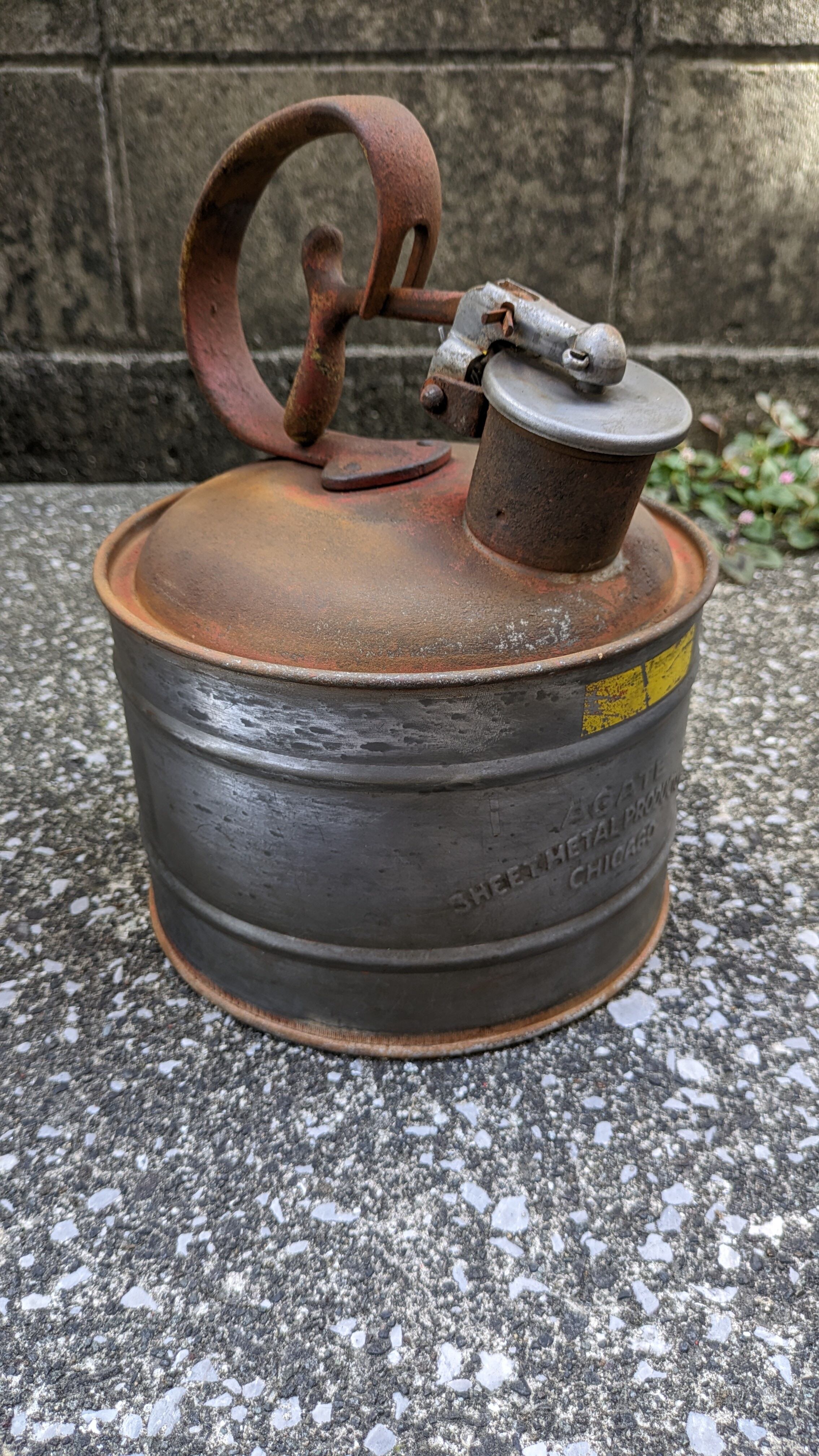 Vintage AFATE Sheetmetal Products CHICAGO SafetyCan GasolinCan Tank 2gallon OilCan ヴィンテージ セーフティー缶 ガソリン缶 オイル缶 携行缶 2ガロン アンティーク キャンプギア ホワイトガソリン入れ 灯油缶