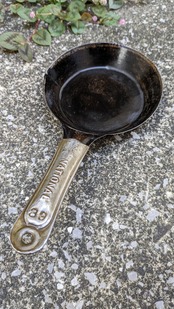 素敵なブランドエンボスの入ったハンドルのミニカウボーイフライパンです。