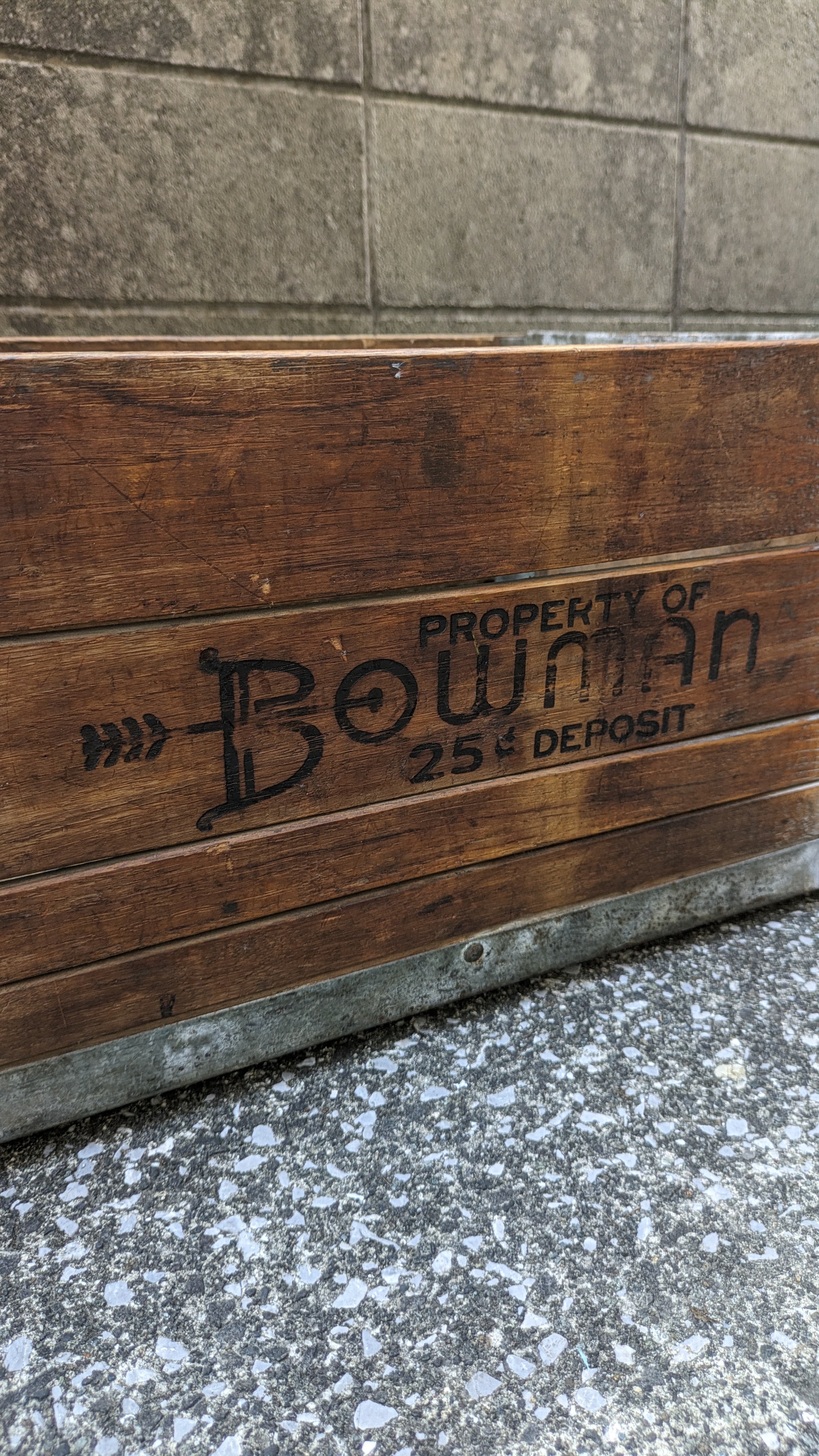 <5月17日21時販売スタート> 1950's Vintage Bowman MilkCrate WoodBox Antique Arrow ビンテージ ミルククレート ウッドボックス 木製 木箱 収納ボックス ギアボックス キャンプギア クレート アンティーク ヴィンテージボックス