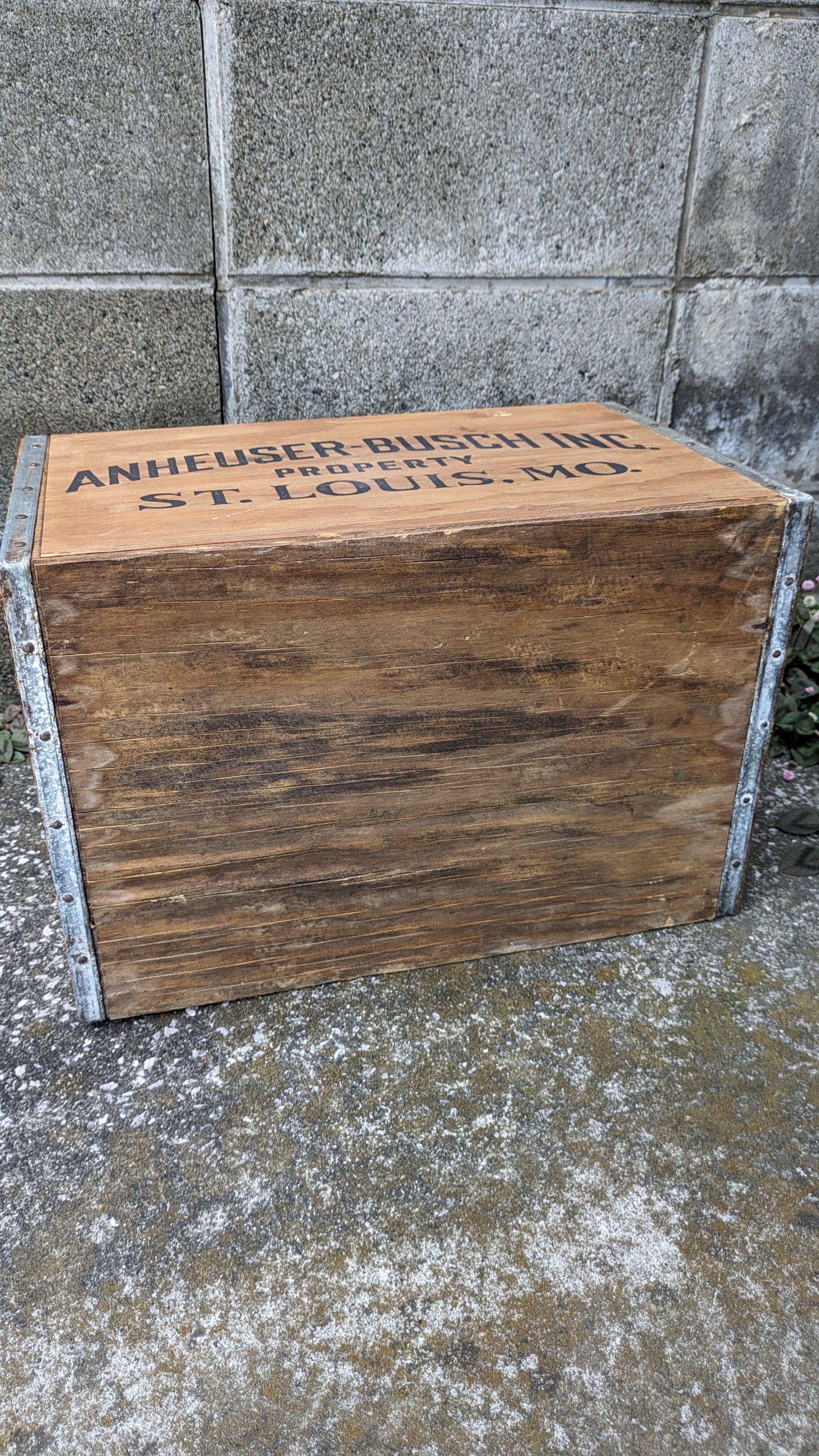 <5月16日21時販売スタート> Vintage Budwiser Crate Wood Box ANHEUSER BUSCH INC ビンテージ バドワイザー ウッドボックス 木製 木箱 収納ボックス ギアボックス キャンプギア クレート アンティーク ヴィンテージボックス 天板付き USA