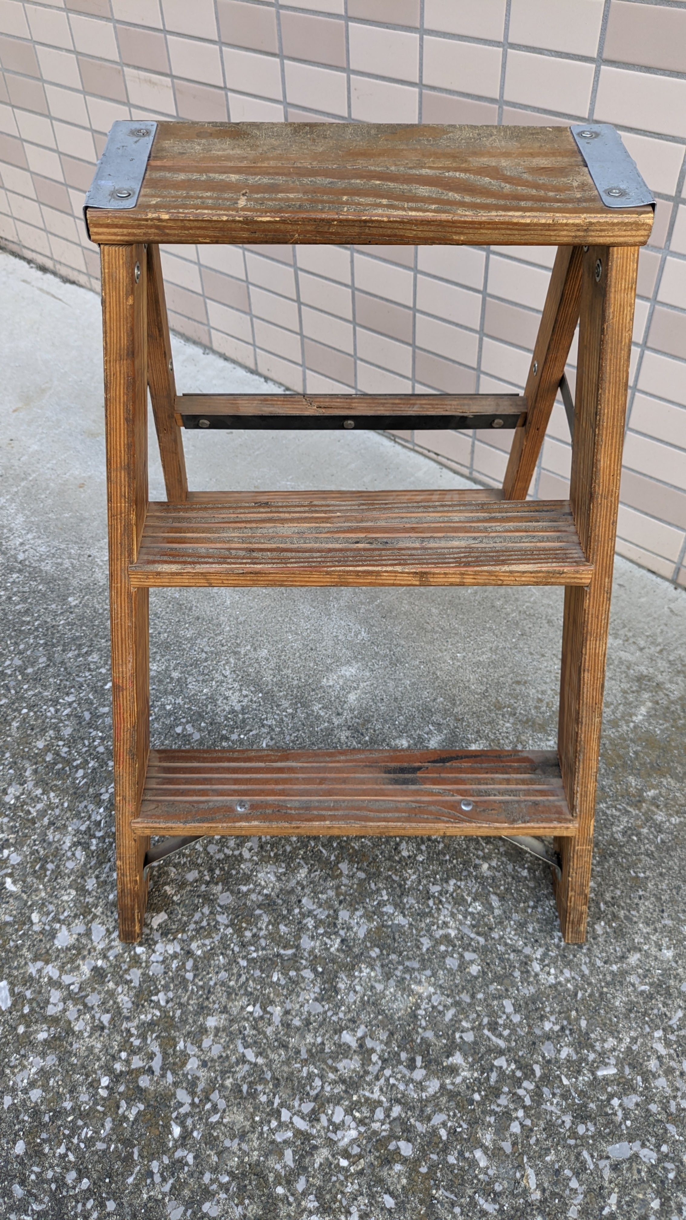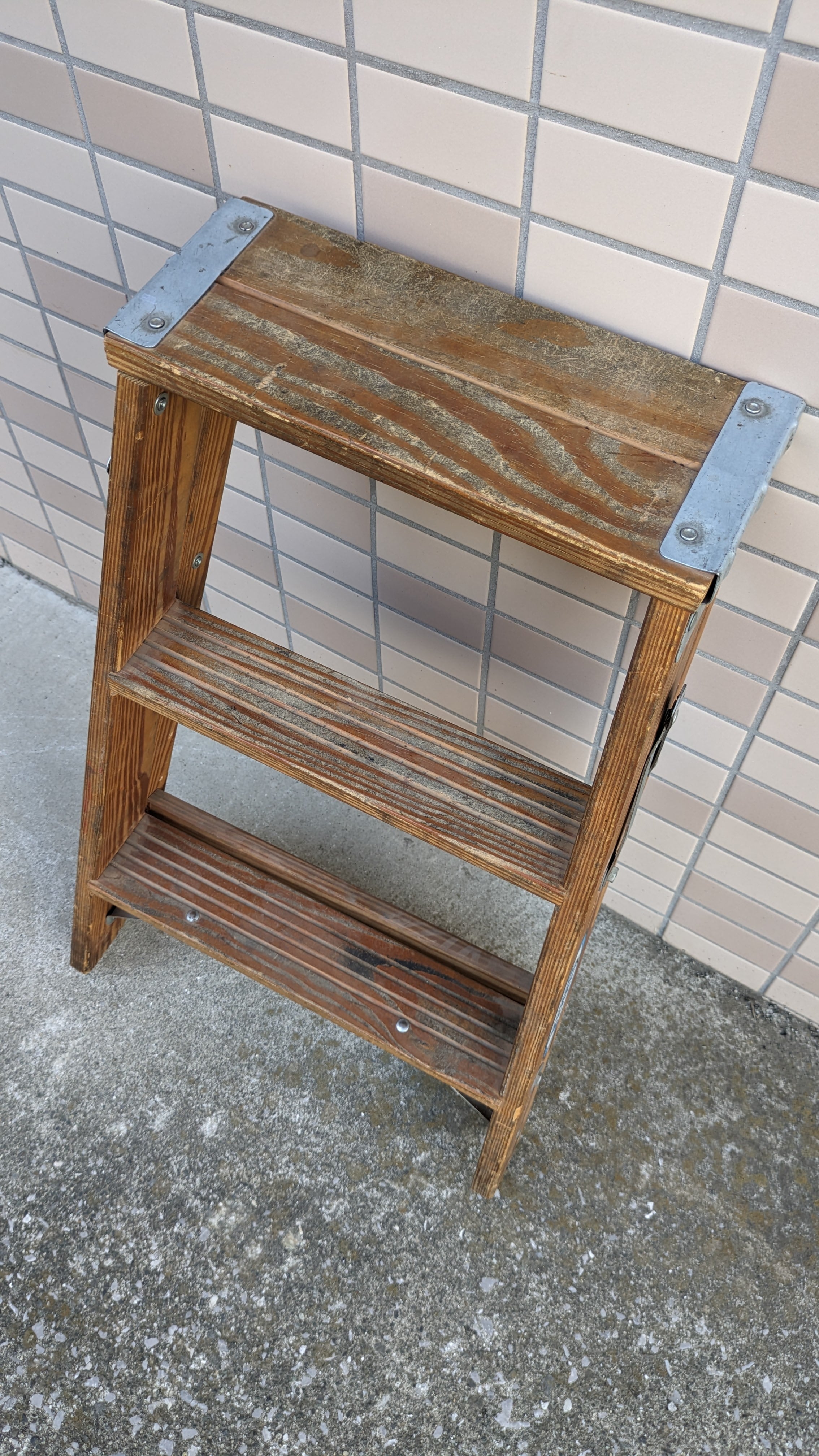 木製の折り畳み脚立で、雰囲気のある見た目も抜群で、