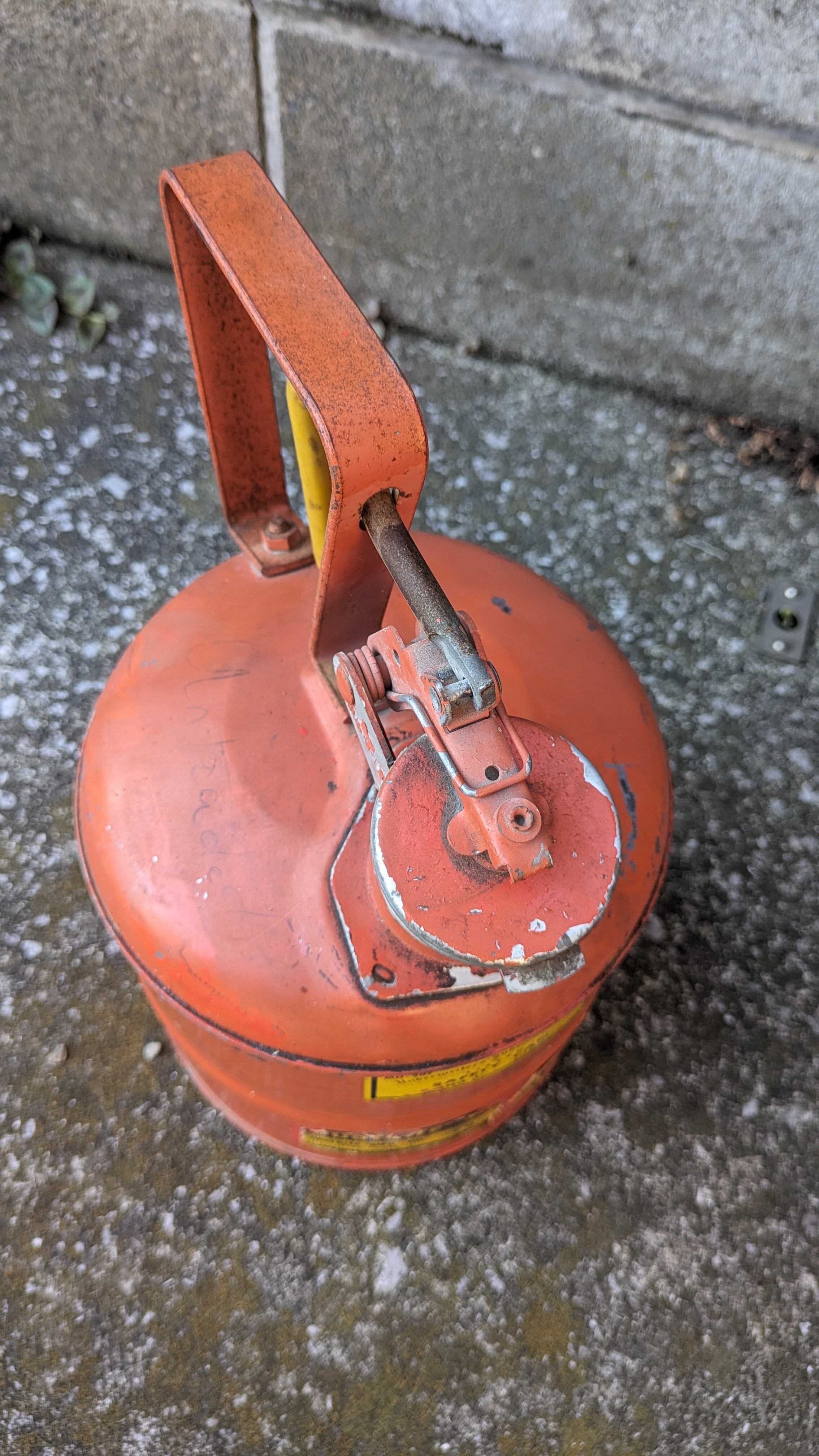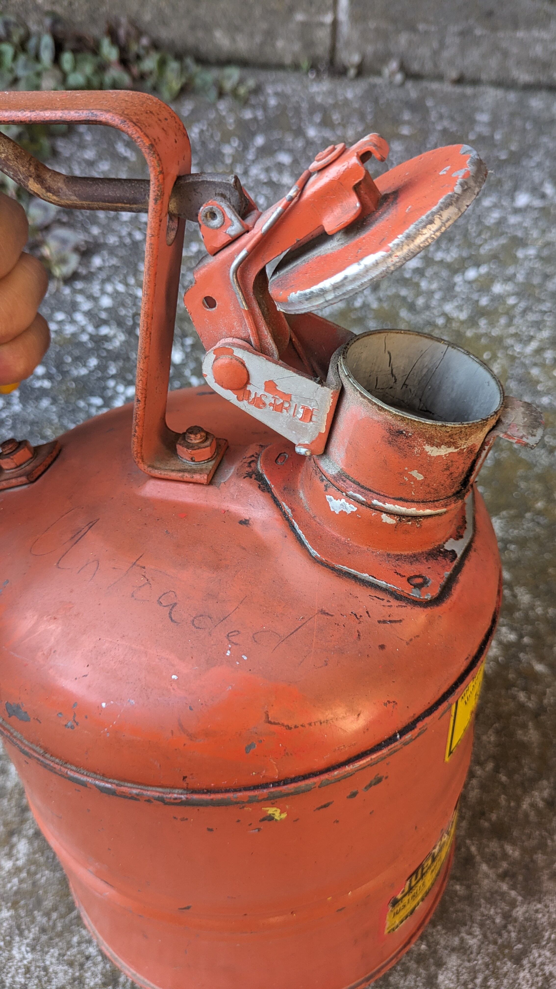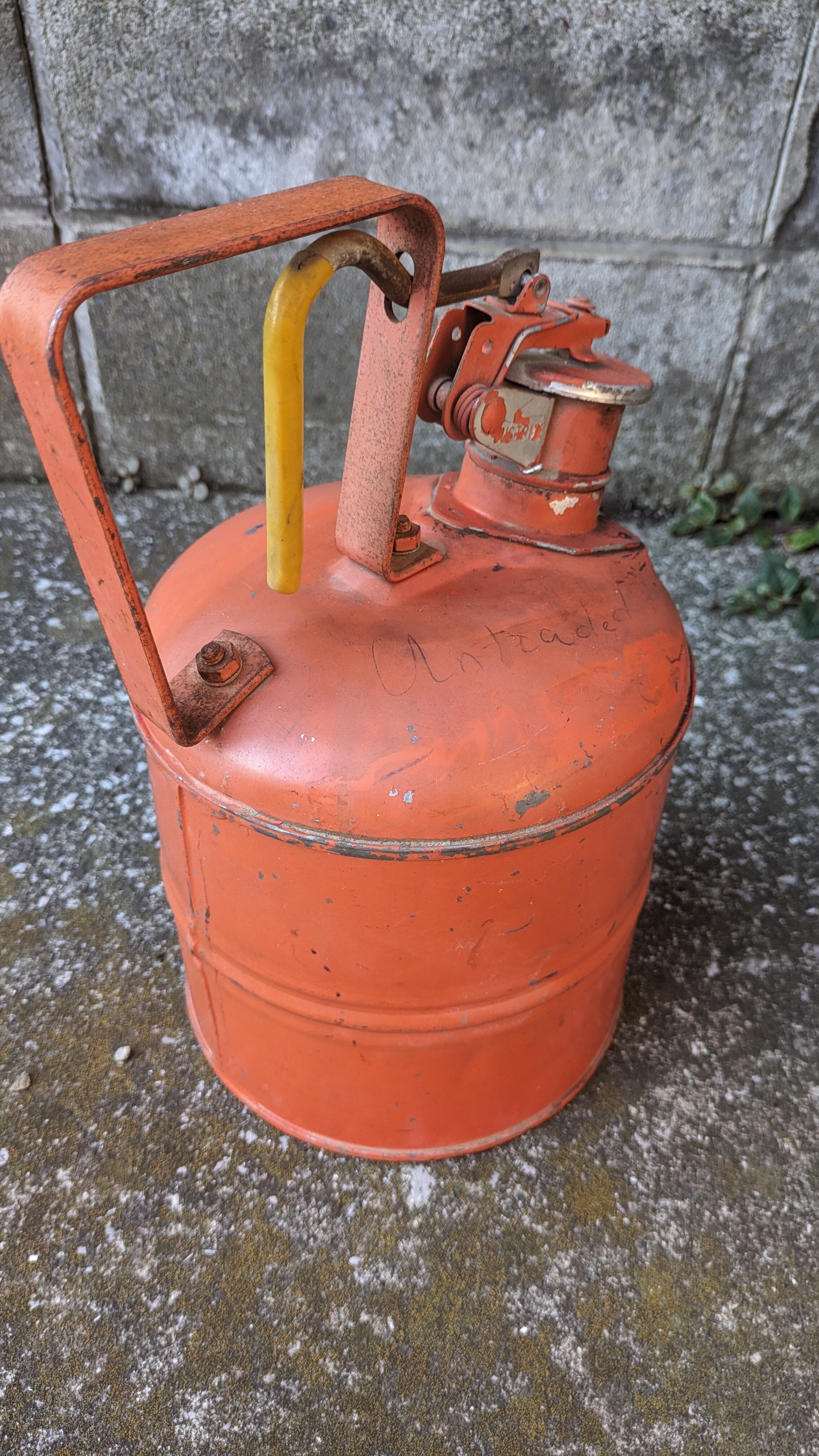 Vintage JUSTRITE MFG Co Metal GasolinCan SafetyCan 1gallon OilCan ビンテージ セーフティー缶 ガソリン缶 携行缶 1ガロン アンティーク キャンプギア ホワイトガソリン入れ 灯油缶