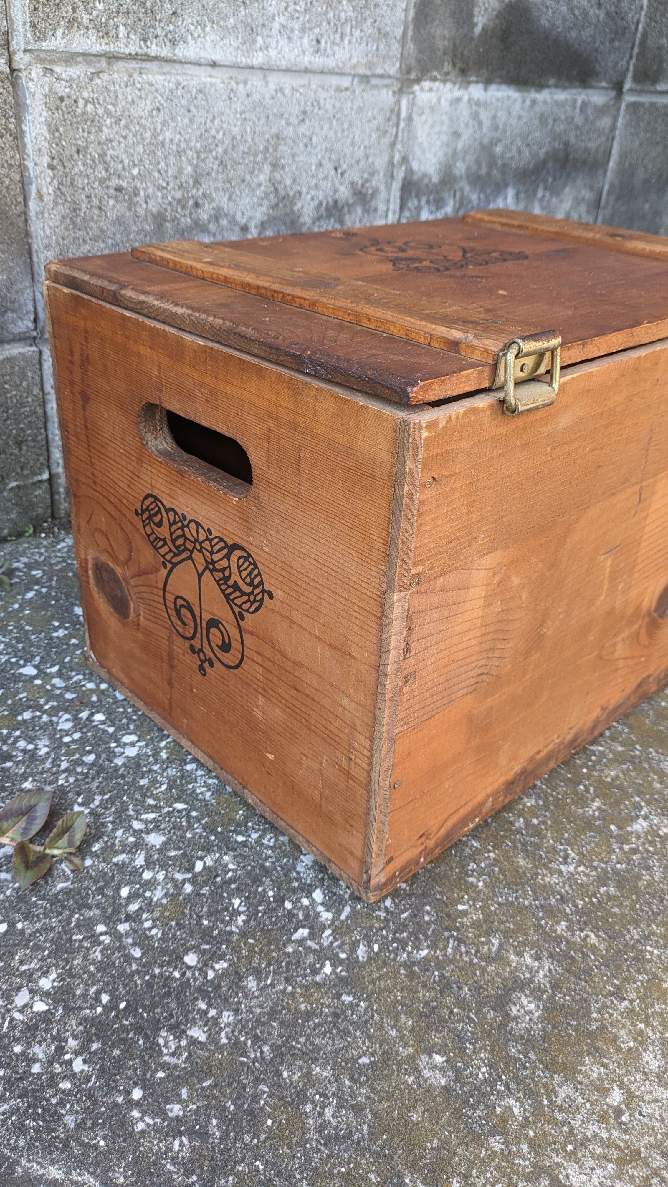 アメリカにて買い付けた人気の高い蓋つきのビンテージウッドボックスです。