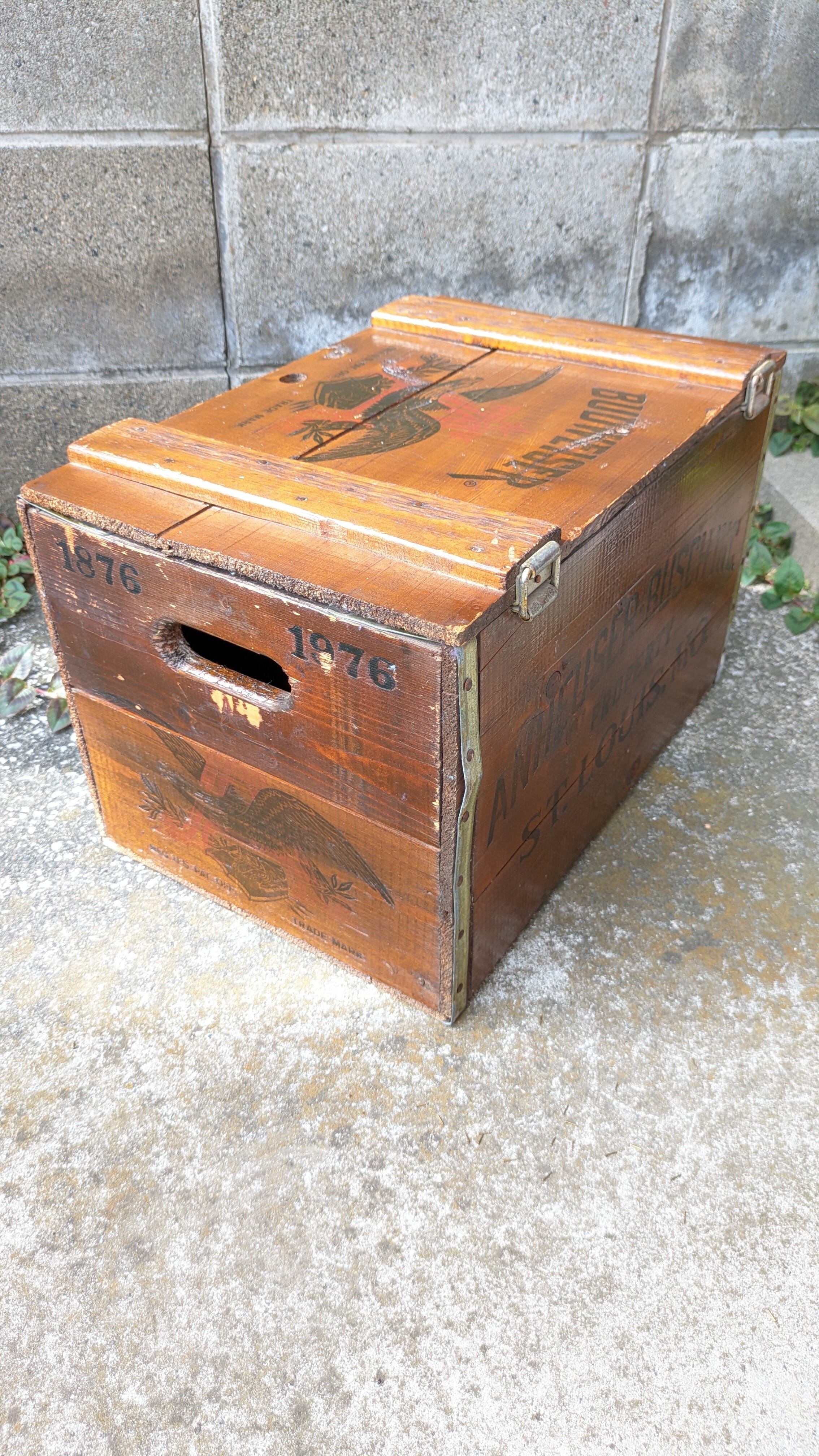 Vintage Budwiser Crate WoodBox ANHEUSER BUSCH INC ビンテージ バドワイザー ウッドボックス 木製 木箱 収納ボックス ギアボックス キャンプギア クレート アンティーク ヴィンテージボックス 天板付き USA