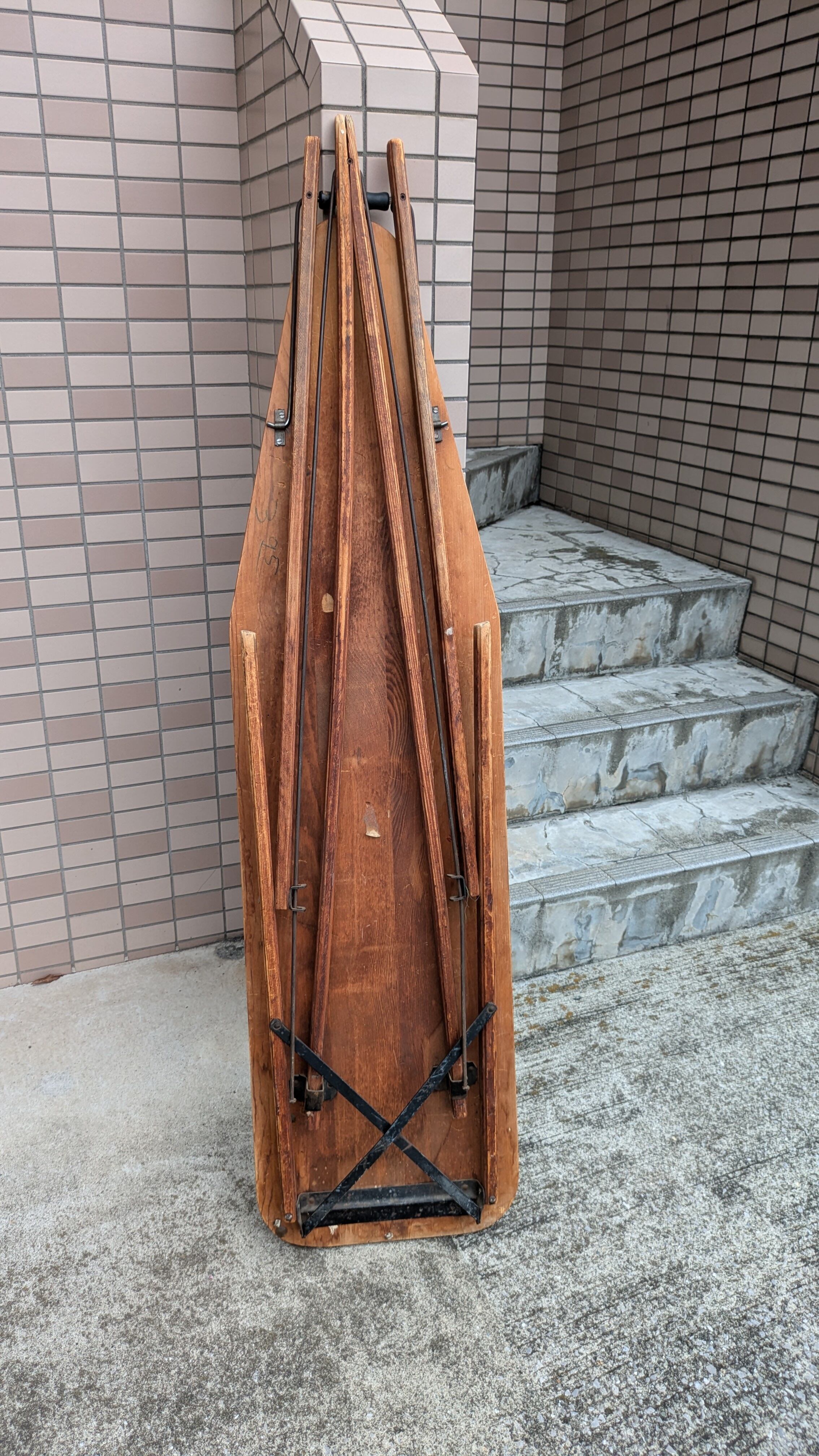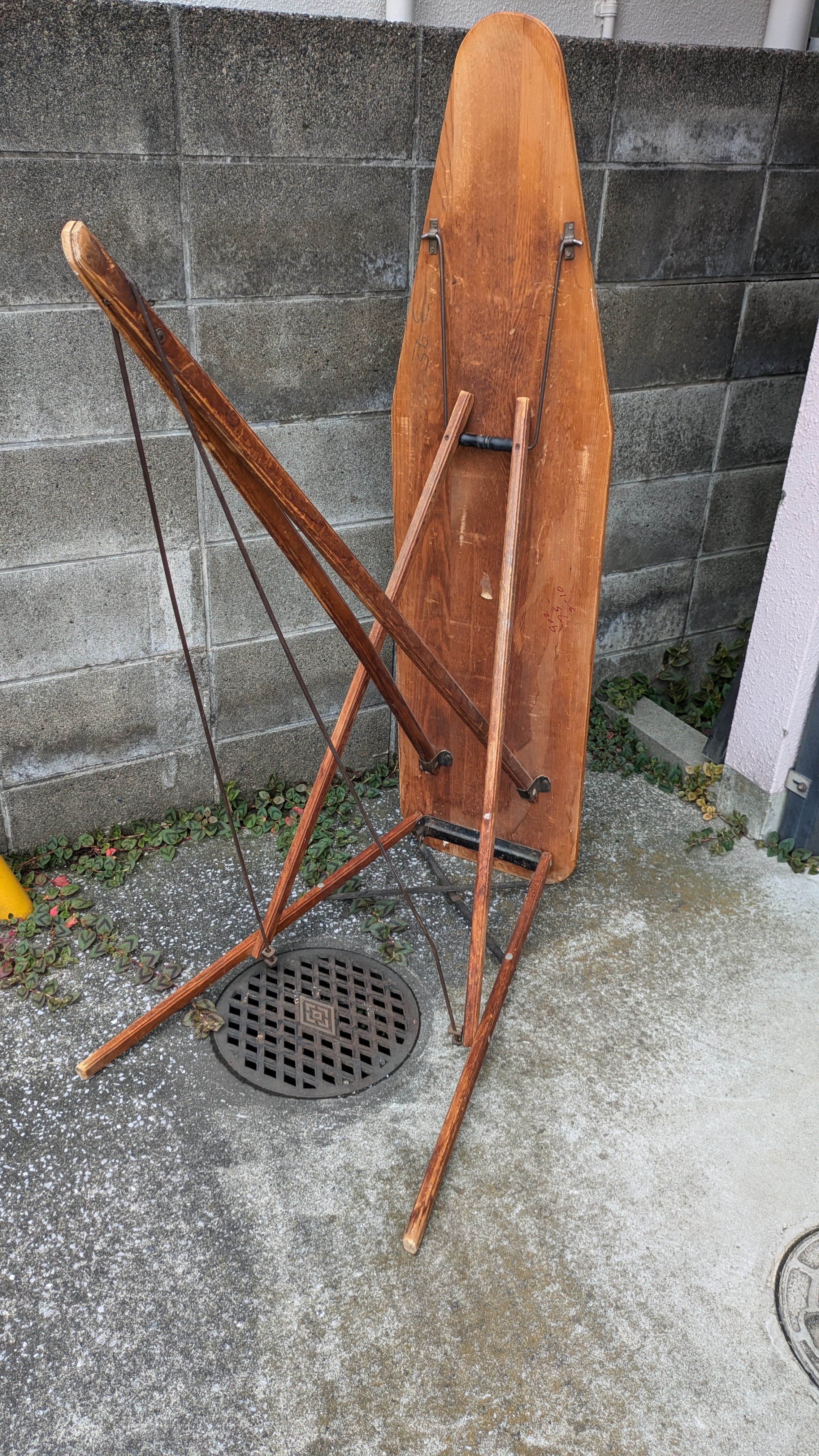 古い木製の折り畳みアイロン台で、見た目の雰囲気も抜群で、