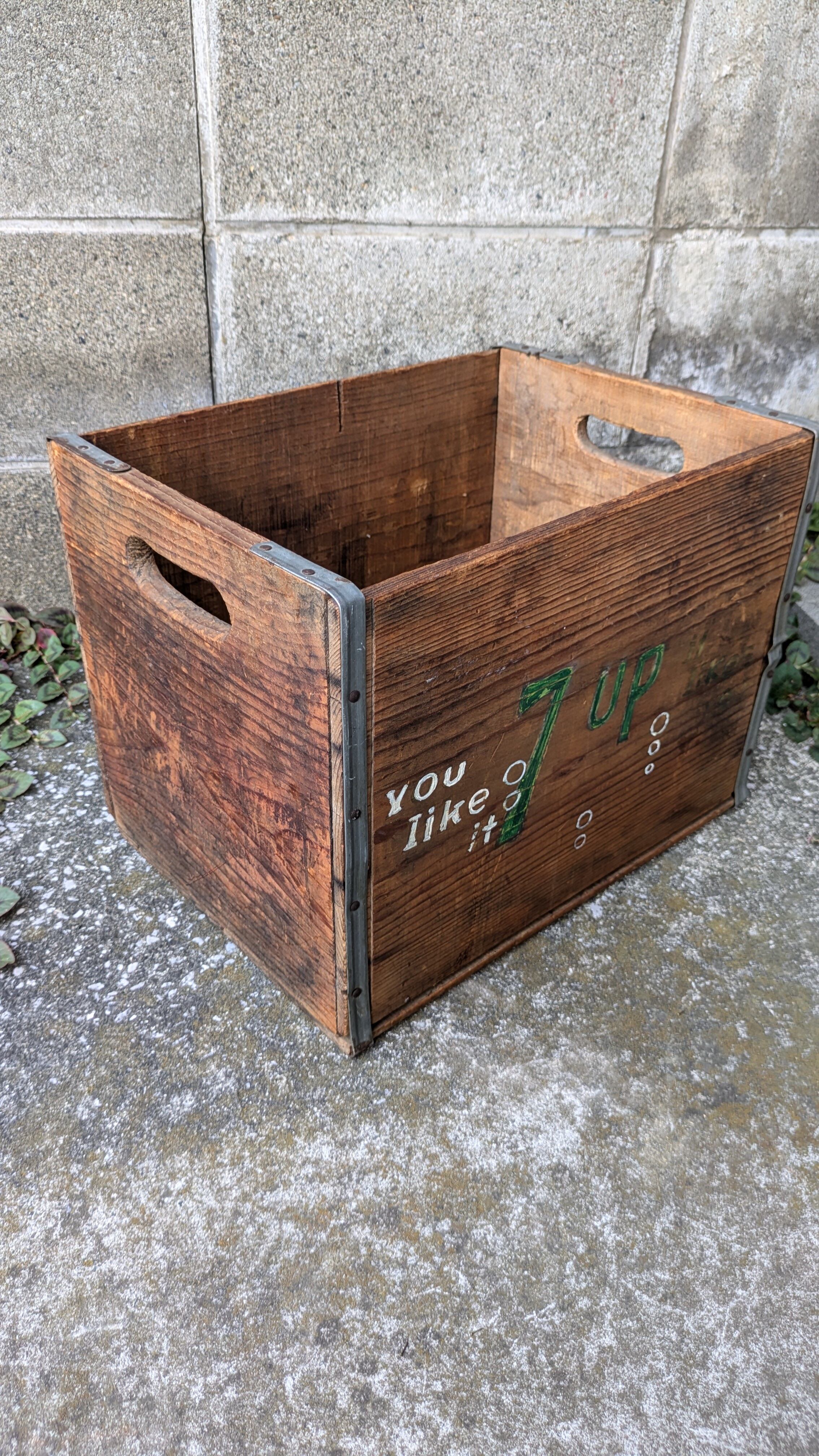 Vintage 7UP Crate Wood Box ToolBox ビンテージ ウッドボックス 木製 木箱 収納ボックス ギアボックス キャンプギア クレート アンティーク ヴィンテージボックス